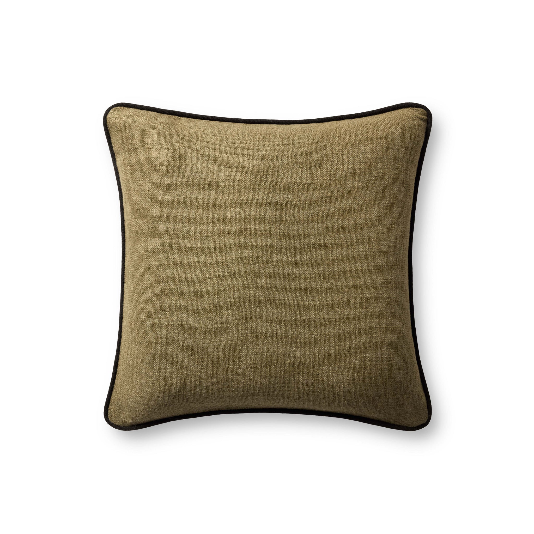 Hudson est un coussin décoratif vert mousse uni avec passepoil noir contrastant, conçu par Jeremiah Brent et Loloi. Ce coussin décoratif de 50,8 x 50,8 cm est fabriqué en Inde en coton, lin et viscose, apportant une touche sophistiquée à une décoration d'intérieur moderne.