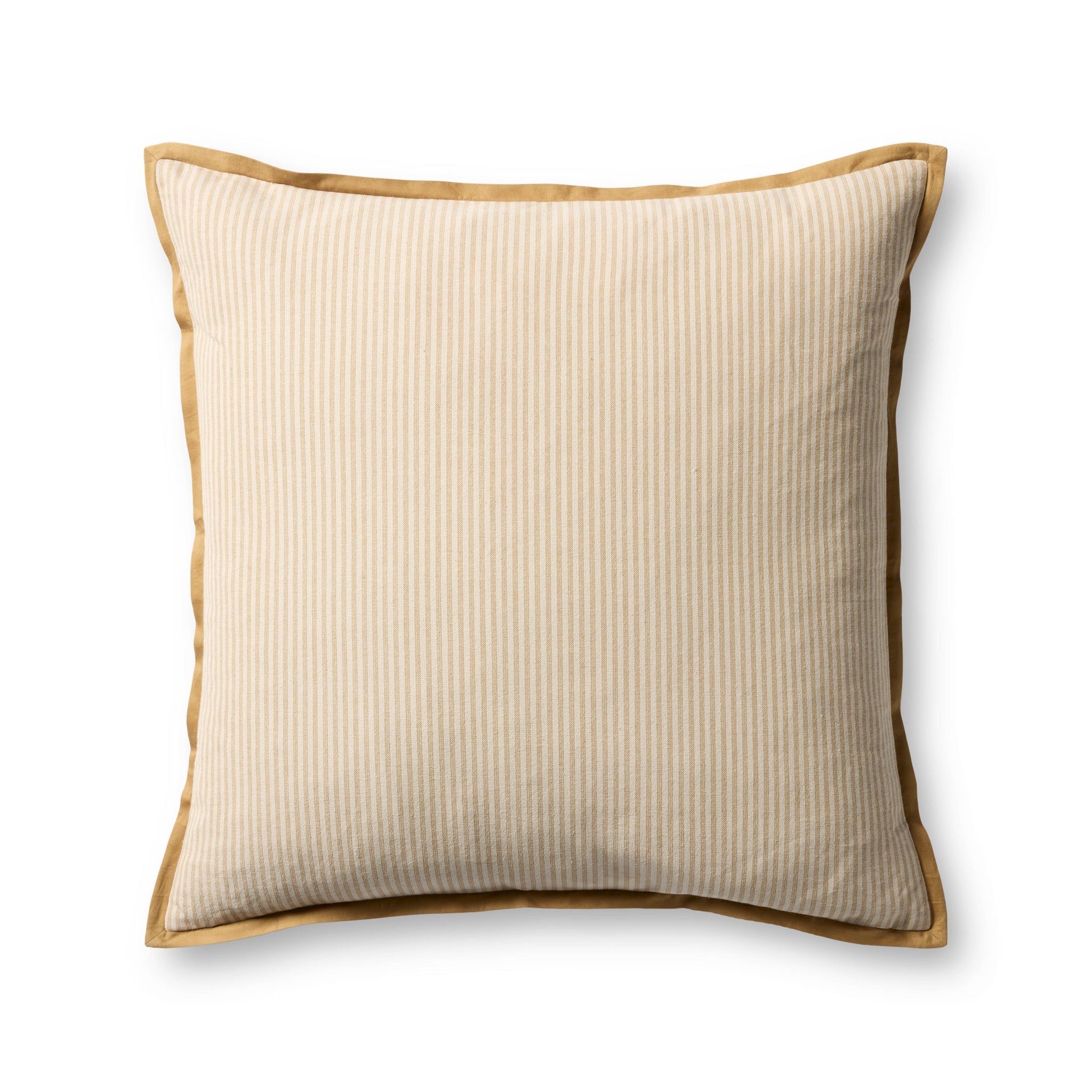 Sullivan est un coussin décoratif à rayures beiges et bords dorés, conçu par Jeremiah Brent et Loloi. Ce coussin décoratif de 55,9 x 55,9 cm est fabriqué en Inde en 100 % coton, apportant une touche sophistiquée à une décoration d'intérieur moderne.