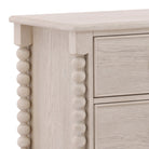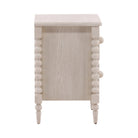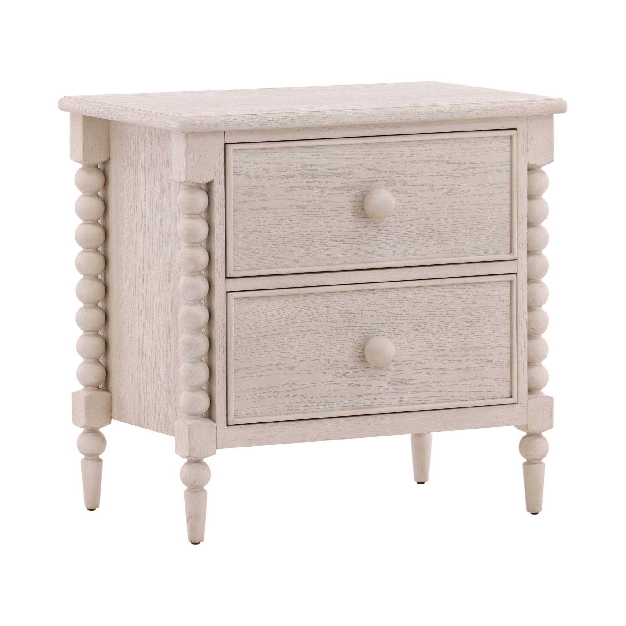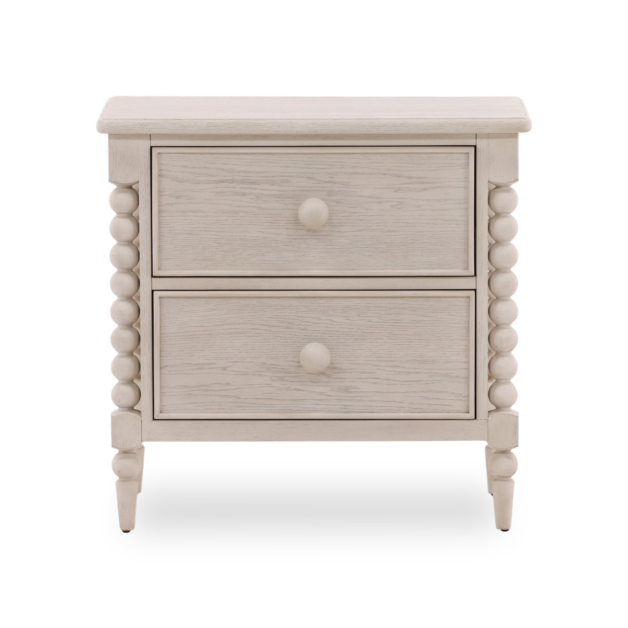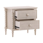 Cette charmante table de chevet apporte une touche d'élégance rustique à votre chambre. Son atout principal réside dans les magnifiques détails en bois tourné, façon bobine, qui forment les colonnes et les pieds verticaux. Finition bois clair vieilli au grain apparent, ce meuble offre deux tiroirs spacieux pour un rangement pratique près du lit.