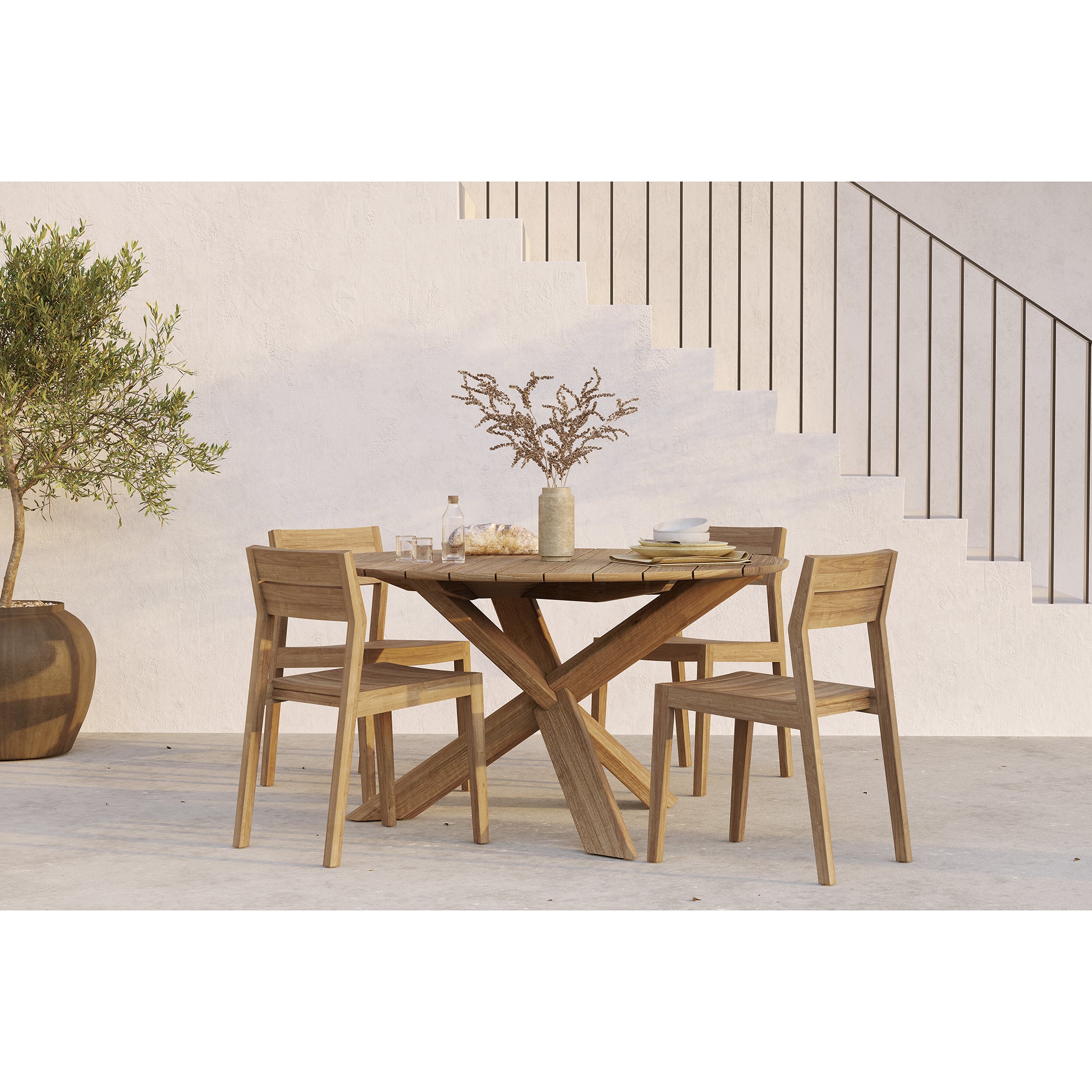 Un favori d'intérieur populaire, la chaise de salle à manger EX 1 en teck massif est un design intemporel, pour ajouter une stabilité sans effort à vos besoins de sièges extérieurs.