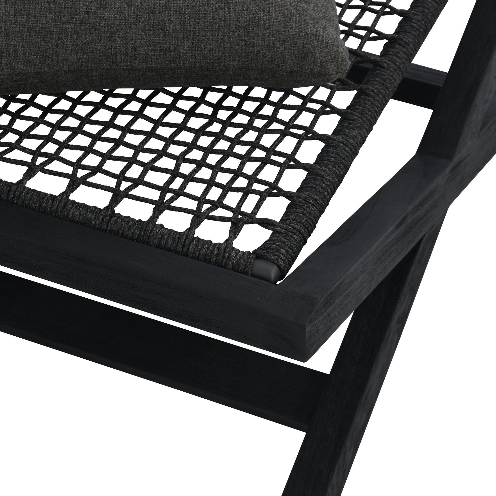 Matériaux : Bois de teck massif, aluminium thermolaqué, tressage gris foncé sur cadre gris foncé