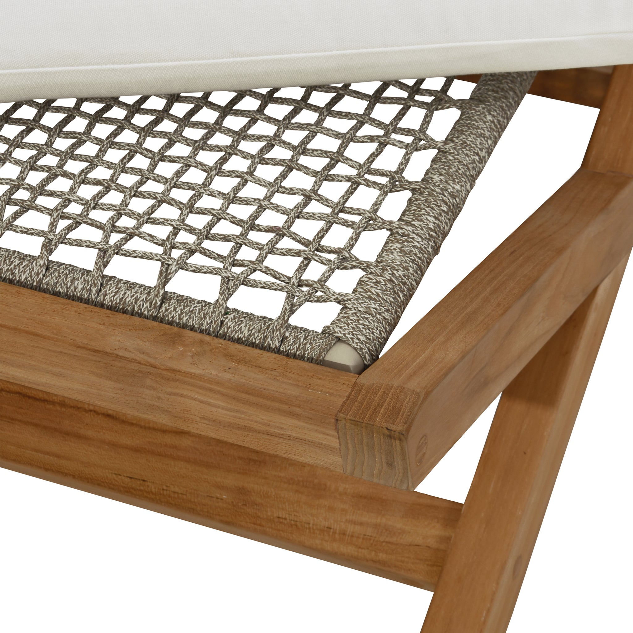 Matériaux : Bois de teck massif, aluminium thermolaqué, tressage gris sur cadre en aluminium taupe