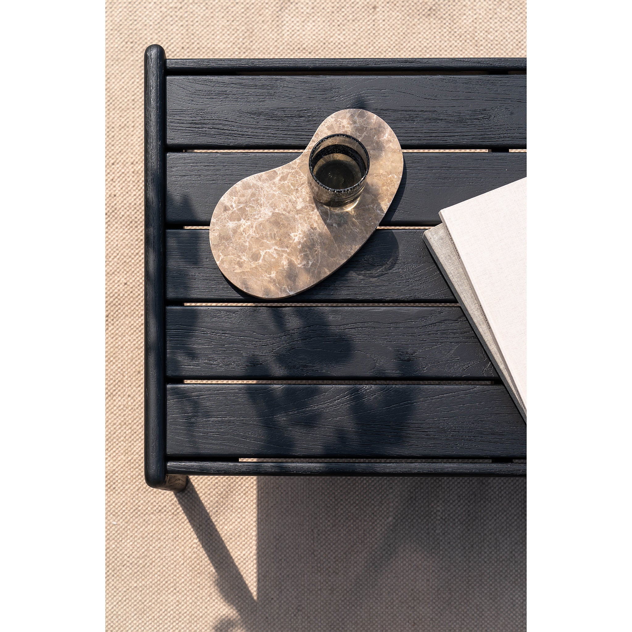 Matériau : 100% teck massif, teinté noir et brossé, avec une finition vernie.