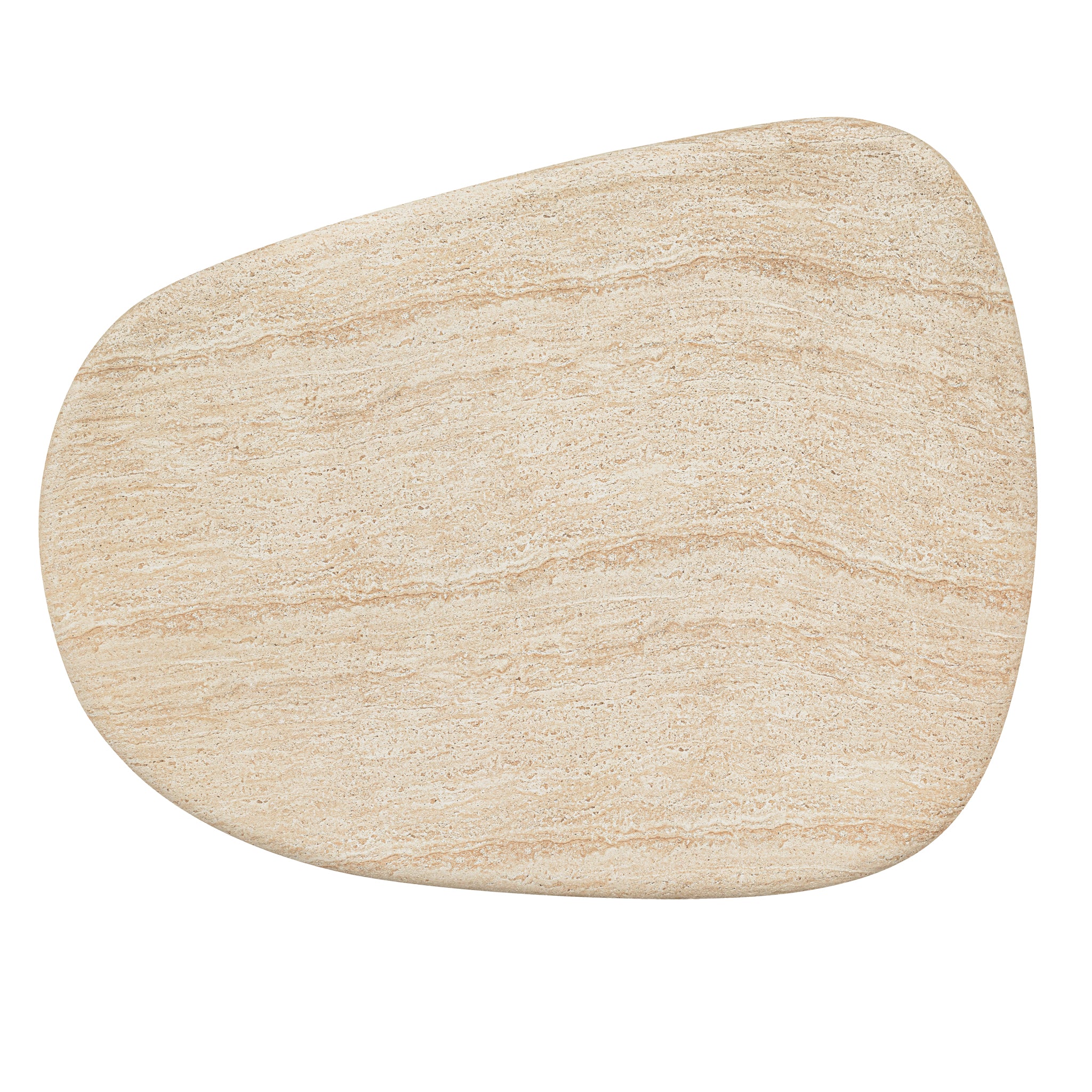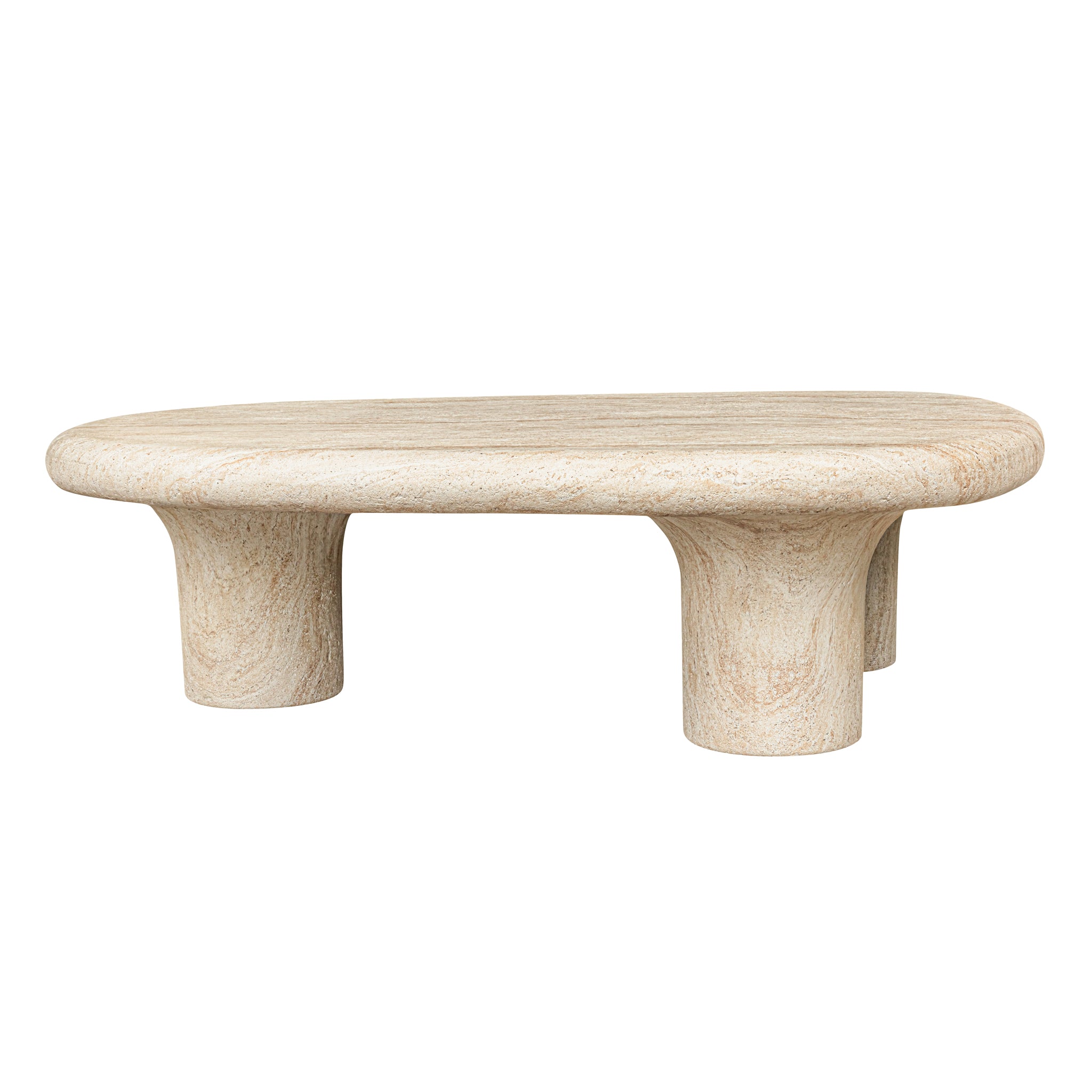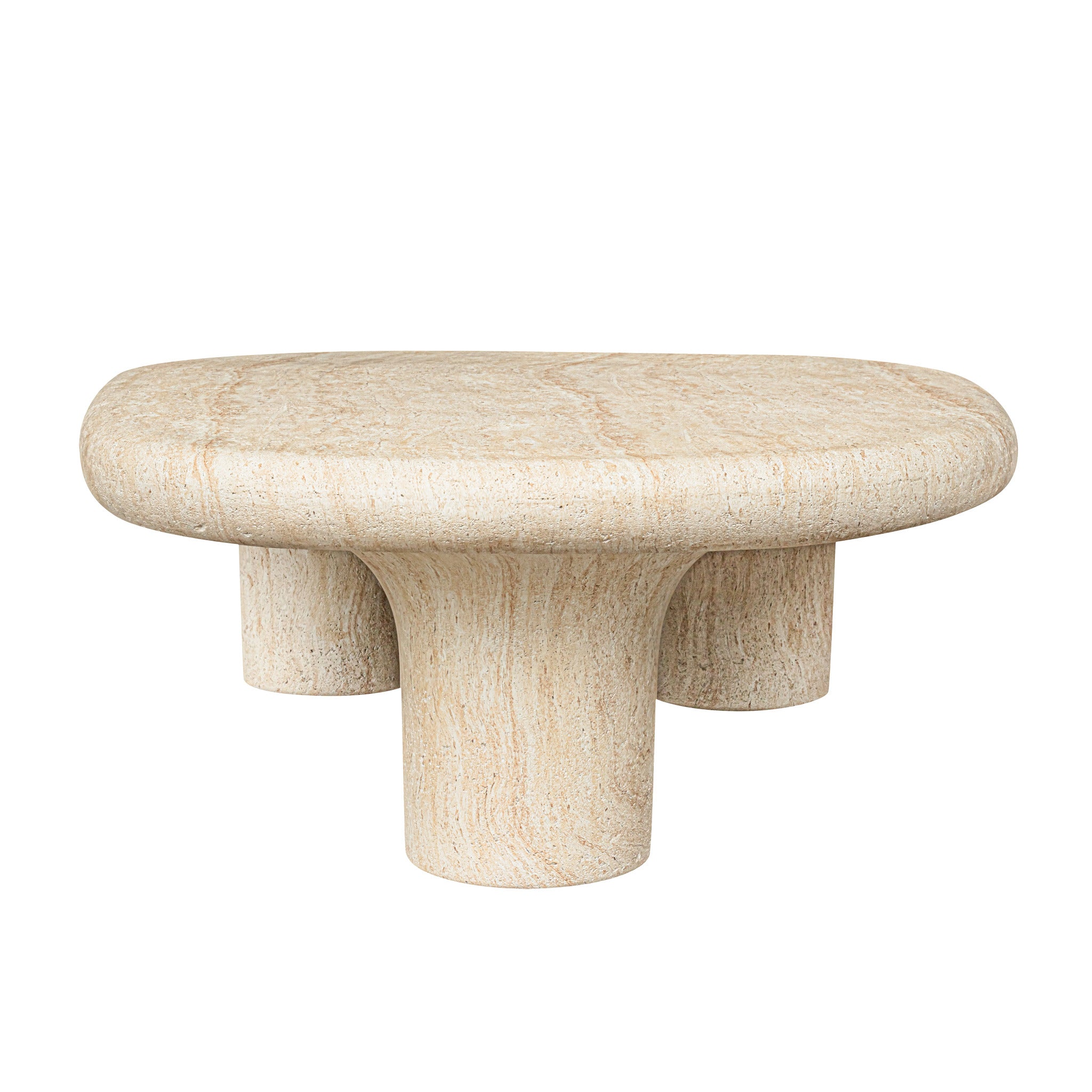 La table basse d'extérieur Paul arbore un design ludique et organique. Elle est réalisée grâce à un procédé innovant de transfert d'eau qui reproduit les motifs sur le béton pour lui donner l'aspect sophistiqué du travertin. Cette technique confère à la pièce l'aspect authentique de la pierre tout en préservant la résistance du béton.