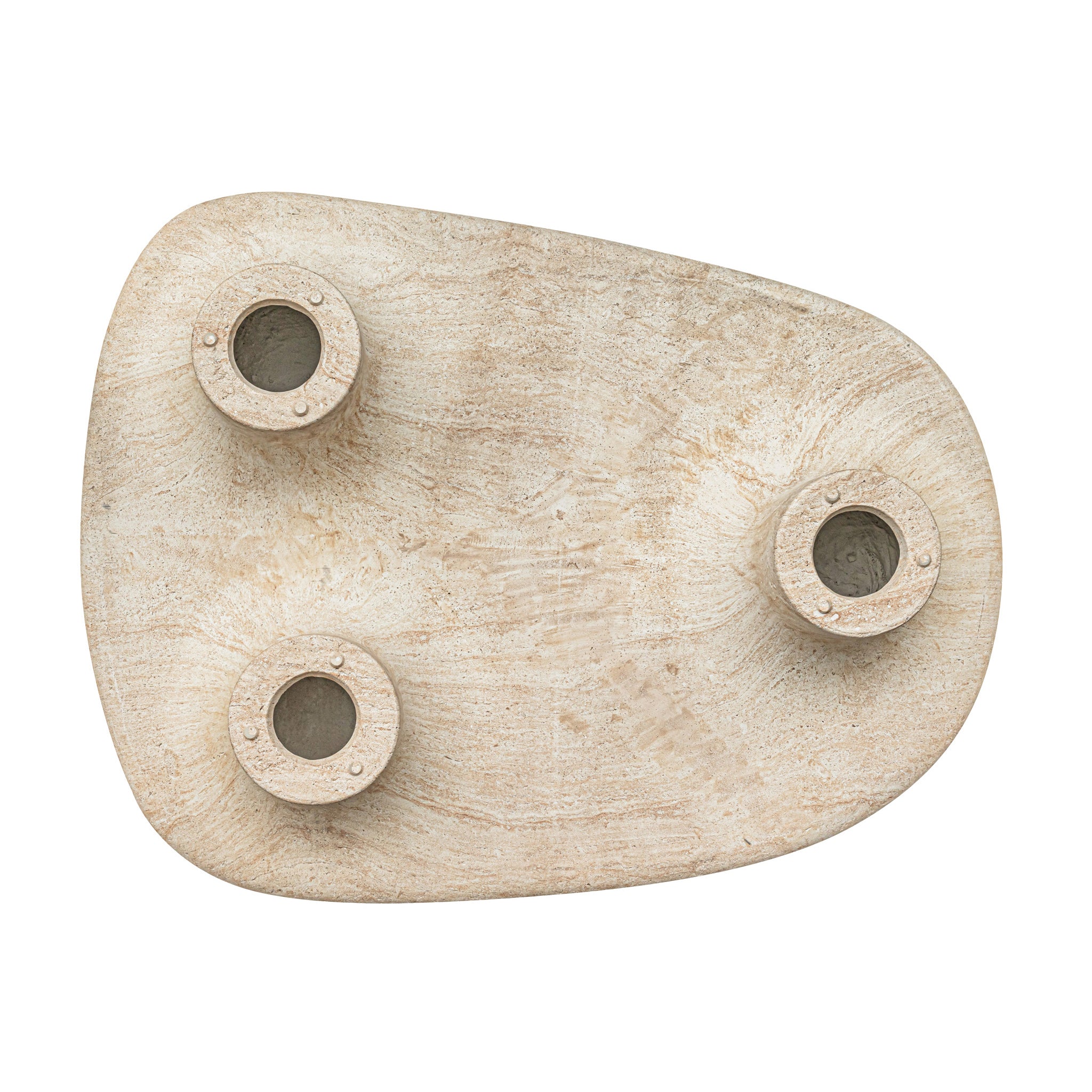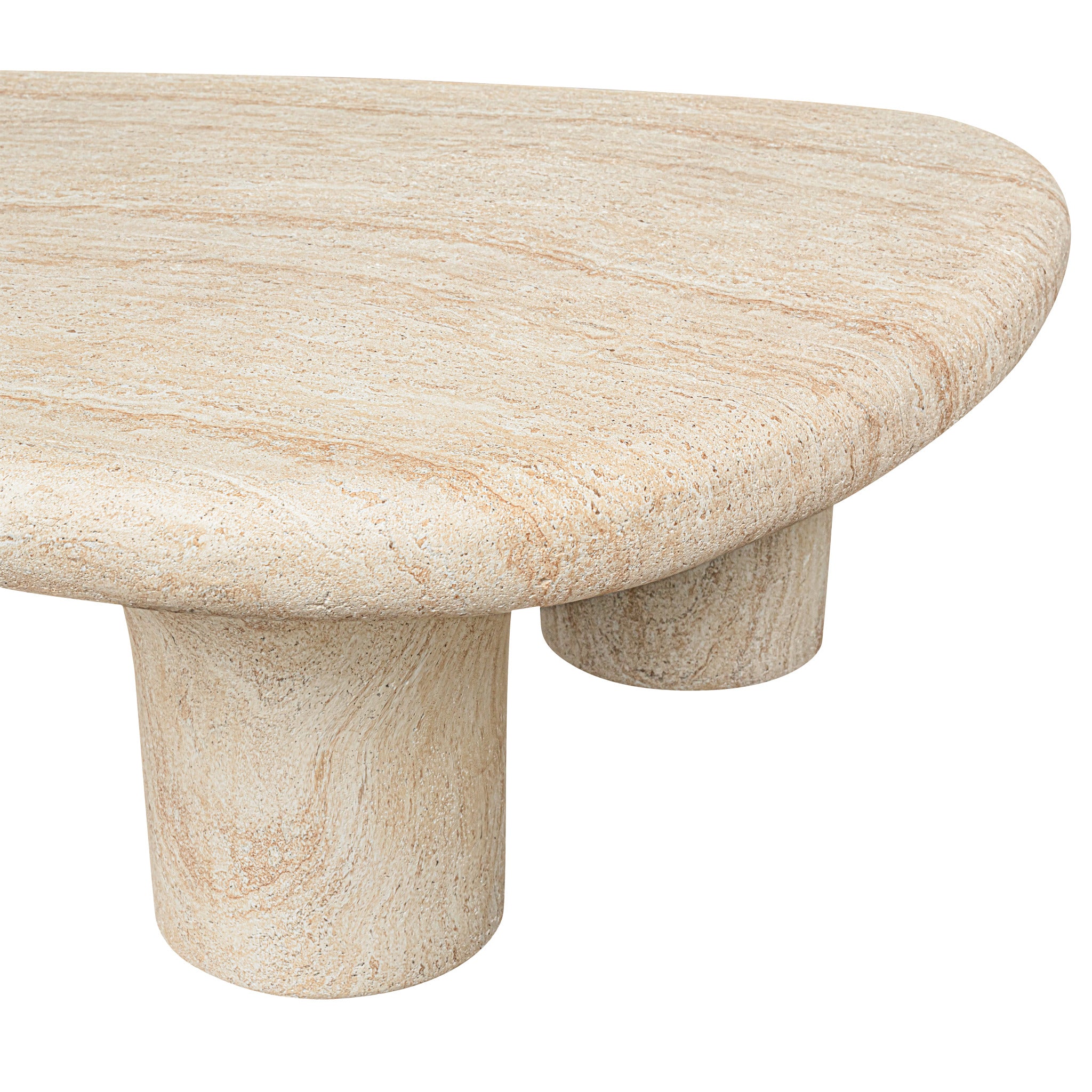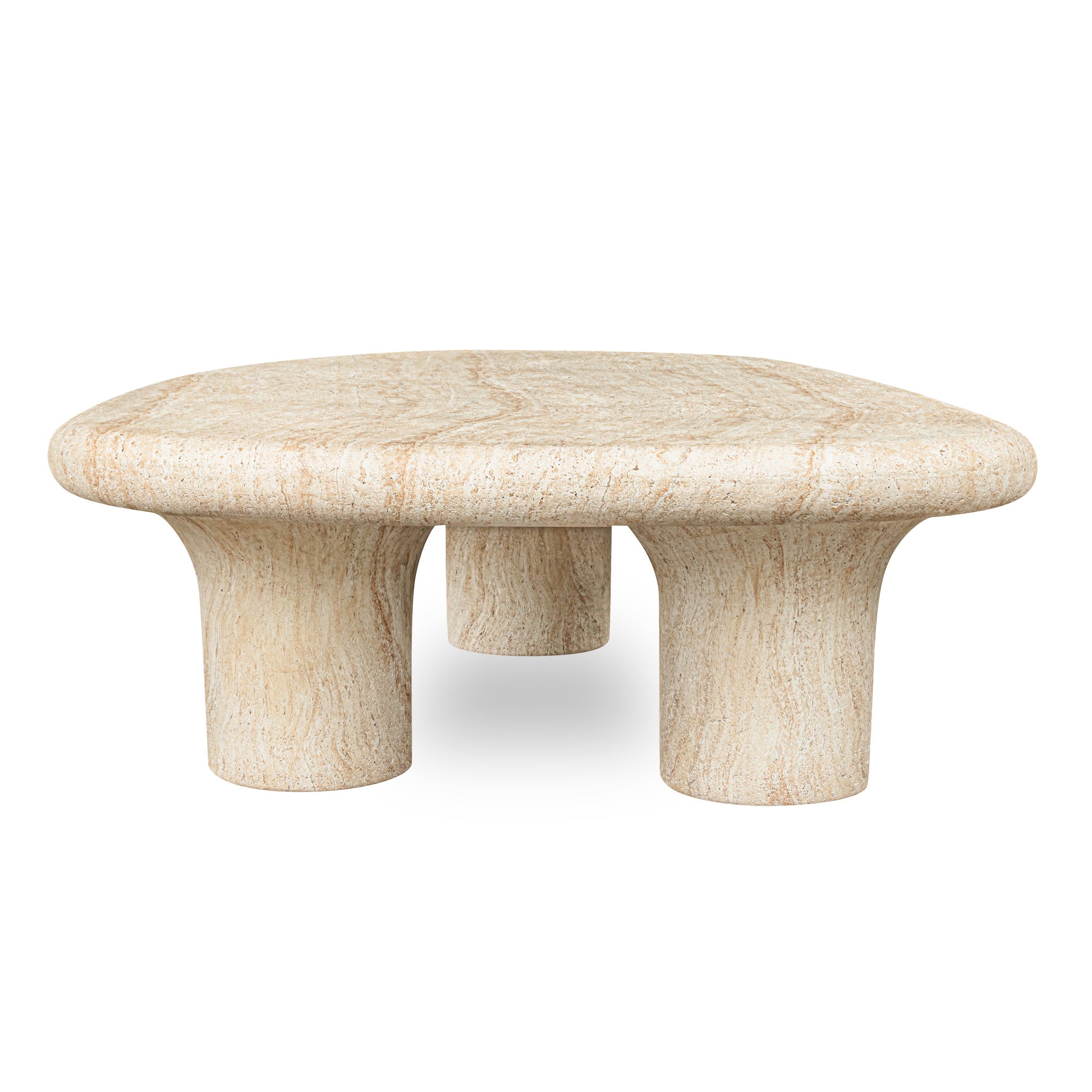 La table basse d'extérieur Paul arbore un design ludique et organique. Elle est réalisée grâce à un procédé innovant de transfert d'eau qui reproduit les motifs sur le béton pour lui donner l'aspect sophistiqué du travertin. Cette technique confère à la pièce l'aspect authentique de la pierre tout en préservant la résistance du béton.