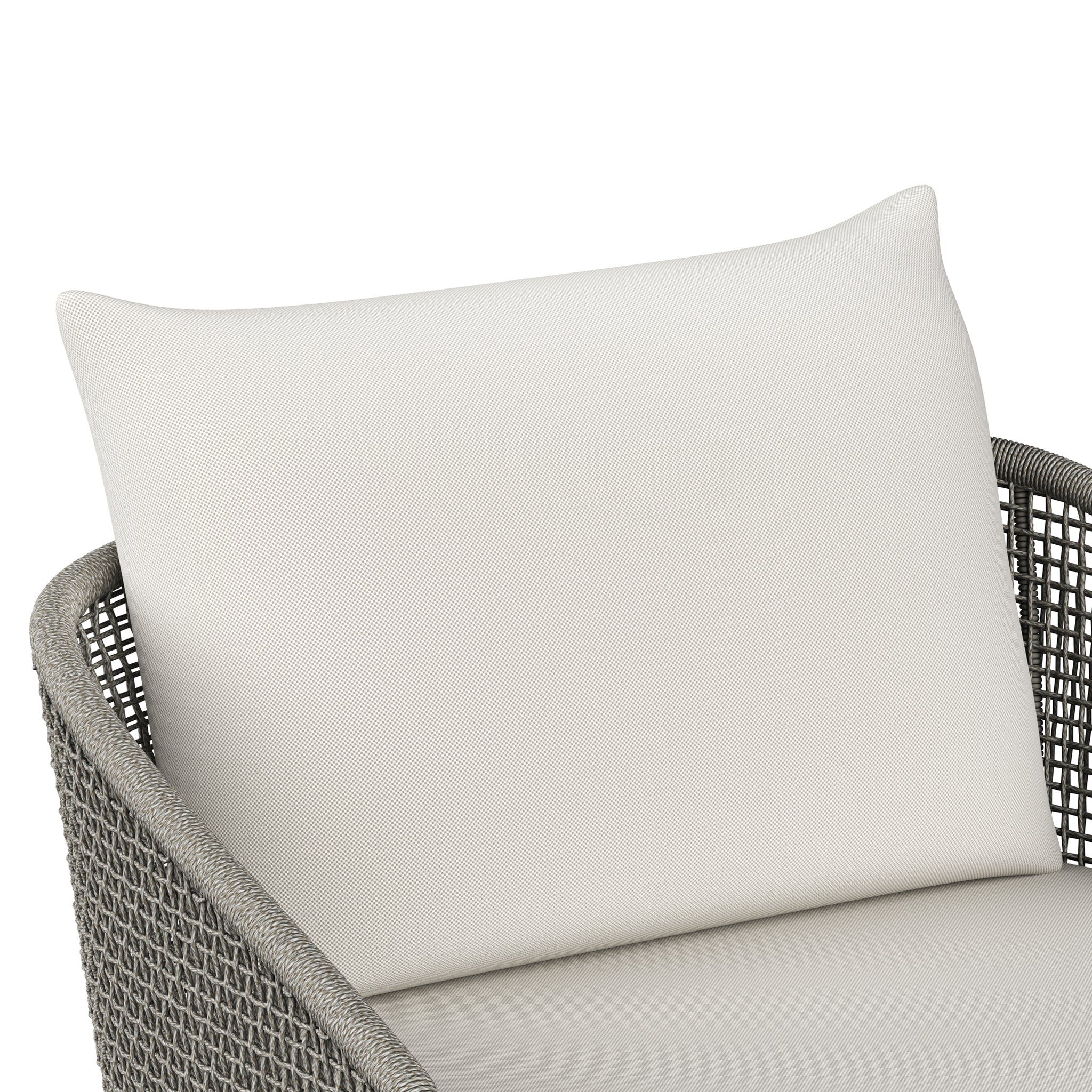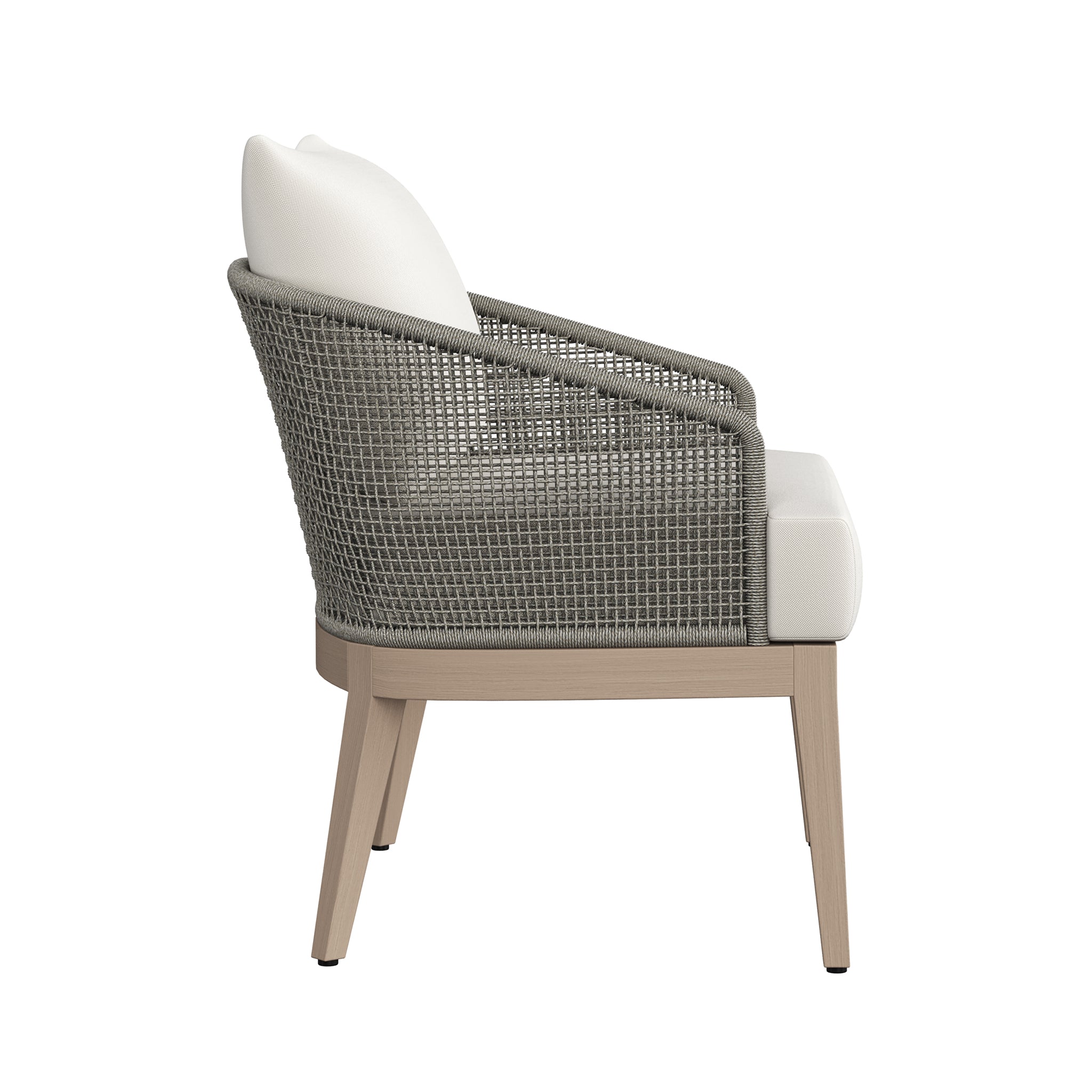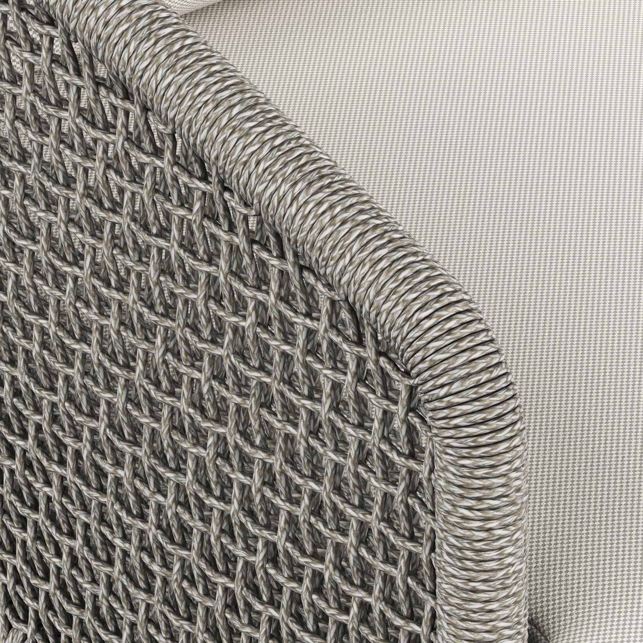 Apportez une touche chaleureuse et confortable à votre jardin avec notre fauteuil de jardin Catalina. Son revêtement en tissu gris foncé tressé, qui habille la structure à dossier arrondi, et son assise en tissu crème résistant sont mis en valeur par un piètement en teck naturel et chaleureux. C'est la pièce idéale pour rendre votre extérieur aussi accueillant que votre intérieur et vous offrir un espace de détente au soleil. Ce fauteuil de jardin est un incontournable de l'été.