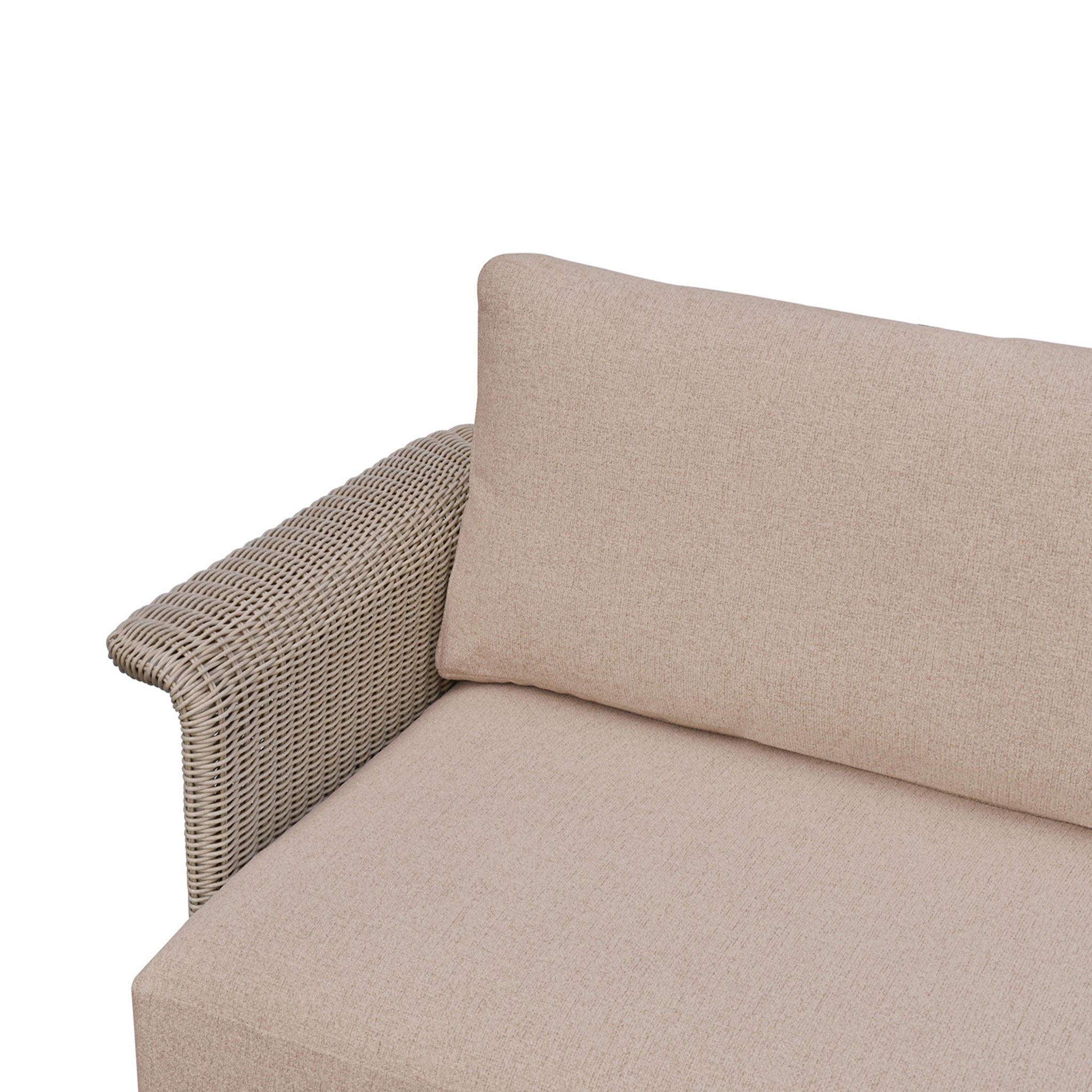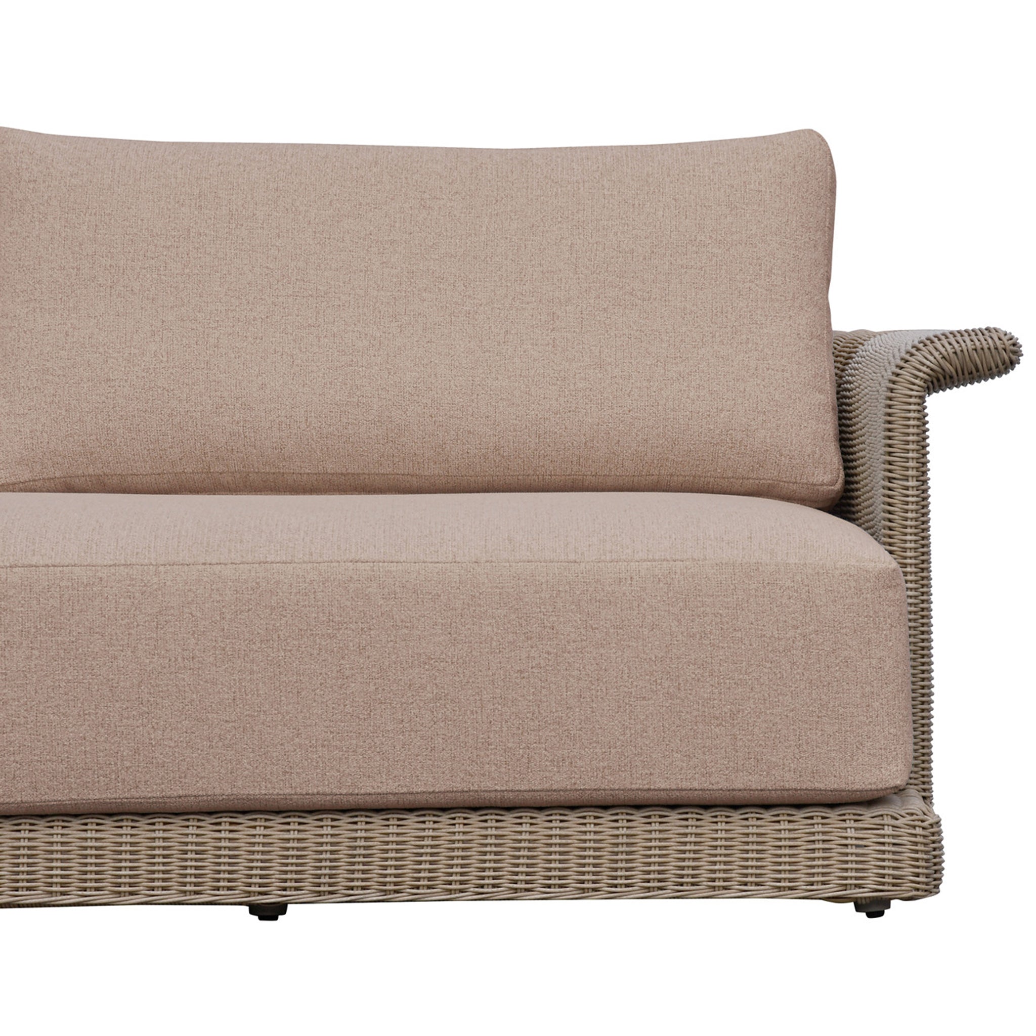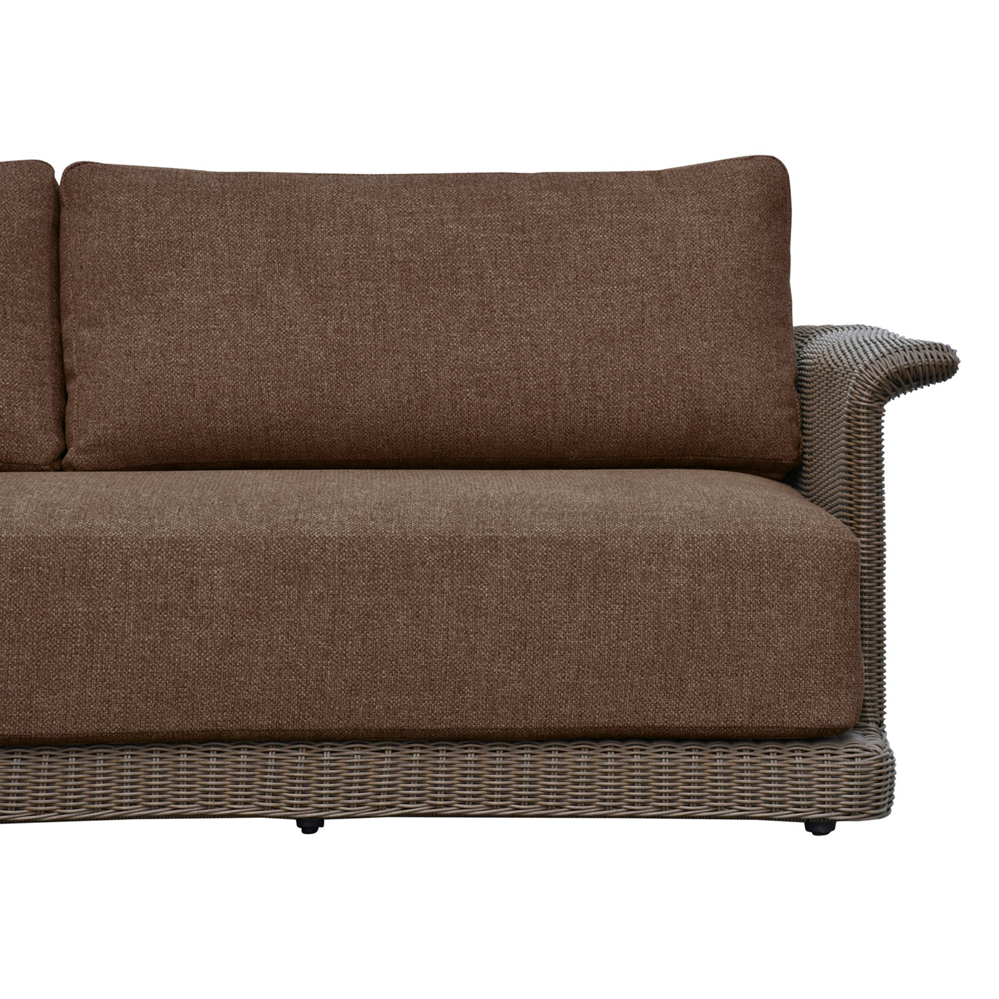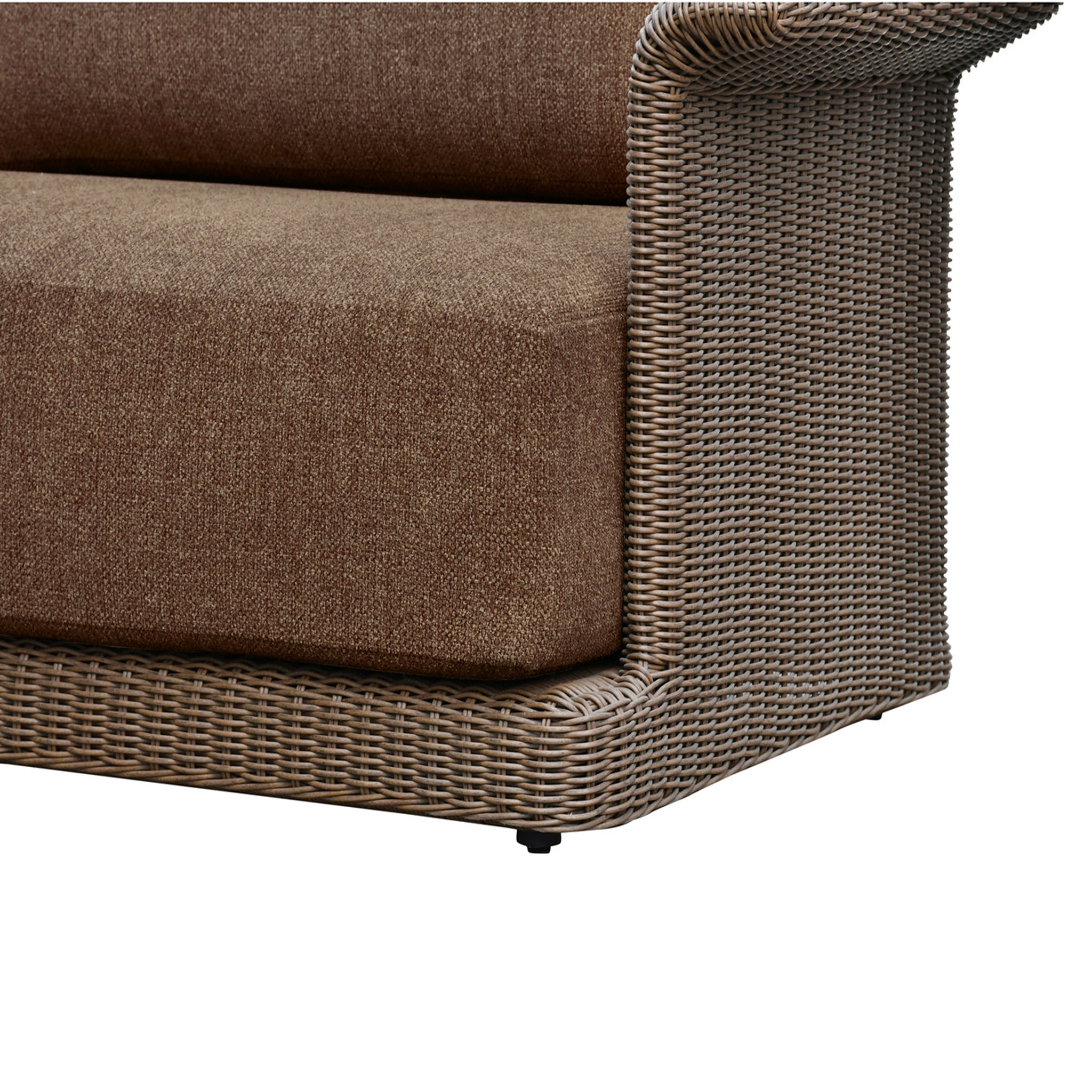 La silhouette gracieuse en tulipe et les accoudoirs incurvés du canapé Morena créent un attrait visuel, tandis que son rembourrage généreux offre un confort optimal. L'osier synthétique, finement tressé sur une structure en aluminium, allie durabilité et esthétique. La mousse à séchage rapide et la fibre Dacron garantissent une résistance durable, tandis que sa teinte sophistiquée s'harmonise avec divers designs extérieurs.