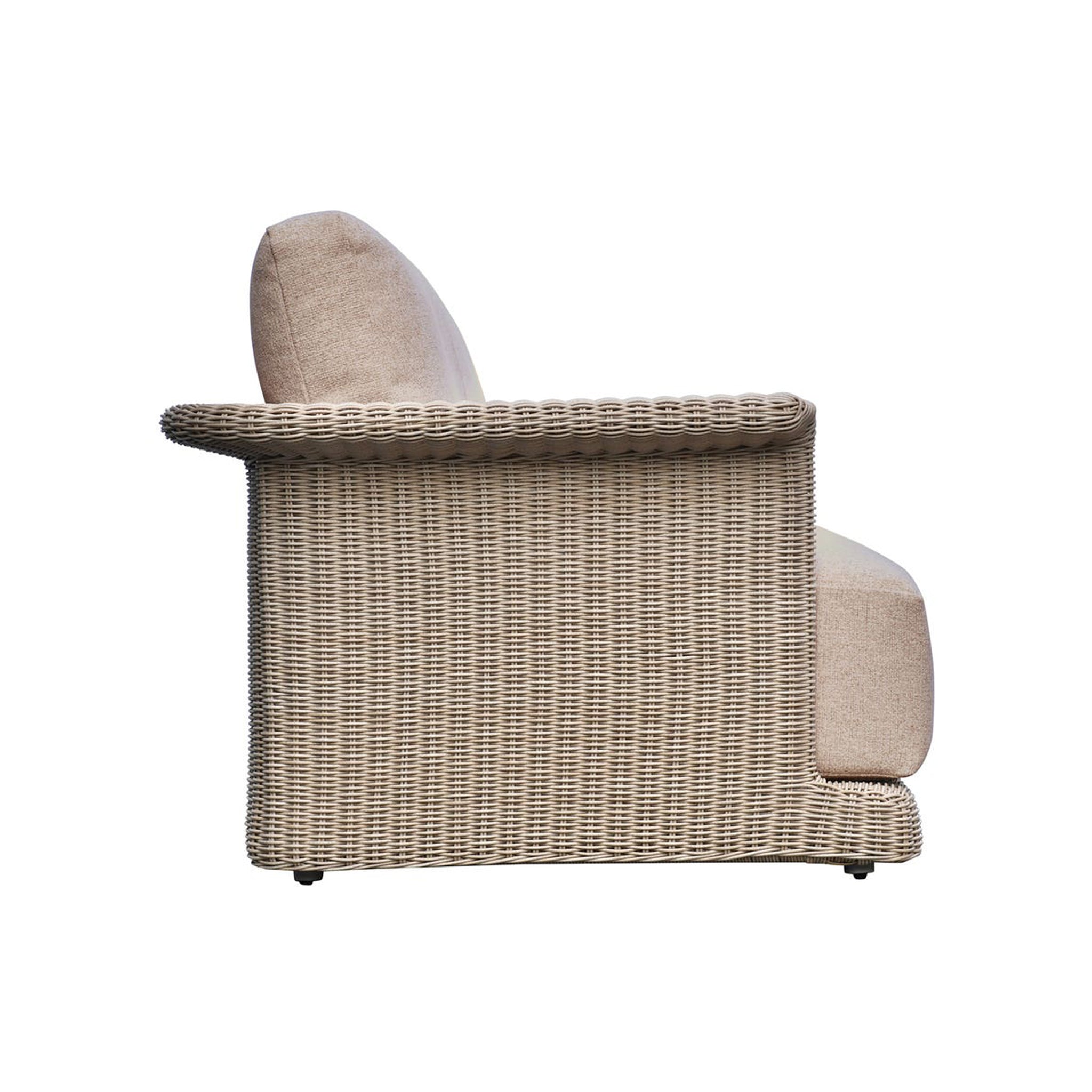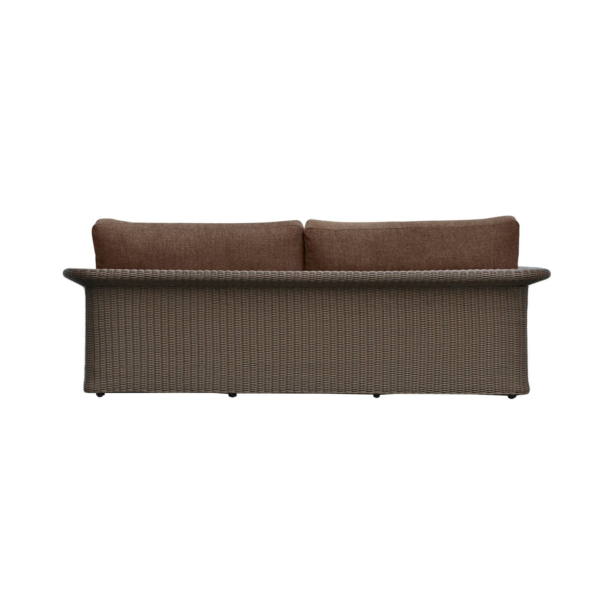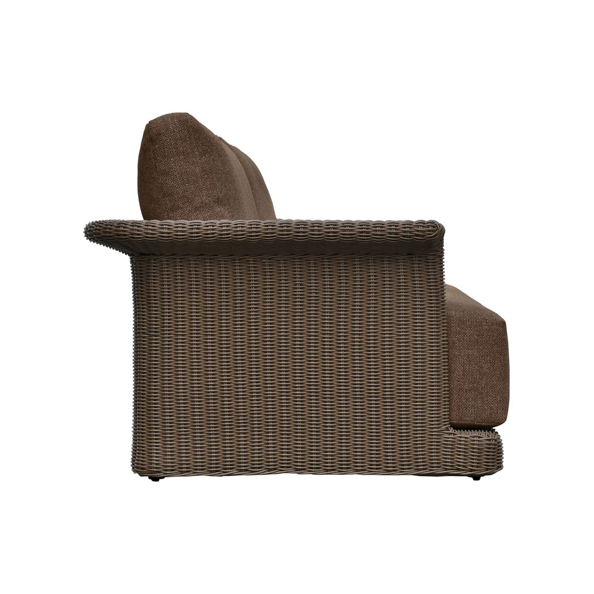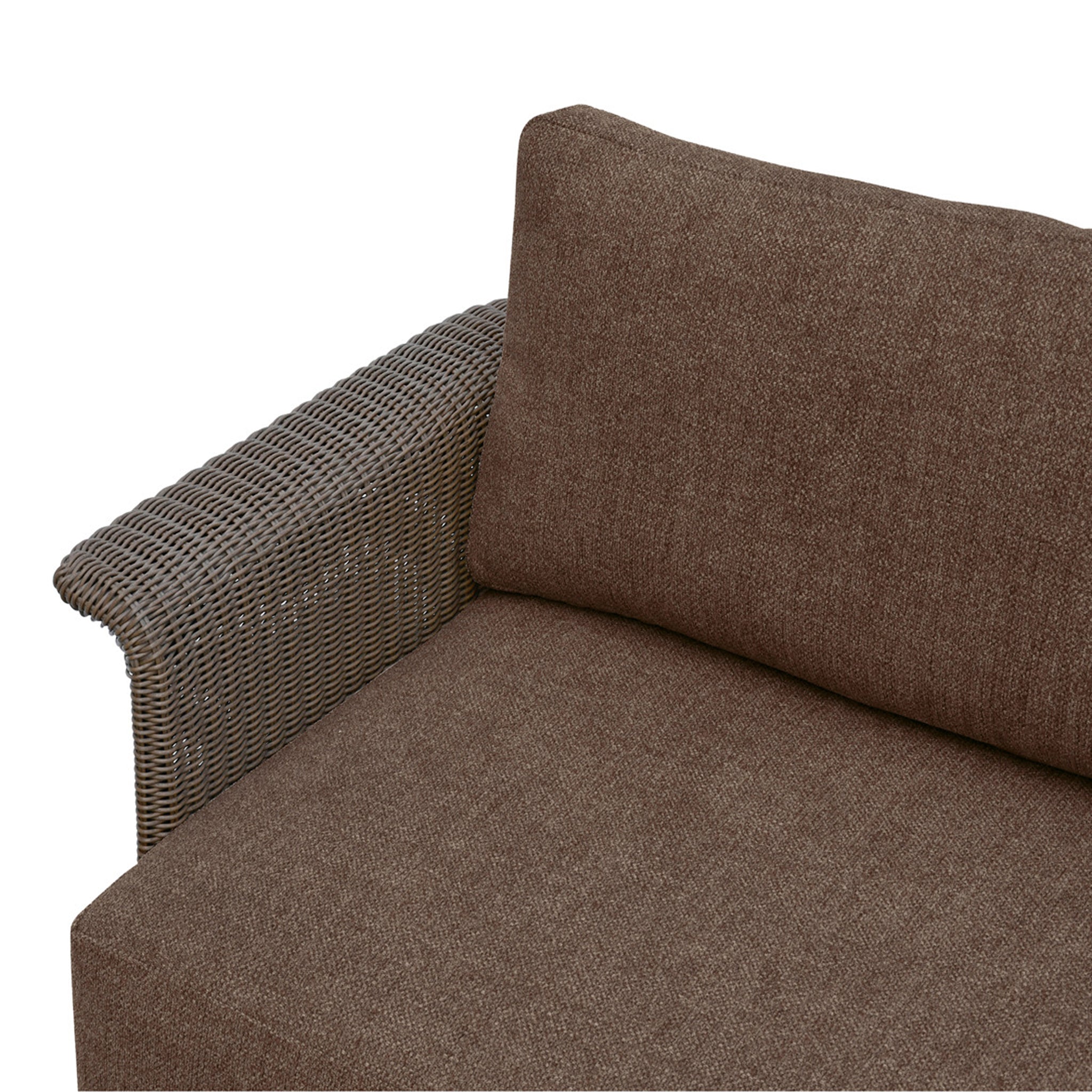 La silhouette gracieuse en tulipe et les accoudoirs incurvés du canapé Morena créent un attrait visuel, tandis que son rembourrage généreux offre un confort optimal. L'osier synthétique, finement tressé sur une structure en aluminium, allie durabilité et esthétique. La mousse à séchage rapide et la fibre Dacron garantissent une résistance durable, tandis que sa teinte sophistiquée s'harmonise avec divers designs extérieurs.
