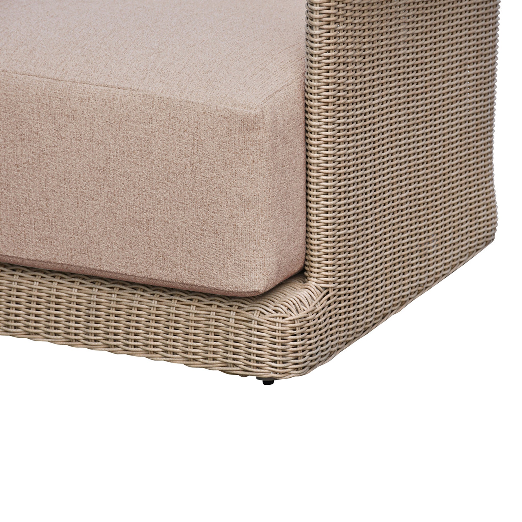 Matériau : Osier synthétique, cadre en aluminium, tissu 100 % polyester teint dans la masse, siège en mousse à séchage rapide, dossier en fibre Dacron