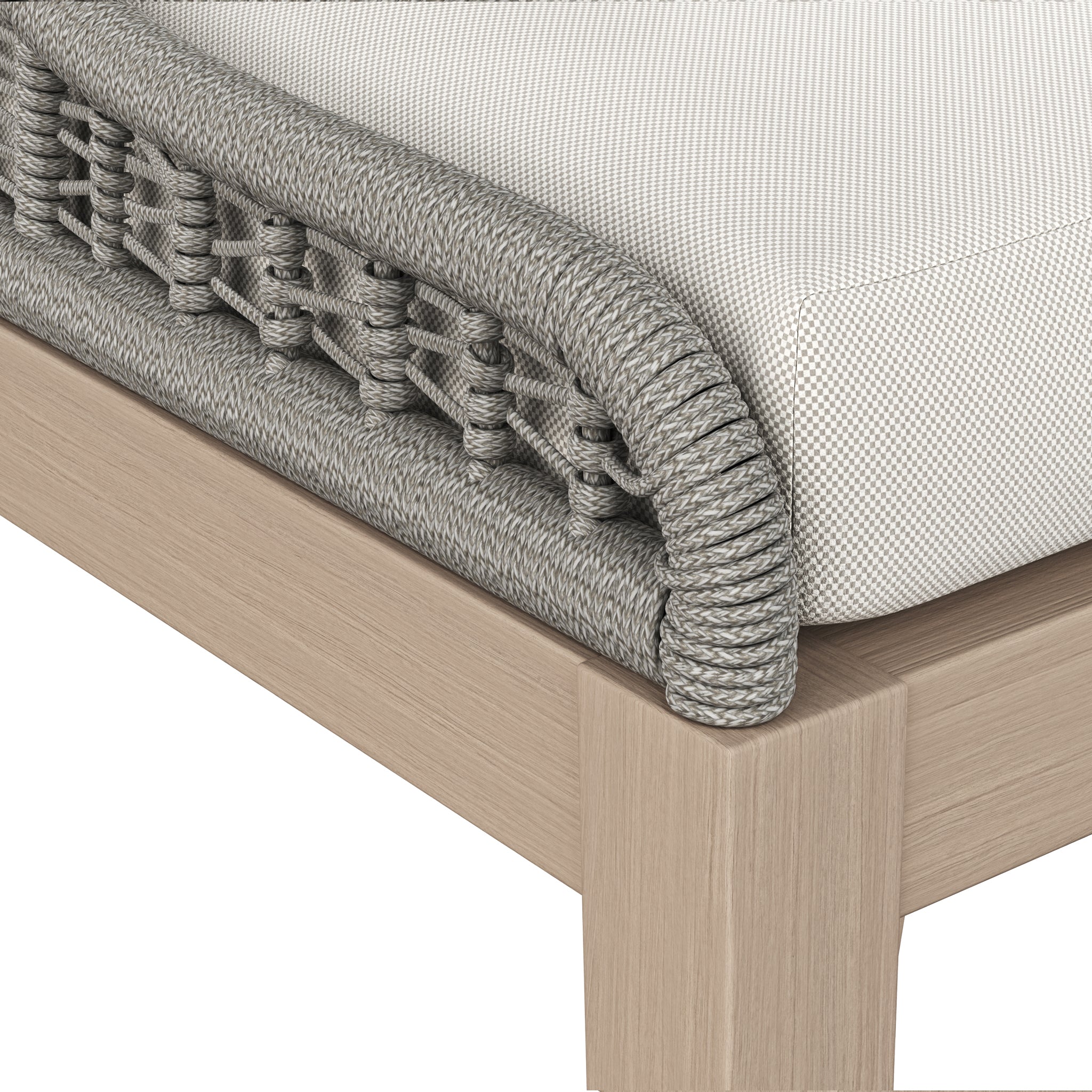 Matériaux : Bois de teck massif, aluminium thermolaqué, tressage gris sur cadre en aluminium gris
