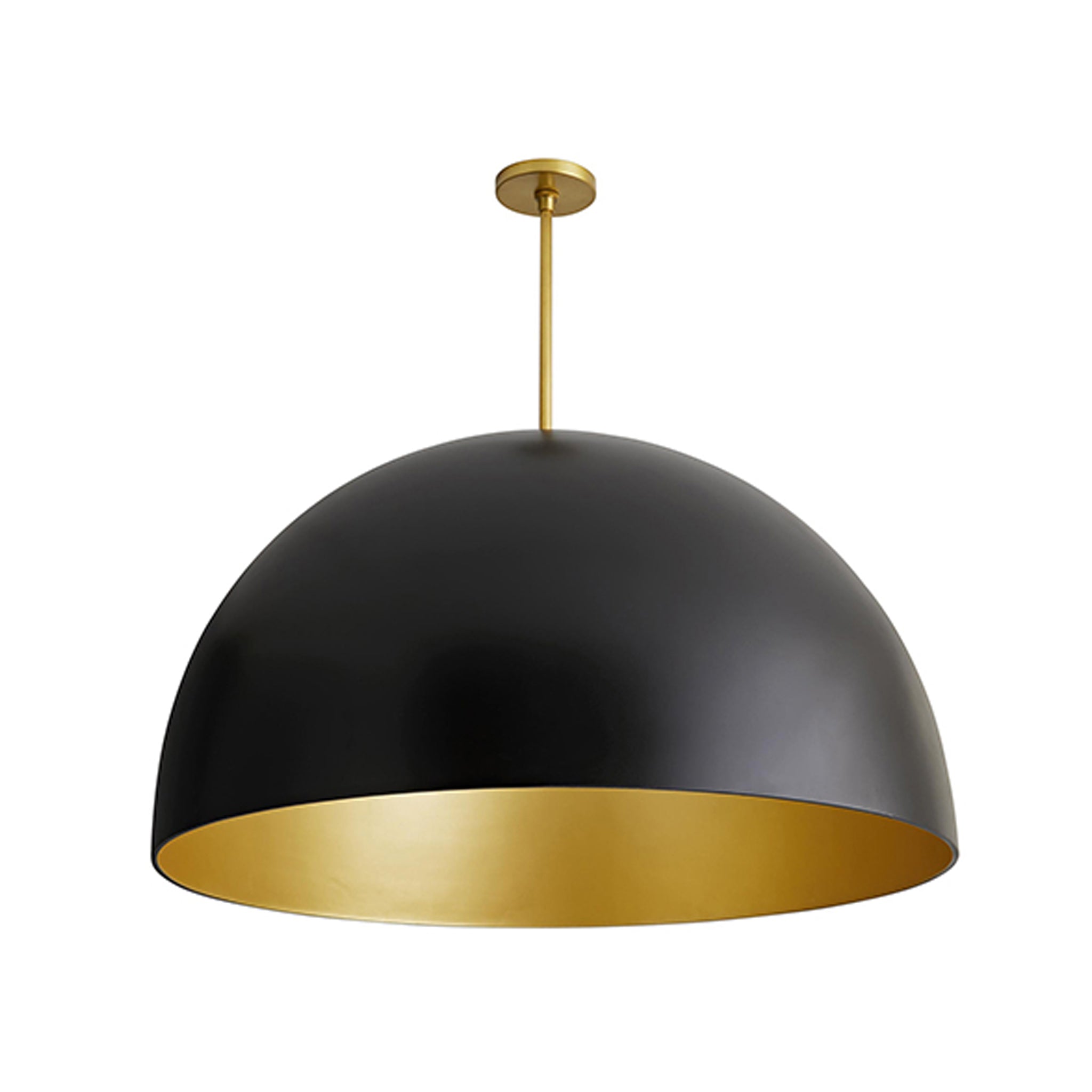 À la fois classique et spectaculaire, ce luminaire surdimensionné allie forme et fonctionnalité à grande échelle. Son design épuré en forme de dôme présente une surface extérieure noire mate, tandis que l'intérieur arbore une finition semi-mate métallisée dorée brillante.