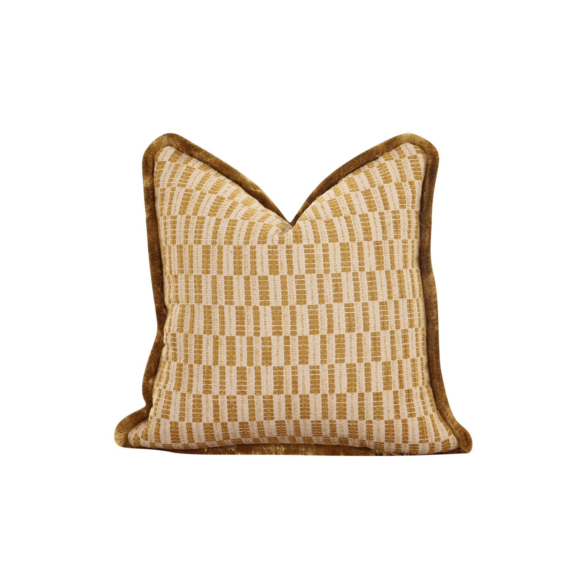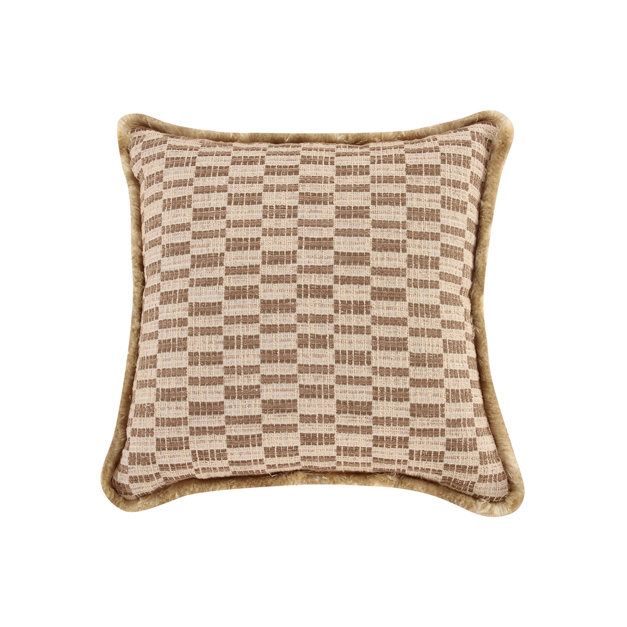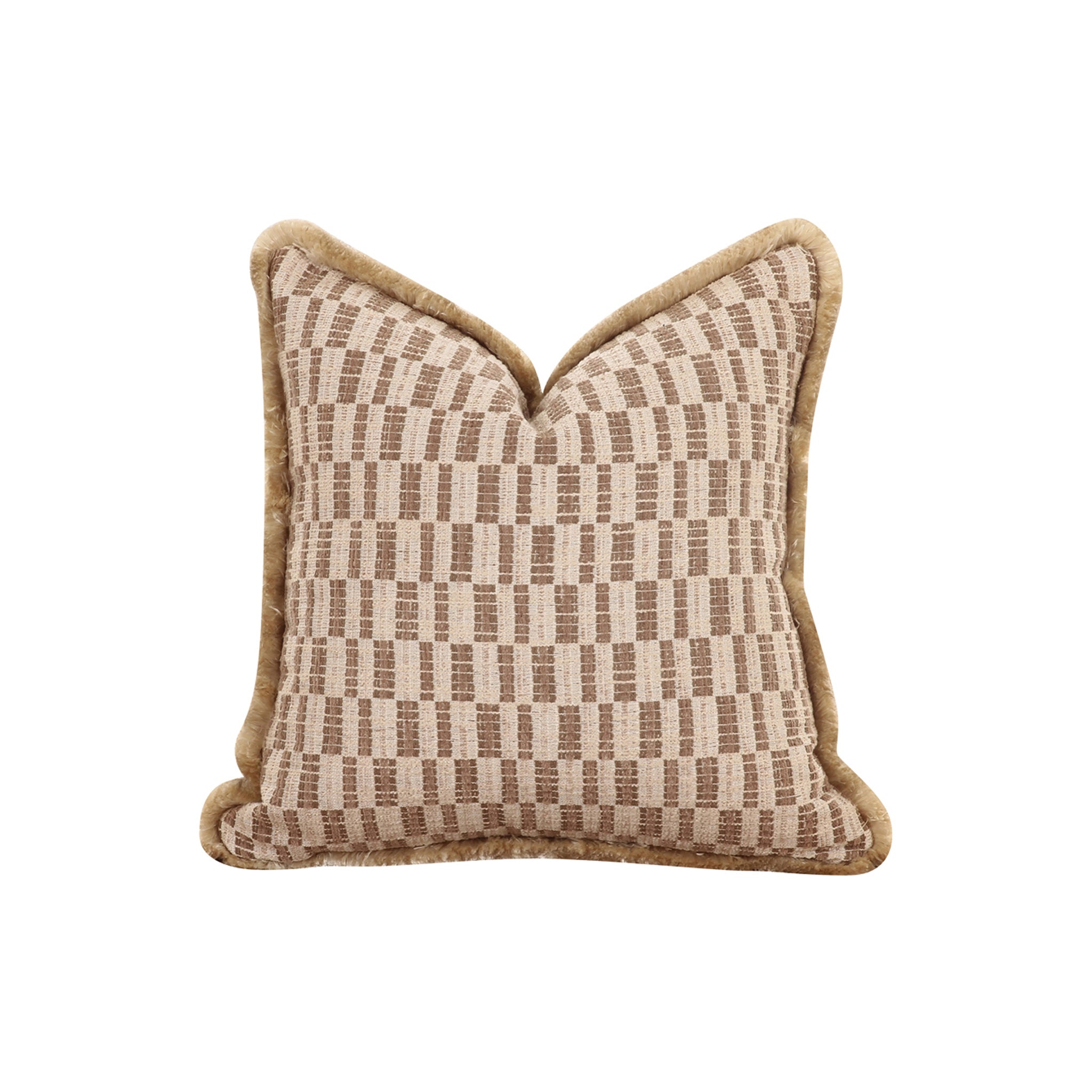 Le coussin Lionel allie charme vintage et modernité avec son imprimé géométrique audacieux d'un taupe éclatant. Soigneusement confectionné avec une bordure à franges dense, cet accessoire d'inspiration Art déco offre un confort optimal et un caractère durable.