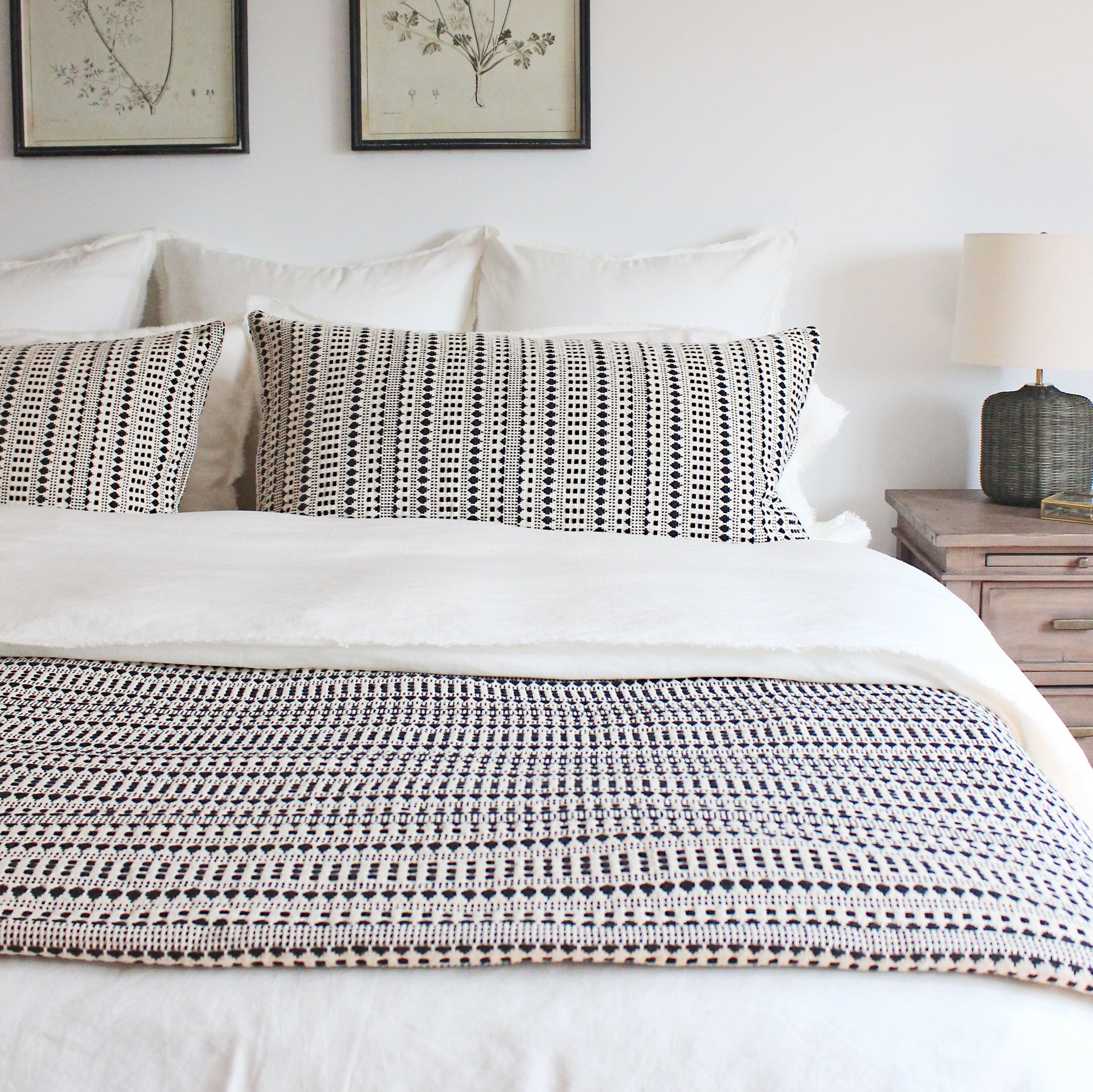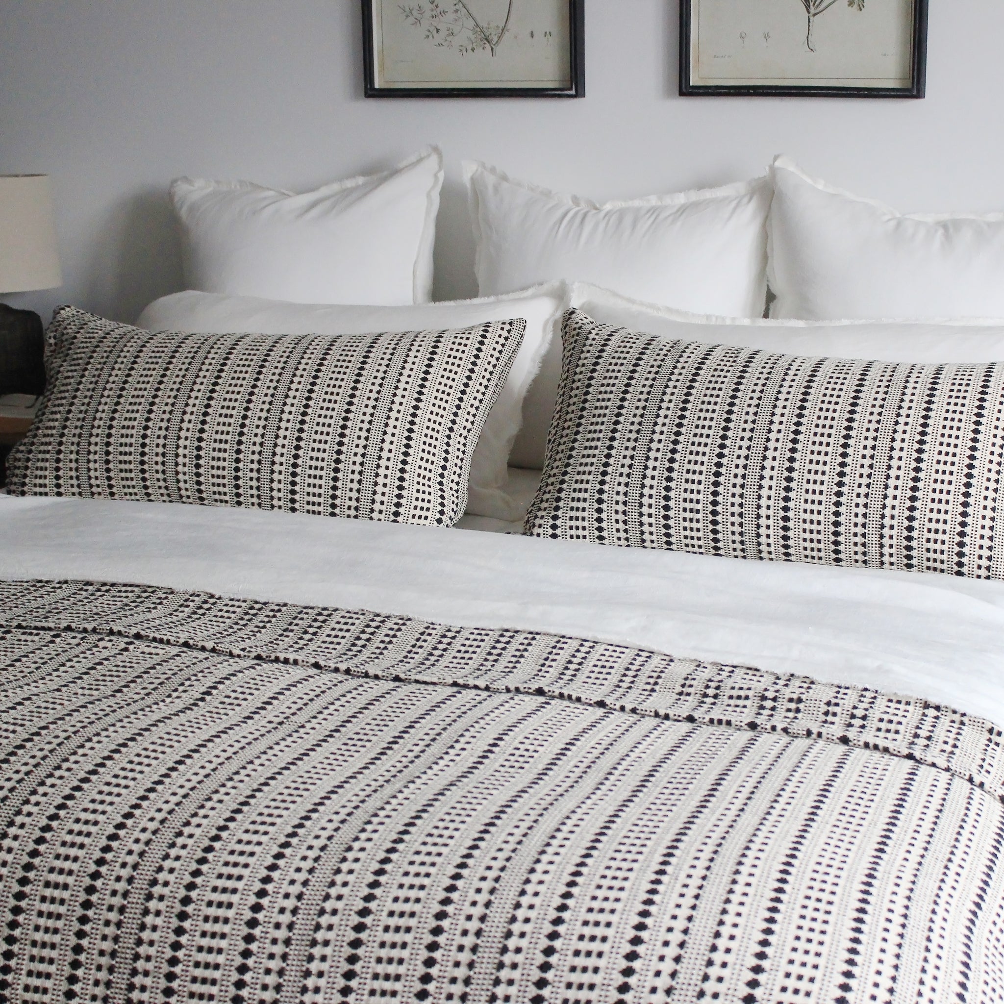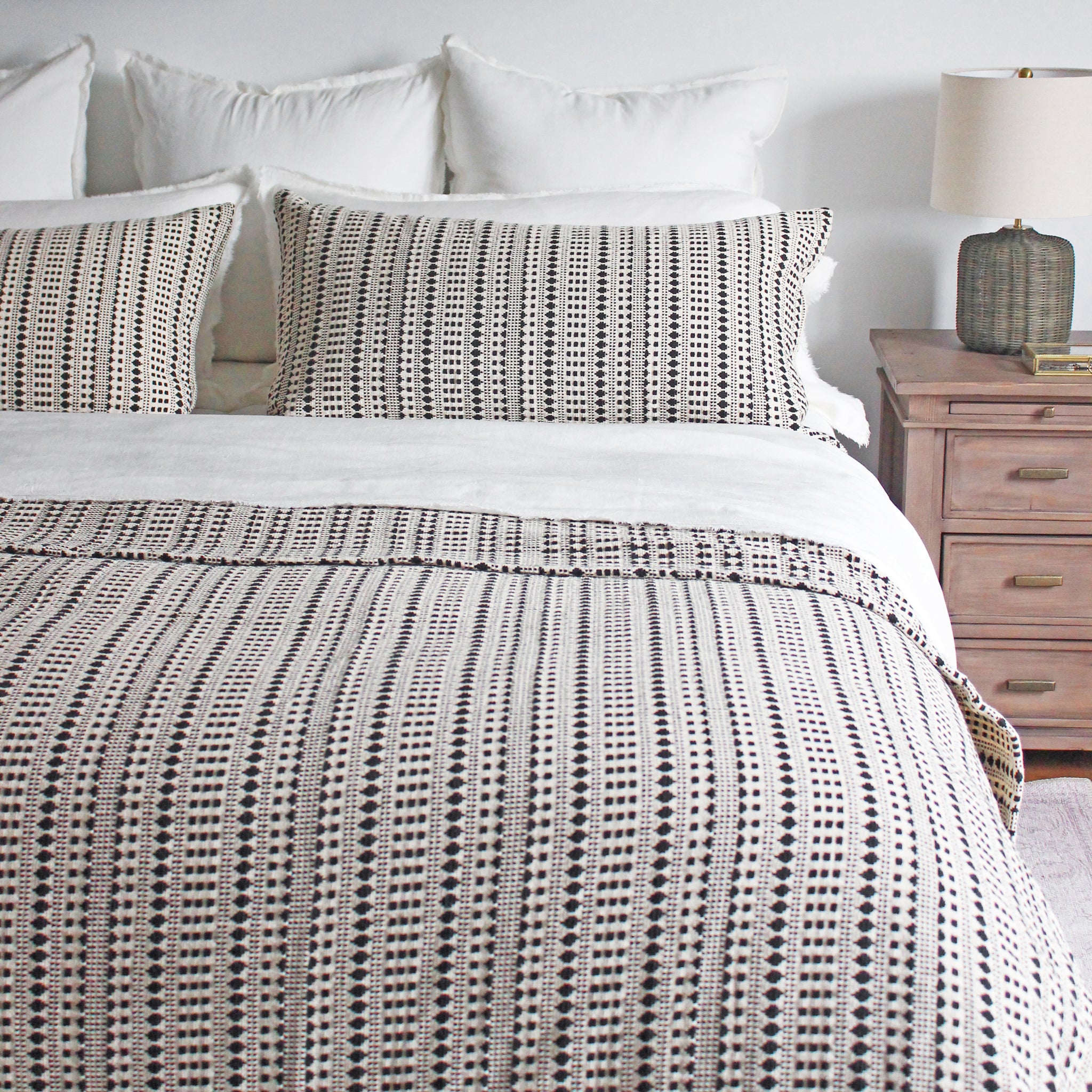 Le moderne rencontre le style cottage avec un motif graphique inspiré du jacquard. À la fois douce et saisissante, cette housse de coussin polyvalente en coton, au tissage dense, complète parfaitement notre couvre-lit assorti. Fabriqué par des artisans engagés dans des pratiques de travail équitables. Fibres naturelles. Double face. Fermeture à nouer. Bordure crantée. Fermeture à glissière européenne. Lavable en machine.