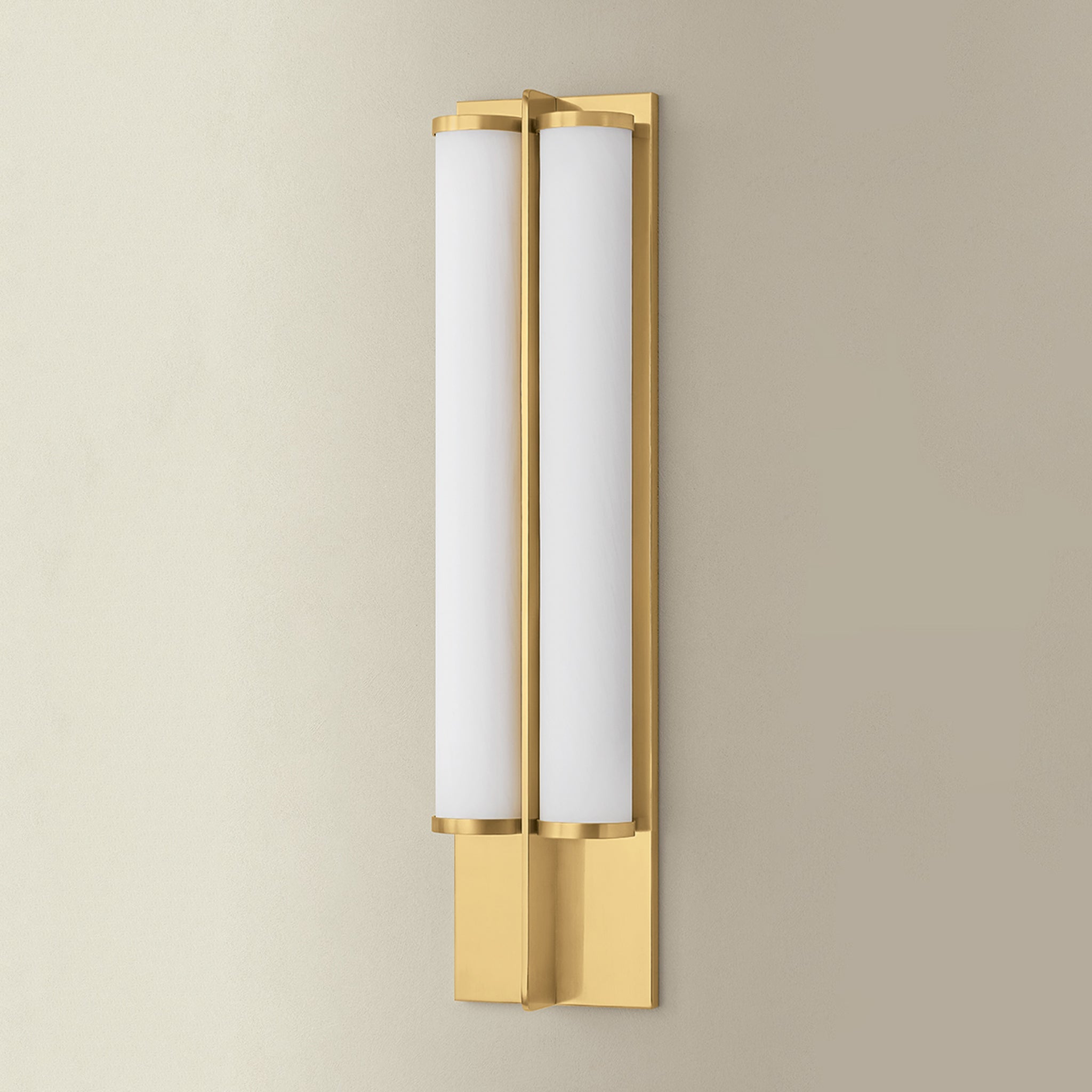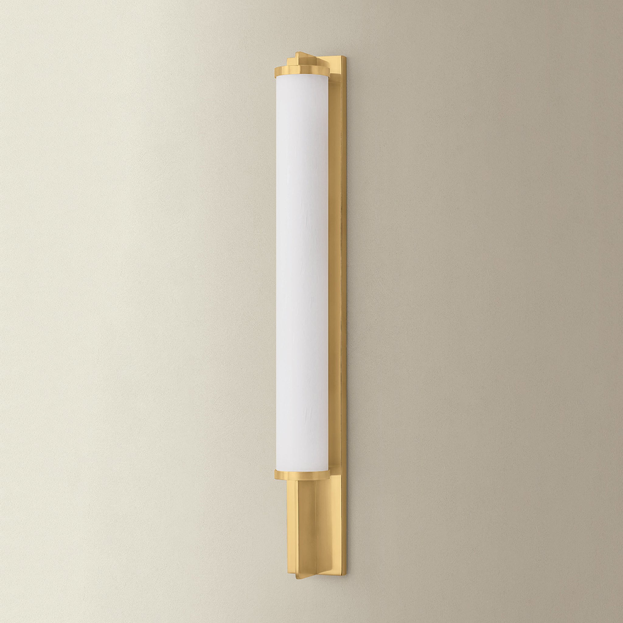 L'applique Northfield allie lignes nettes et courbes douces dans une composition minimaliste. Son design épuré se compose d'un ou deux abat-jour tubulaires en verre dépoli, disposés verticalement au sein d'une structure métallique aux lignes fluides, finition laiton vieilli. Son style moderne et discret en fait un élément polyvalent qui s'intègre à de nombreux styles de décoration.
