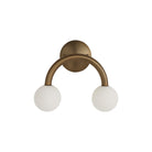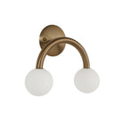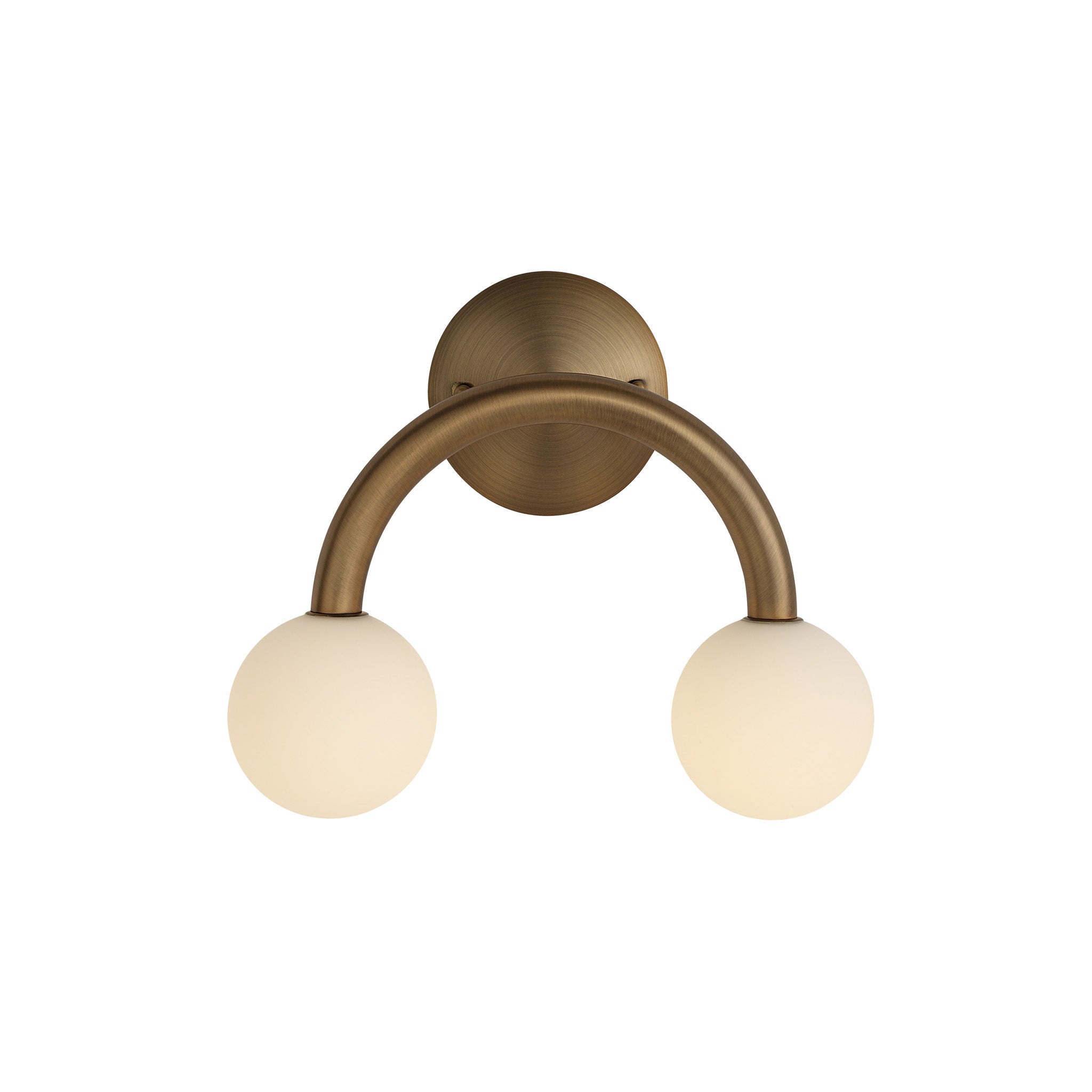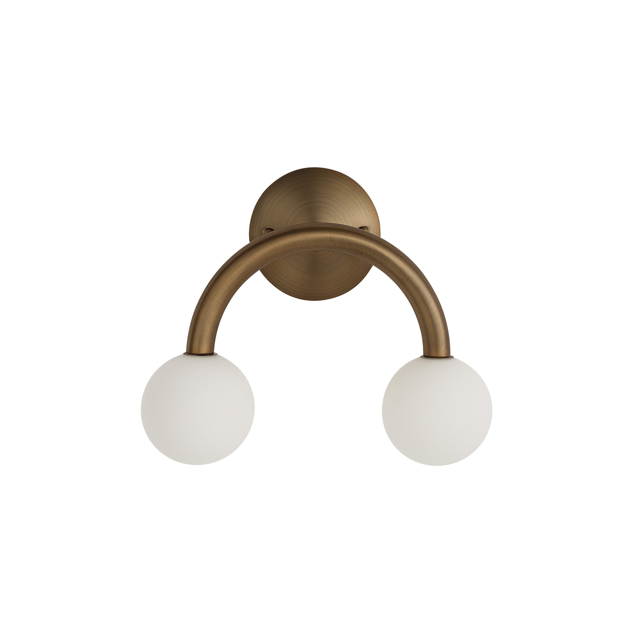 Élégante et contemporaine, cette applique murale à double lumière apportera une touche d'originalité à votre intérieur. Ses deux globes blancs gravés sont suspendus à une structure en fer plaqué laiton brossé foncé, créant une ambiance aérienne et moderne où que vous la placiez. Parfaite en duo ou seule.