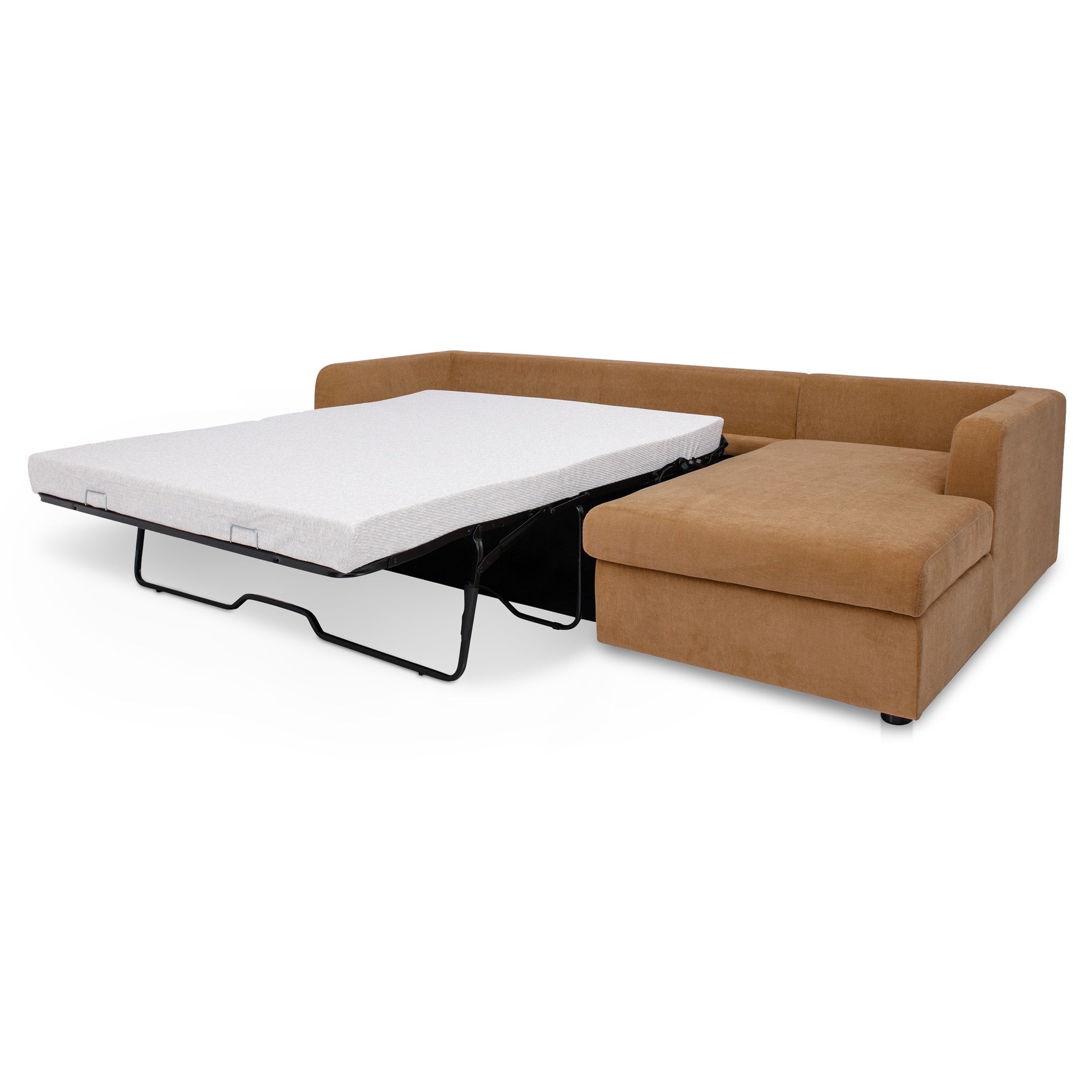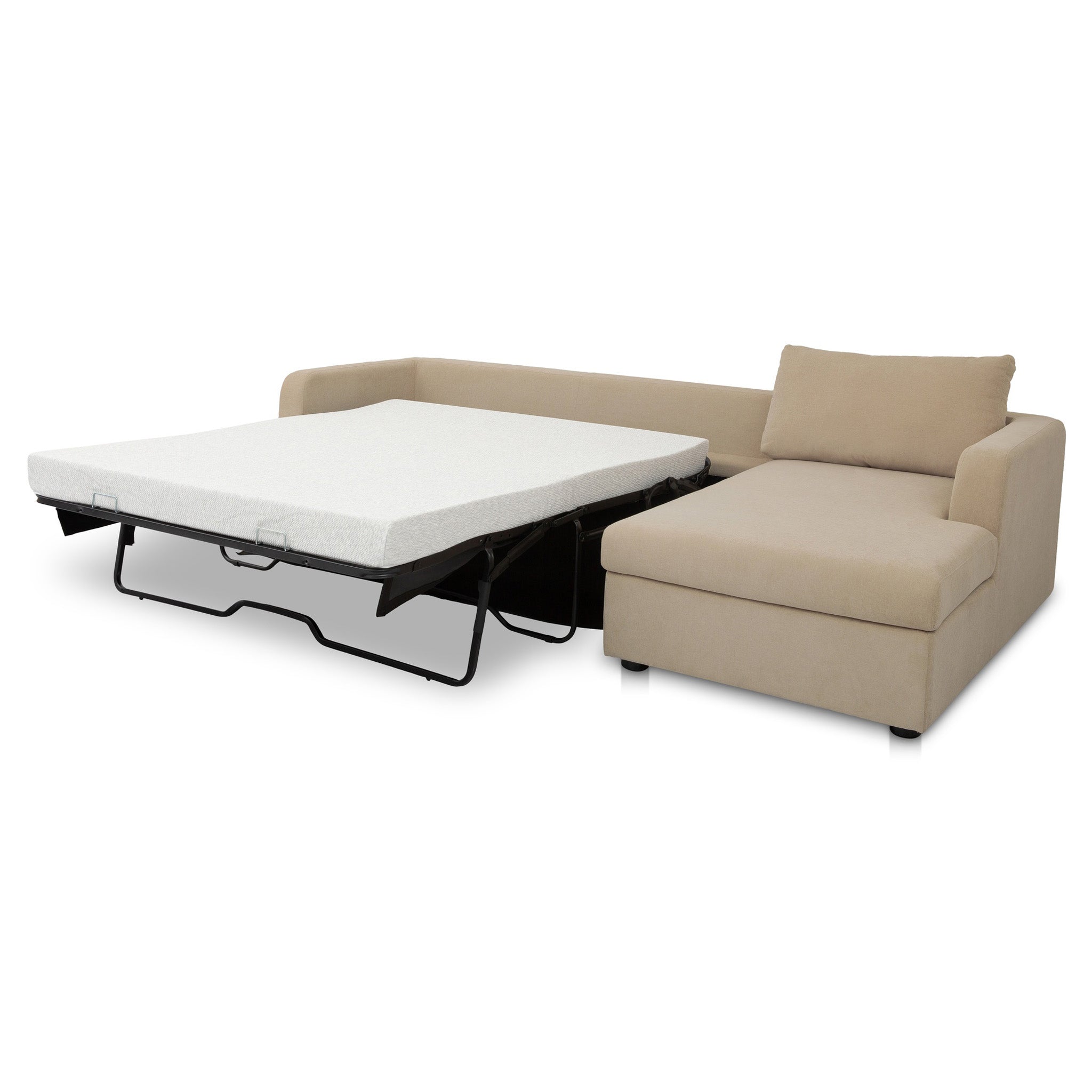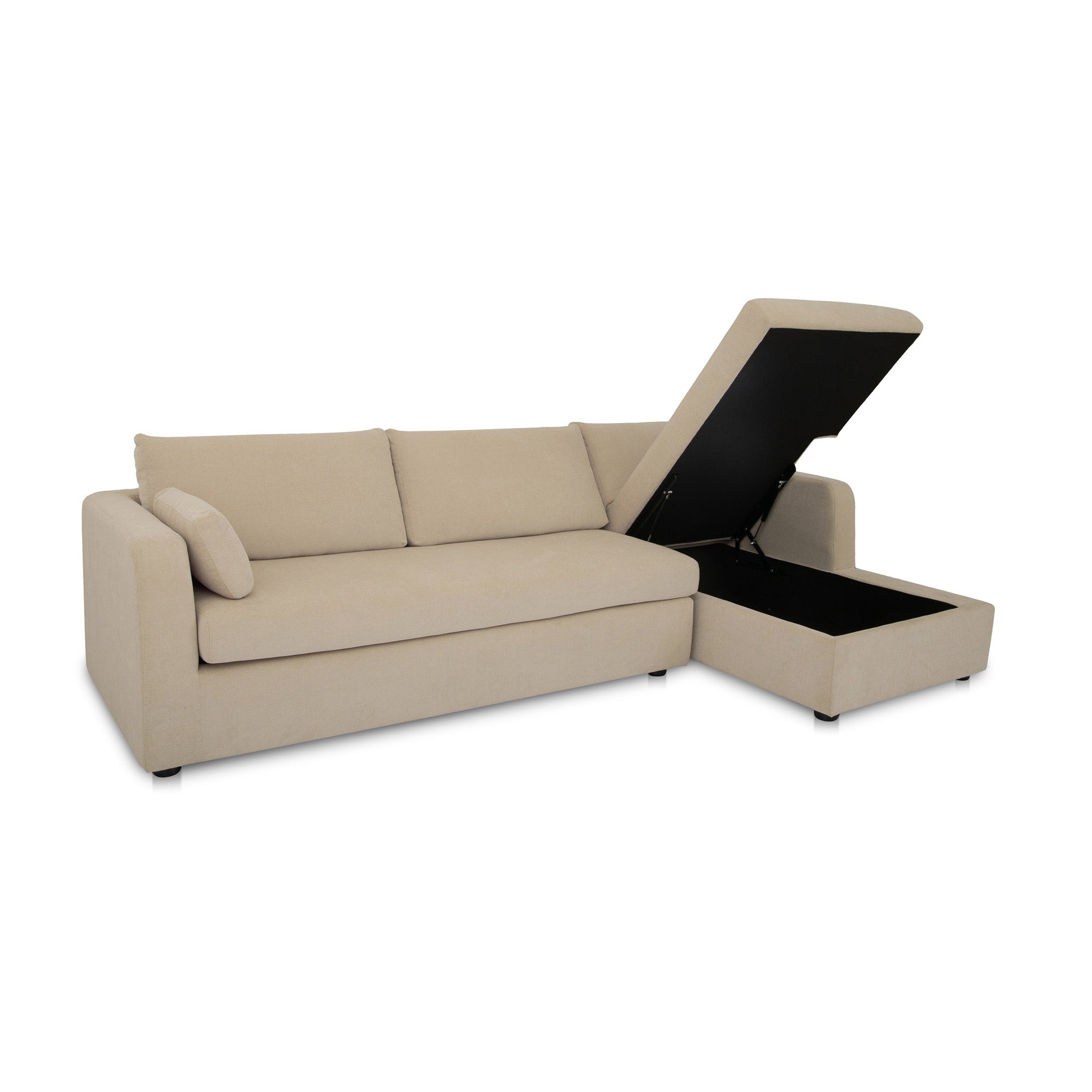 Meet the sectional that does it all. The Burrow combines streamlined design with hidden function, featuring a chaise that lifts to reveal storage and a sleeper that pulls out into a short queen mattress. Upholstered in recycled polyester performance blend, it's designed for daily use with a textured hand. With softened corners and toss cushions at the arms, Burrow makes compact living feel considered and complete.