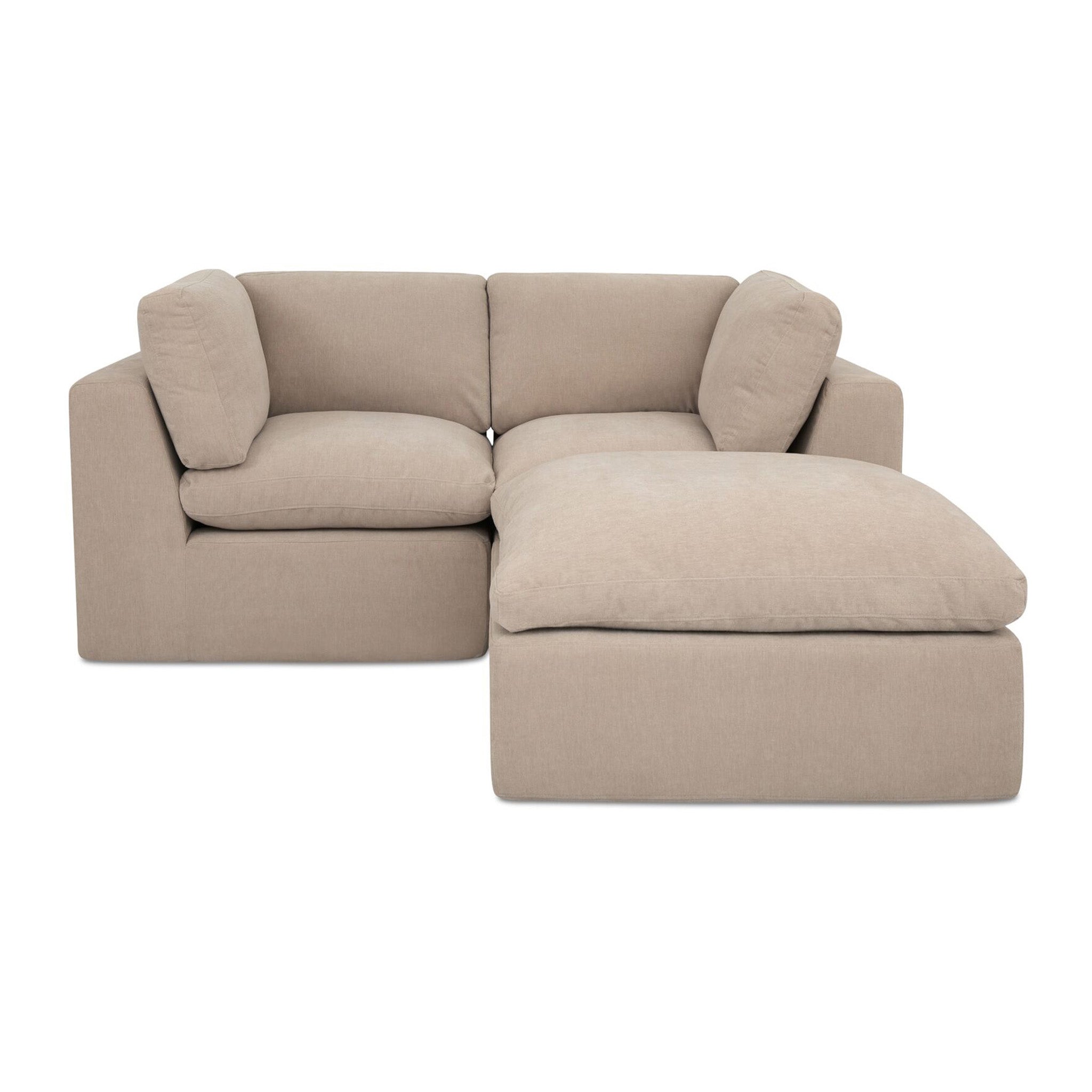 Smart design. Easy comfort. The Cates Nook delivers sink-in softness with a frameless, foam-based build that feels as good as it looks. Made entirely from dense foam, memory foam, and fiber fill-no frame, no tools-this compact modular sectional ships vacuum-sealed in space-saving boxes and expands fully within 24 hours. With wide arms, plush back cushions, and a grippy base, it's a lightweight, low-profile setup built for cozy corners, small apartments, or modular add-ons.