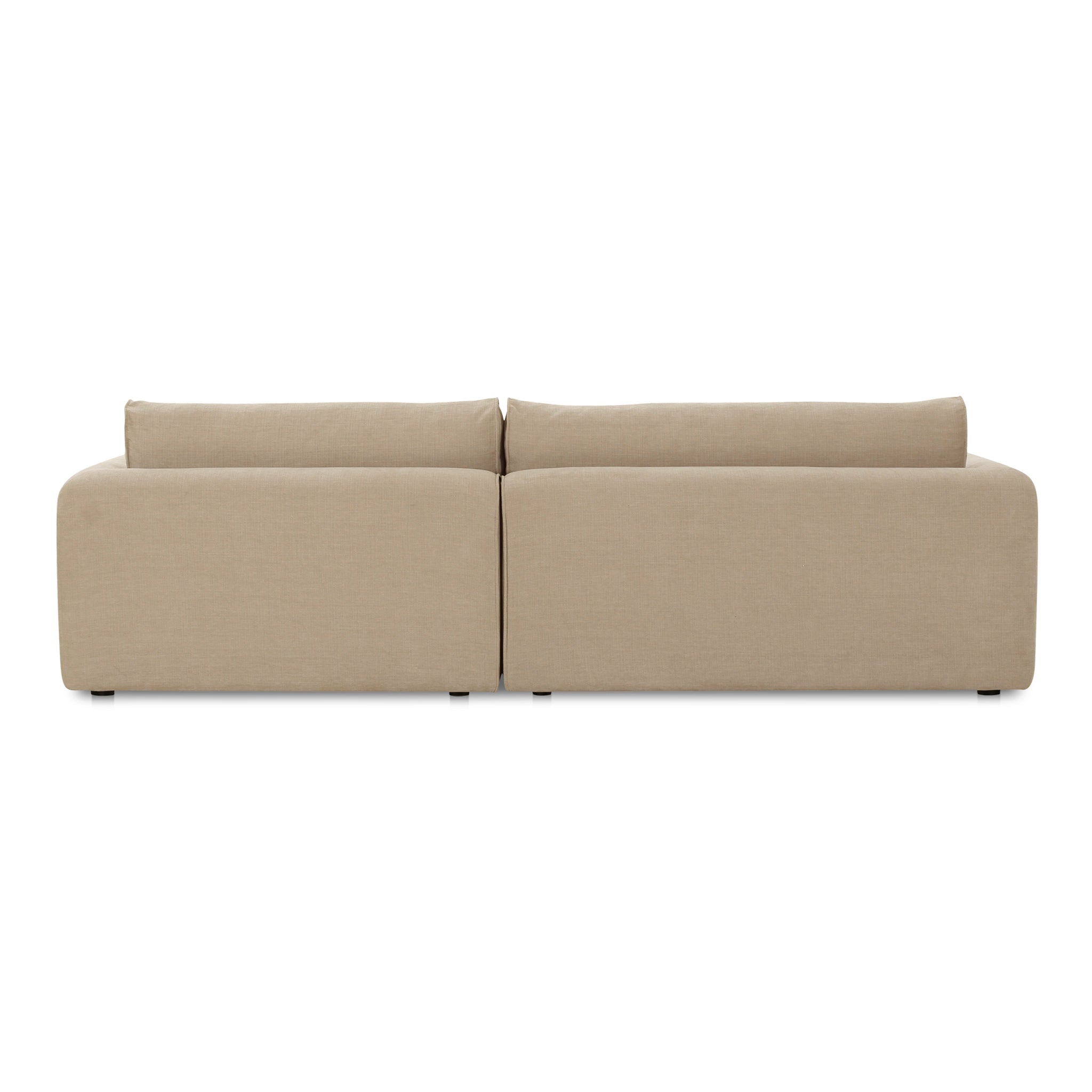 Le revêtement en tissu chenille doux et la large méridienne inclinée unique du canapé d'angle Mona lui confèrent une silhouette unique. Doux et doté d'un tissage chemin de fer, il invite au toucher, tandis que les passepoils ton sur ton attirent le regard. Une assise fixe moelleuse et des coussins de dossier amovibles et réversibles assurent un confort et une polyvalence durables.