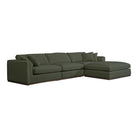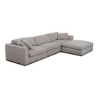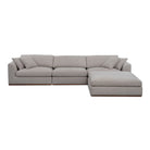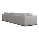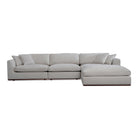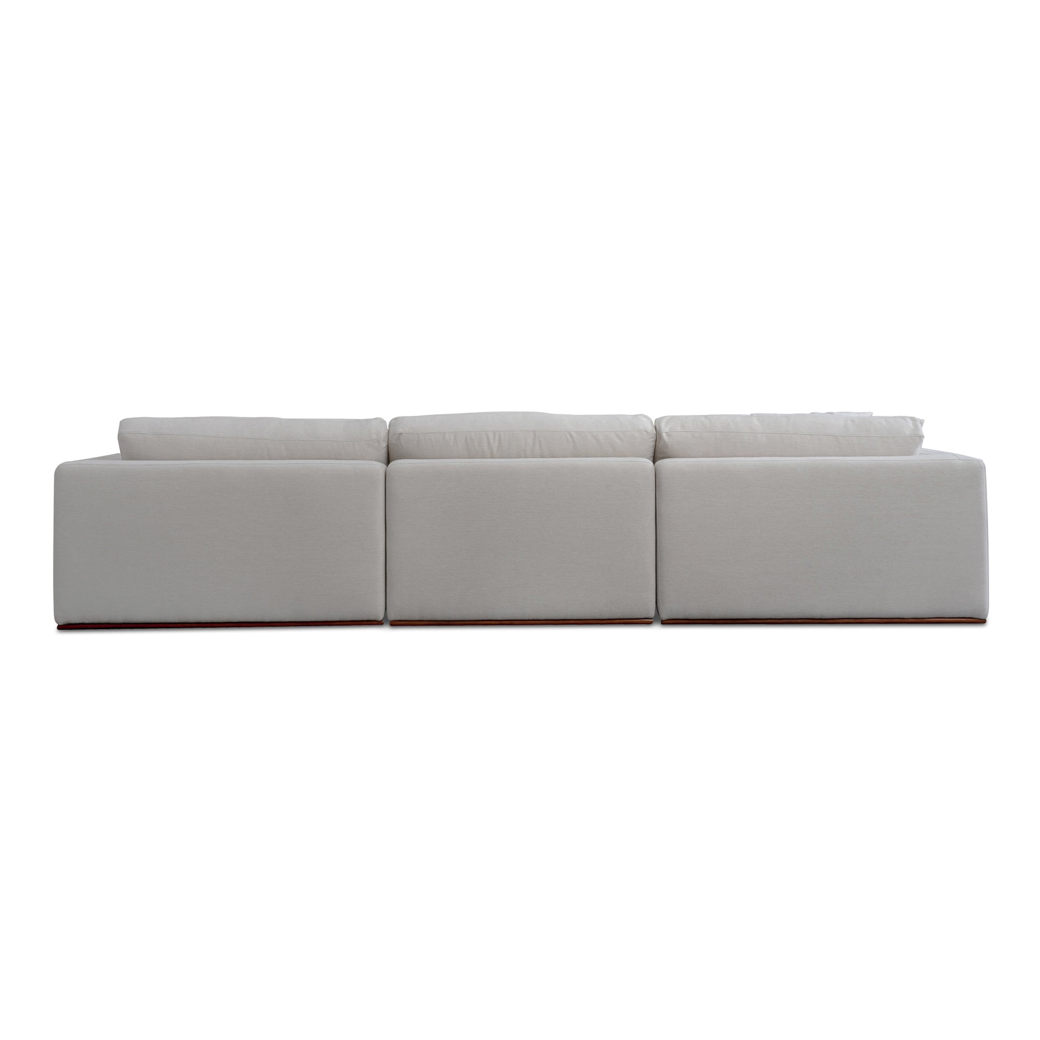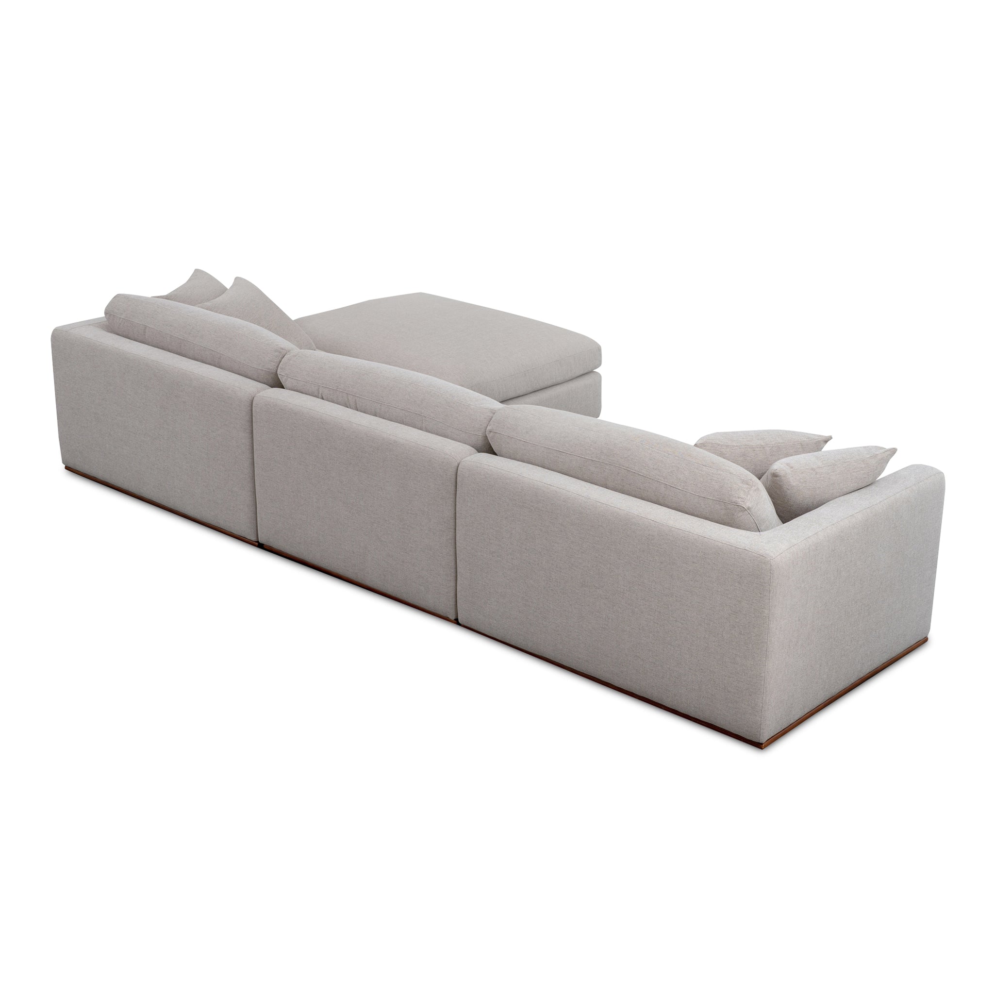Le canapé d'angle modulaire Rain est doté d'une généreuse assise garnie de plumes à 70 % et de coussins décoratifs pour un confort optimal. Sa silhouette élégante est soulignée par un piètement en bois d'hévéa, créant une allure aérienne et épurée, le tout soutenu par de subtils pieds en bois. Conçu pour un confort optimal, ce canapé modulaire incarne un style simple et neutre.