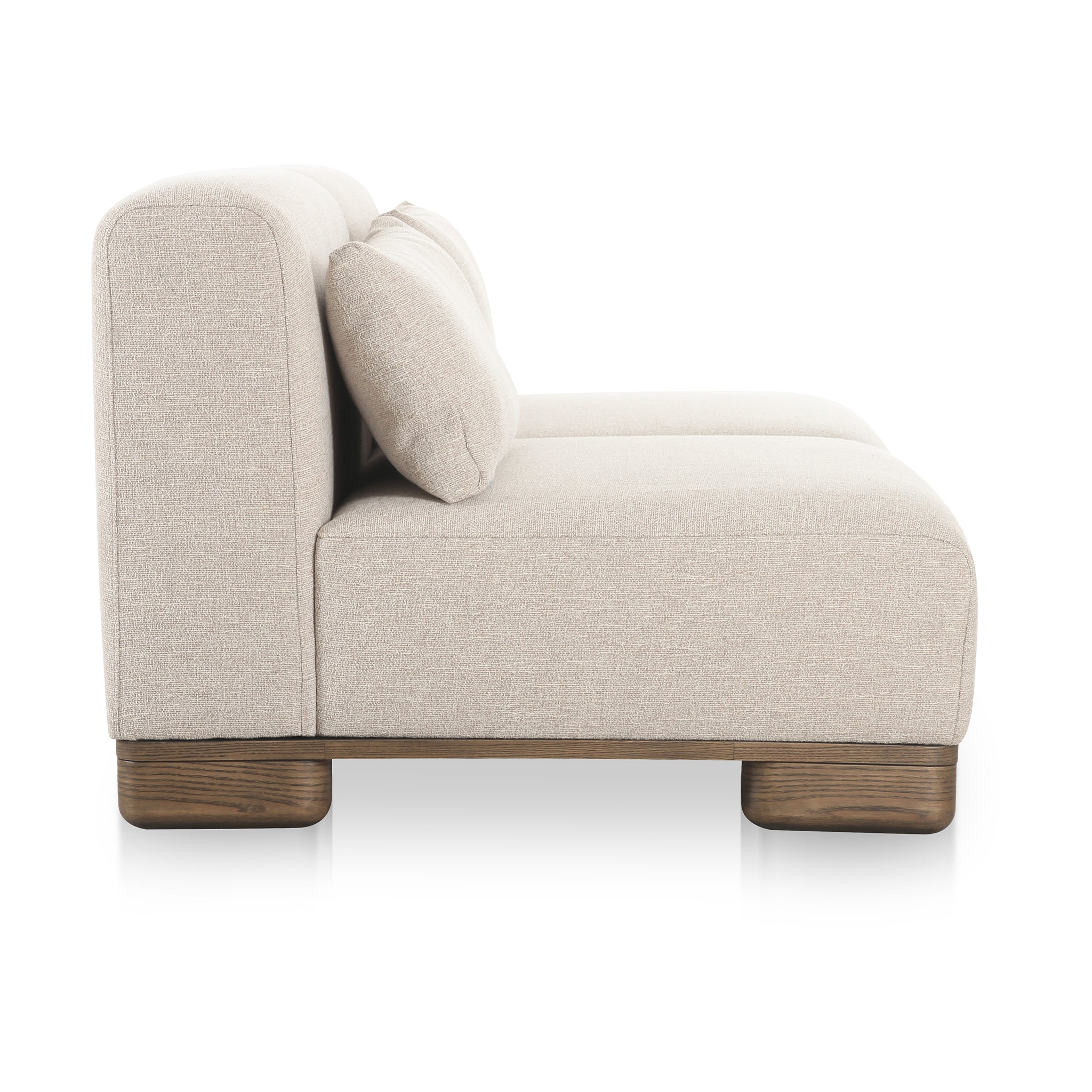 Conçue avec des éléments modulaires pouvant être utilisés seuls ou intégrés à des configurations modulaires, la collection Thiago est synonyme de polyvalence. Enveloppée de tissus performants aux tons chauds et texturés, et sublimée par des pieds surdimensionnés en placage de chêne, cette pièce allie confort quotidien et élégance discrète. Conçue pour une détente ultime, son garnissage moelleux en plumes et fibres, ainsi que ses coussins lombaires, offrent un confort absolu.