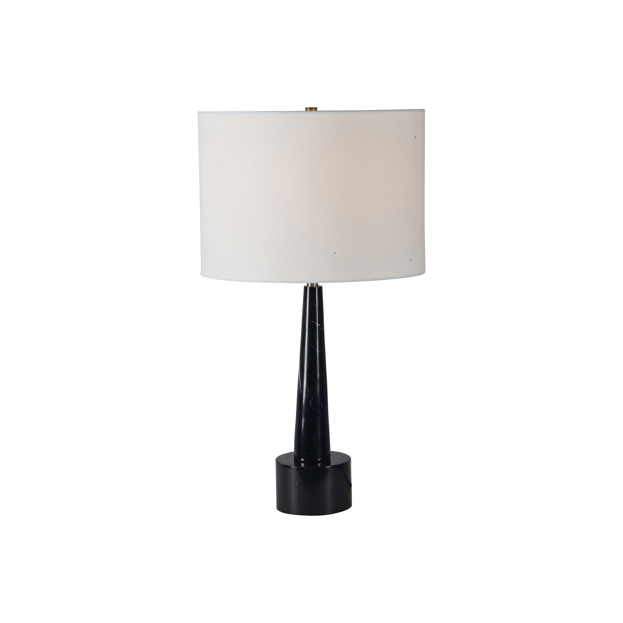 La silhouette sculpturale de cette lampe de table moderne s'inspire de la pierre naturelle comme matériau artistique. Taillé dans des dalles de marbre noir, le pied décoratif en pierre arbore des formes géométriques simples pour un résultat époustouflant, avec une tige conique reposant sur une base cylindrique. Des touches de laiton antique et un abat-jour tambour en lin blanc cassé confèrent une touche de raffinement à ce somptueux luminaire d'appoint.