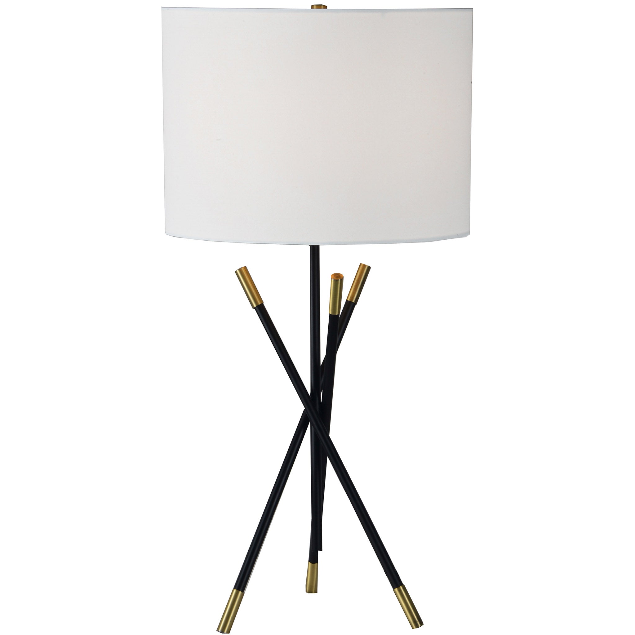 Le design magistral de cette lampe de table moderne illumine les intérieurs d'une touche de magie. Trois tiges d'acier noir, ornées d'un placage en laiton antique, forment la forme entrecroisée du pied décoratif. Un abat-jour tambour en lin blanc cassé apporte la touche finale à ce charmant luminaire d'appoint, aussi bien utilisé comme pièce maîtresse que comme luminaire de table d'appoint.