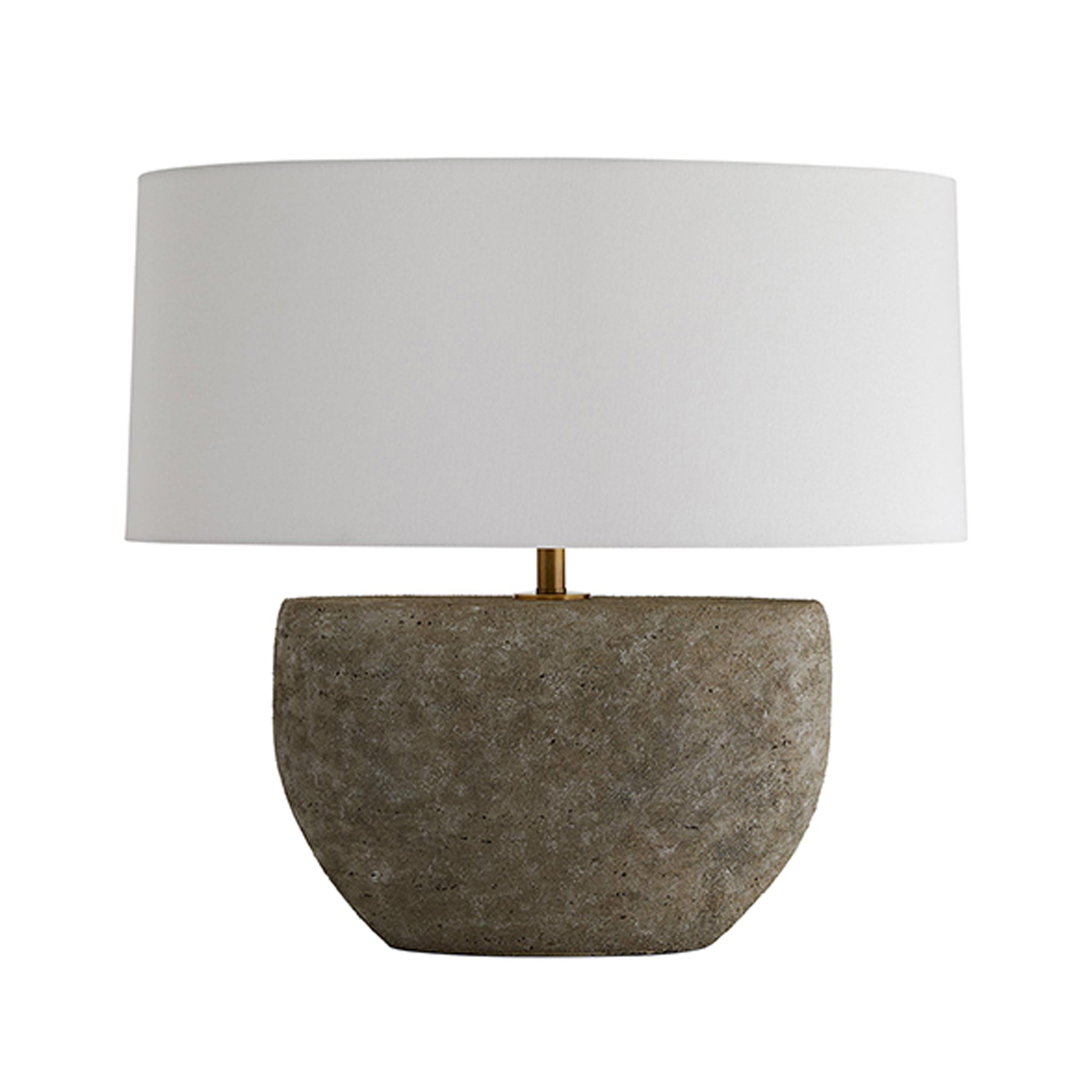 Quelle merveilleuse découverte géologique que cette lampe ! Son socle en faux béton est tout à fait identique à celui d'une vraie lampe, mais sa conception est plus légère et plus douce pour les plateaux de table. C'est vraiment stupéfiant de voir comment les artisans parviennent à créer à la main des textures aussi merveilleusement organiques. Sa large stature est impressionnante et s'intègre parfaitement à une console. Elle est surmontée d'un abat-jour ovale Slip Uno Fitter en lin blanc avec doublure en coton ivoire. Elle est équipée d'un variateur d'intensité. La finition peut varier.