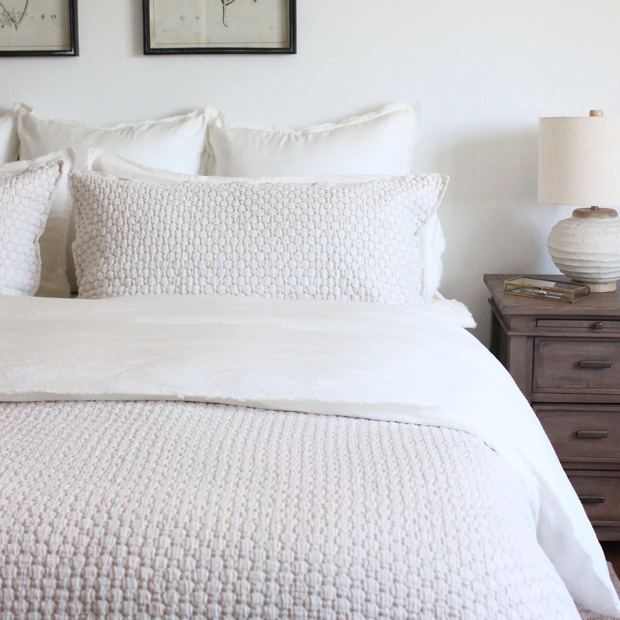 Avec sa texture séduisante et son toucher sensuel, la taie d'oreiller matelassée Lodi présente un motif délavé à la pierre, couleur sable neutre, qui ajoute richesse et dimension à un lit magnifiquement superposé. Fabriquée par des artisans engagés dans des pratiques de travail équitables. Lavable en machine. Écologique. Fibres naturelles. Bordure en couteau. Ouverture enveloppe. Fermeture à glissière européenne hollandaise. Fabriqué au Portugal.