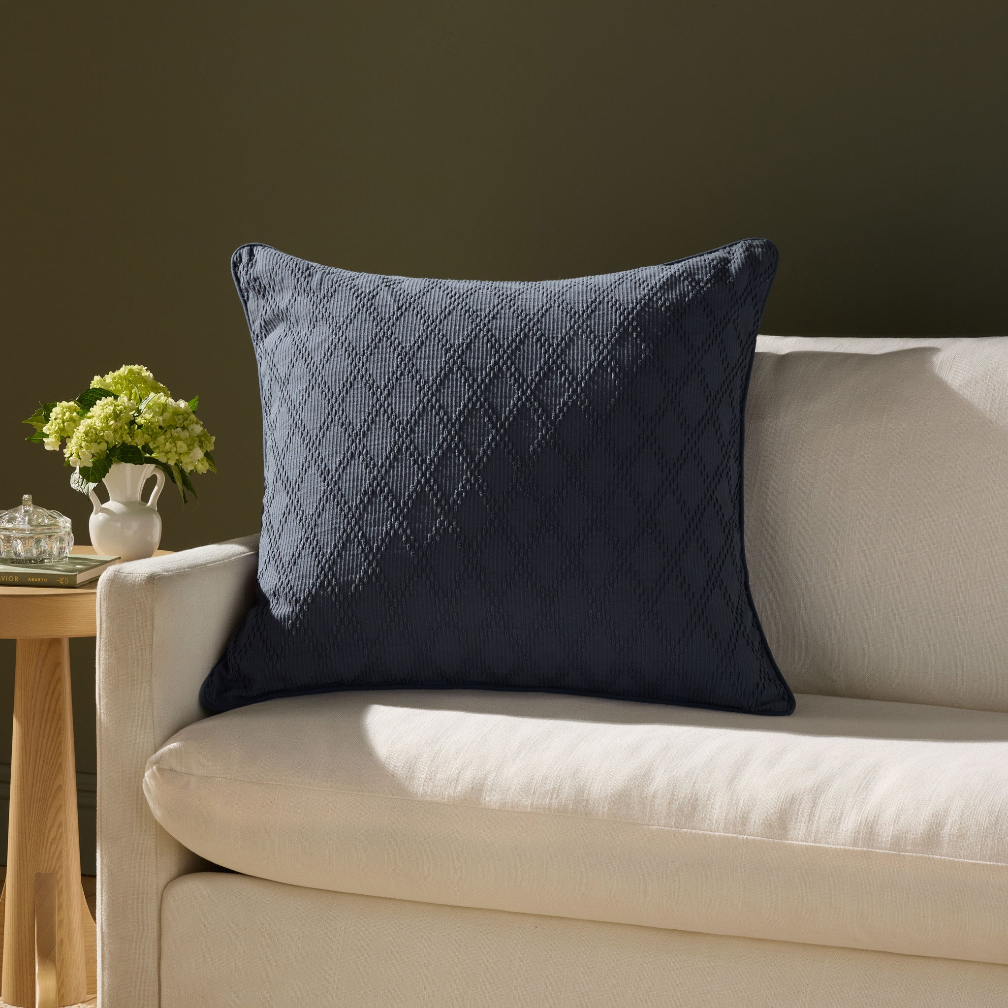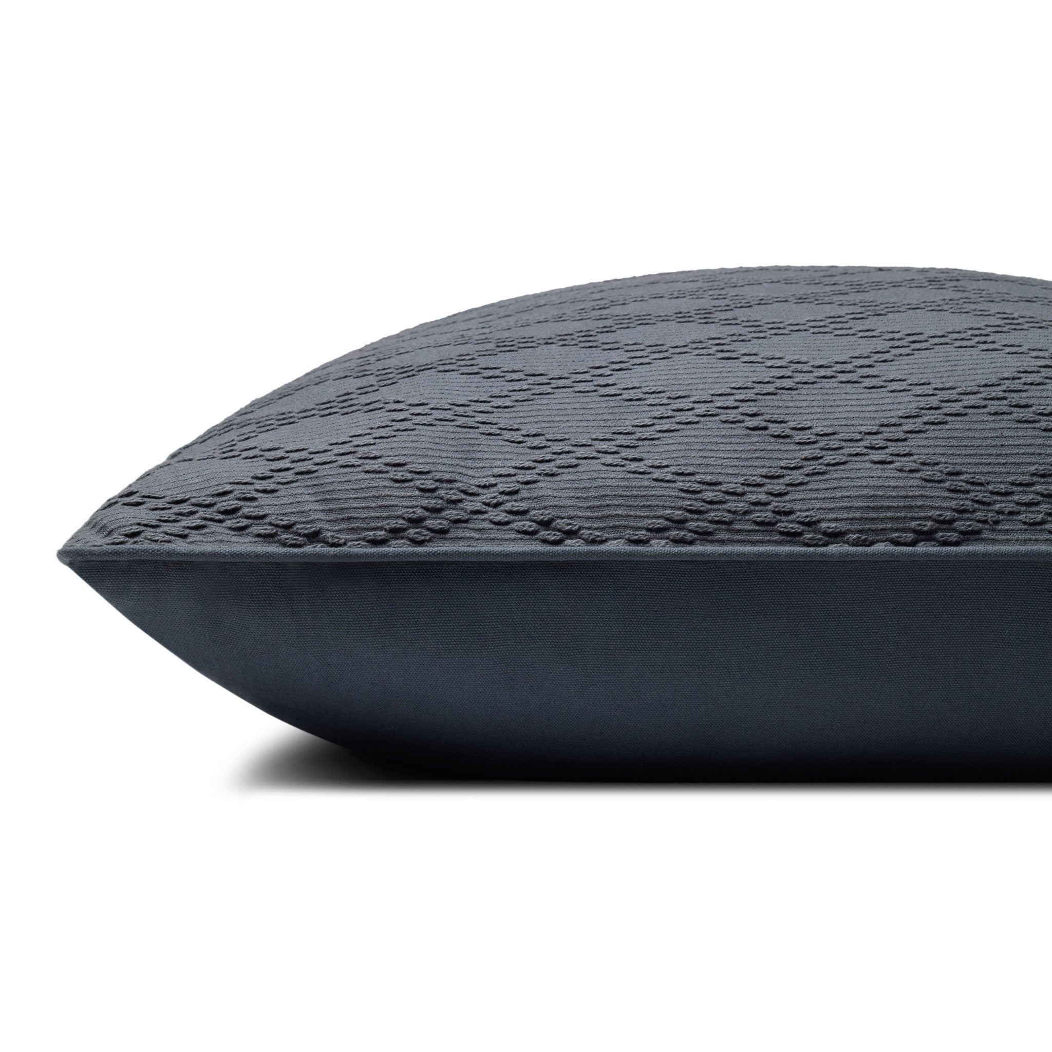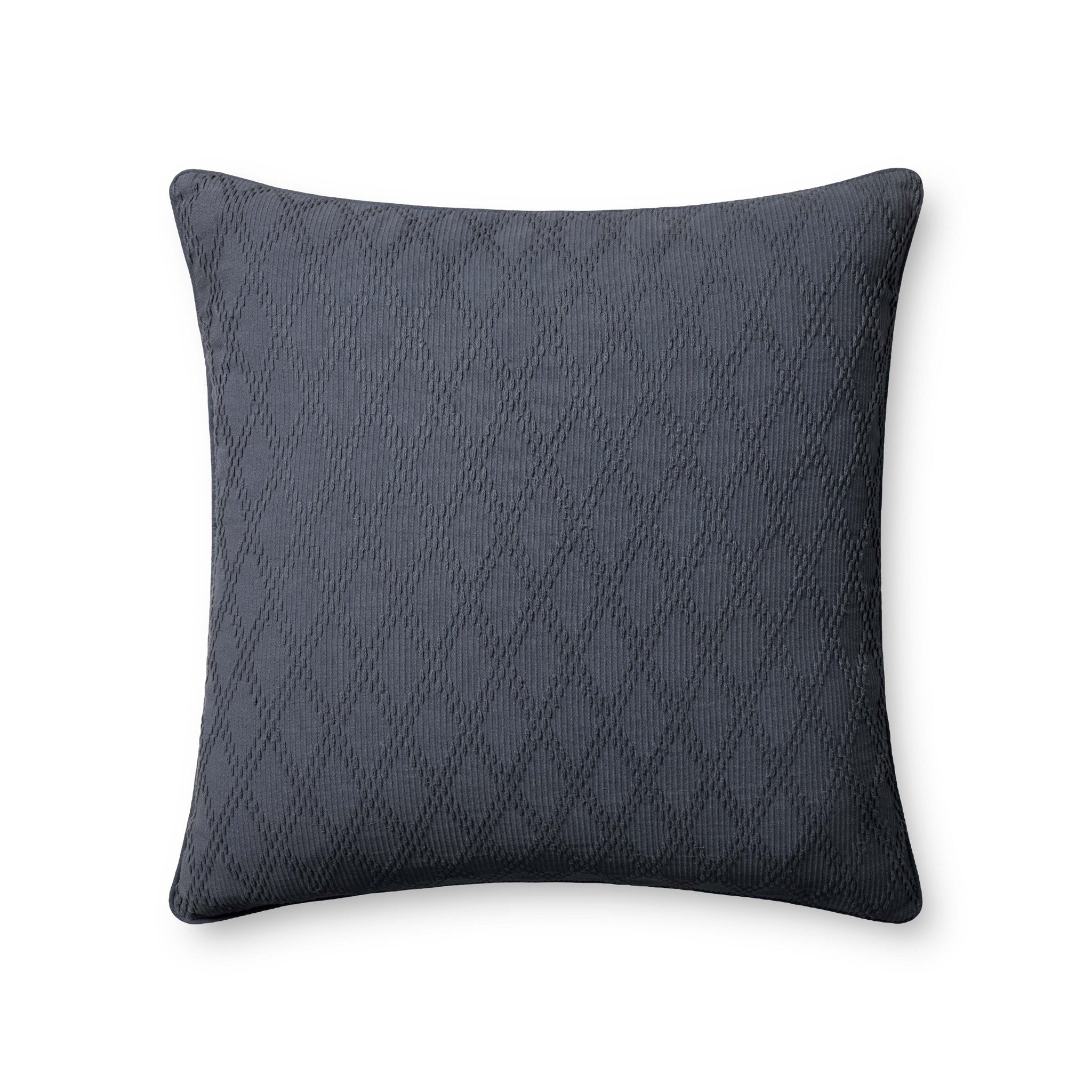 Le coussin décoratif Cary de Chris Loves Julia x Loloi présente un motif losanges légèrement texturé en coton bleu, un classique intemporel qui s'accorde avec tous les styles de décoration. Ce grand coussin, 100 % coton et fabriqué en Inde, mesure 66 x 66 cm (taille européenne) et convient parfaitement aux salons et aux chambres.