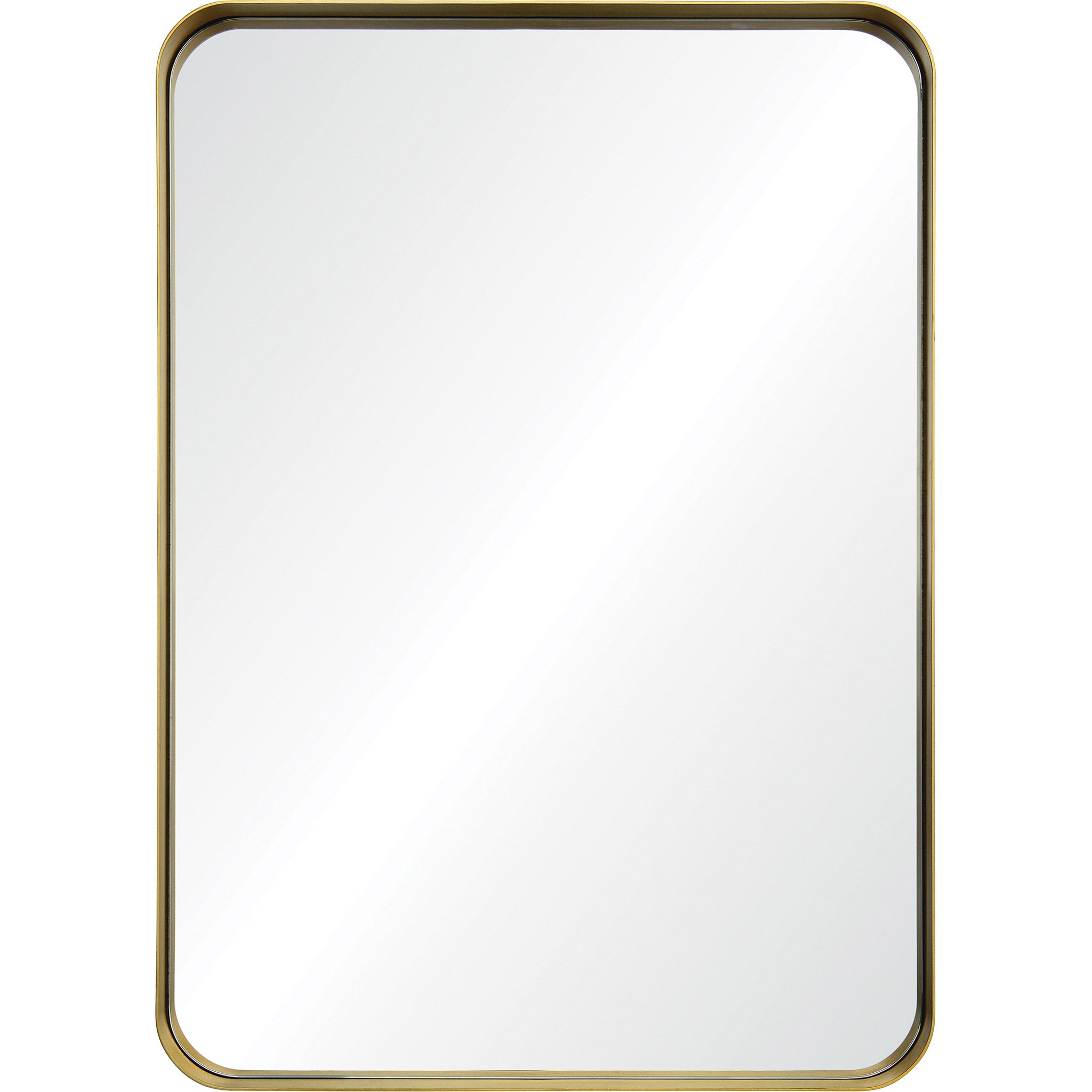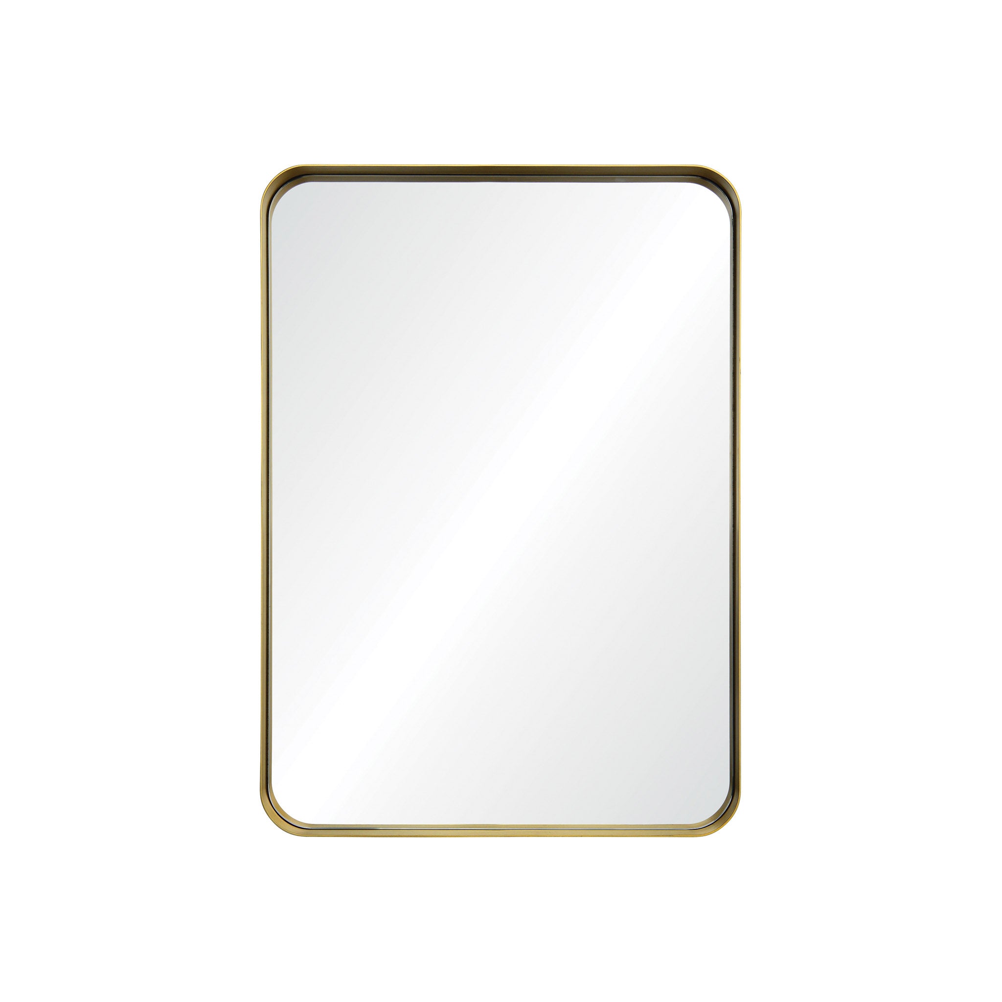 Pour créer un aménagement mural contemporain, ce miroir moderne offre tous les reflets nécessaires. Ses angles arrondis éloignent la forme rectangulaire du miroir des conventions, tandis que le positionnement encastré du miroir met en valeur la finesse du cadre en fer. Ce miroir mural décoratif arbore une patine or antique brossée qui confère aux espaces contemporains une touche d'antiquité classique.
