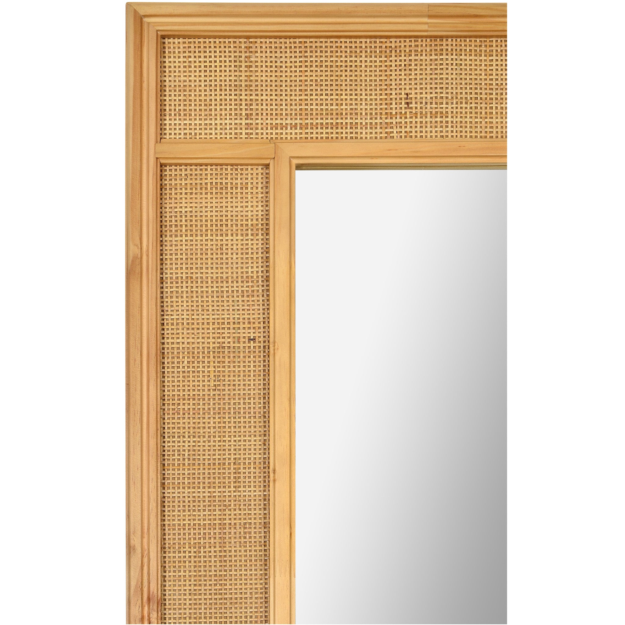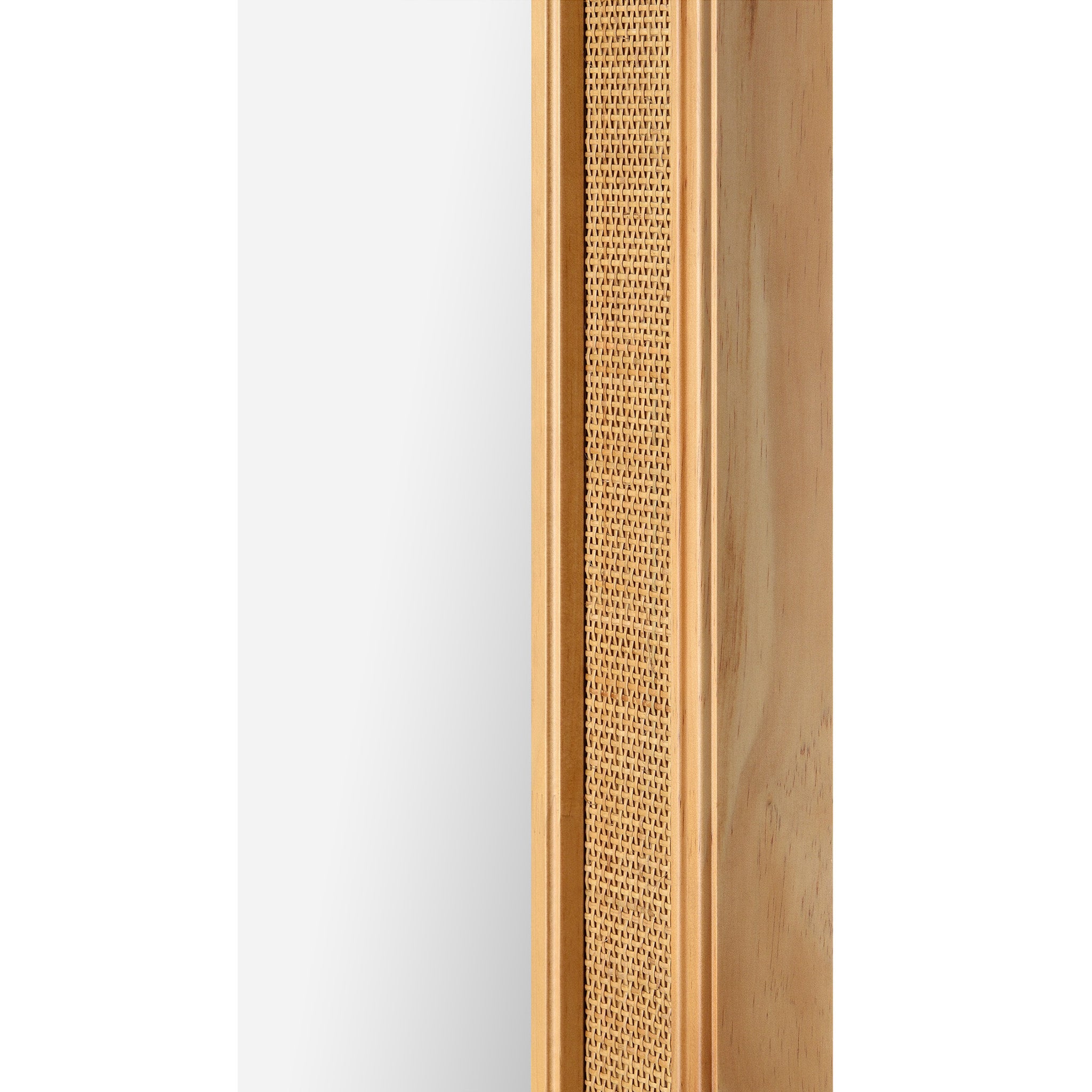 Le miroir Wise présente un cadre en pin et des détails en rotin, mettant en valeur la beauté naturelle des éléments organiques. Avec une largeur de 81 cm et une hauteur de 198 cm, il s'étend jusqu'à la longueur lorsqu'il est placé verticalement, mais offre également une envergure suffisante pour être posé au-dessus d'un canapé ou d'une table de salle à manger lorsqu'il est placé horizontalement.