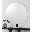 Les angles arrondis du miroir Hatley créent un effet chaleureux. Qu'il soit accroché au mur ou posé sur une surface, sa largeur de 101 cm et sa hauteur de 89 cm confèrent un charme généreux à n'importe quelle pièce. Sans cadre, il s'intègre harmonieusement à l'espace et fait sensation au besoin.