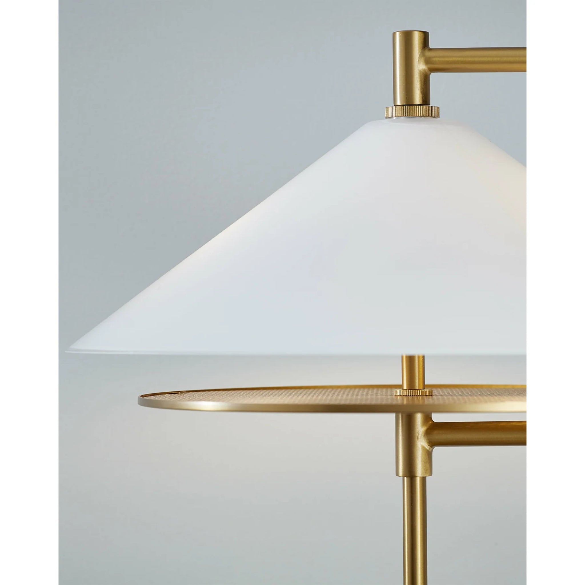 Une version dramatique et architecturale de l'utilisation caractéristique de Kelly de métaux mélangés et de formes géométriques, Gesture donne l'apparence d'un équilibre asymétrique. Ces suspensions raffinées et audacieuses juxtaposent des courbes féminines organiques avec une précision masculine élégante. Le crochet du bras en « C » maintient un abat-jour en verre opale avec un diffuseur en métal perforé à la base de la lampe. Le diffuseur diffuse la lumière directement vers le bas, assurant une répartition douce et uniforme de la lumière.