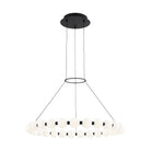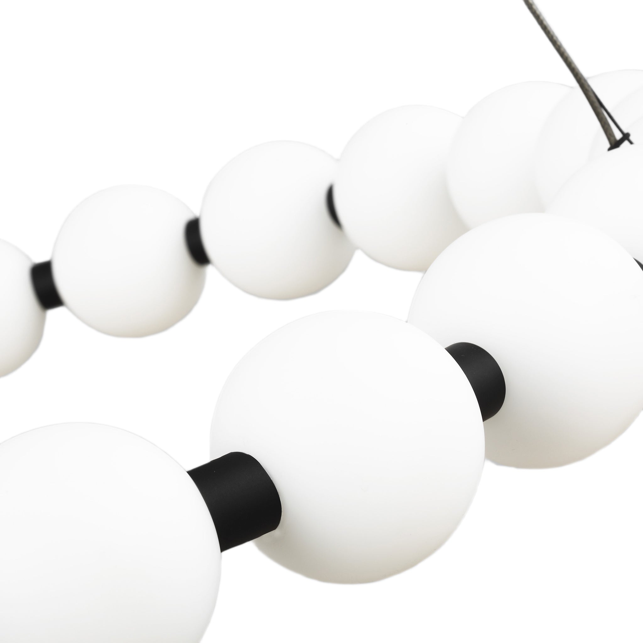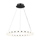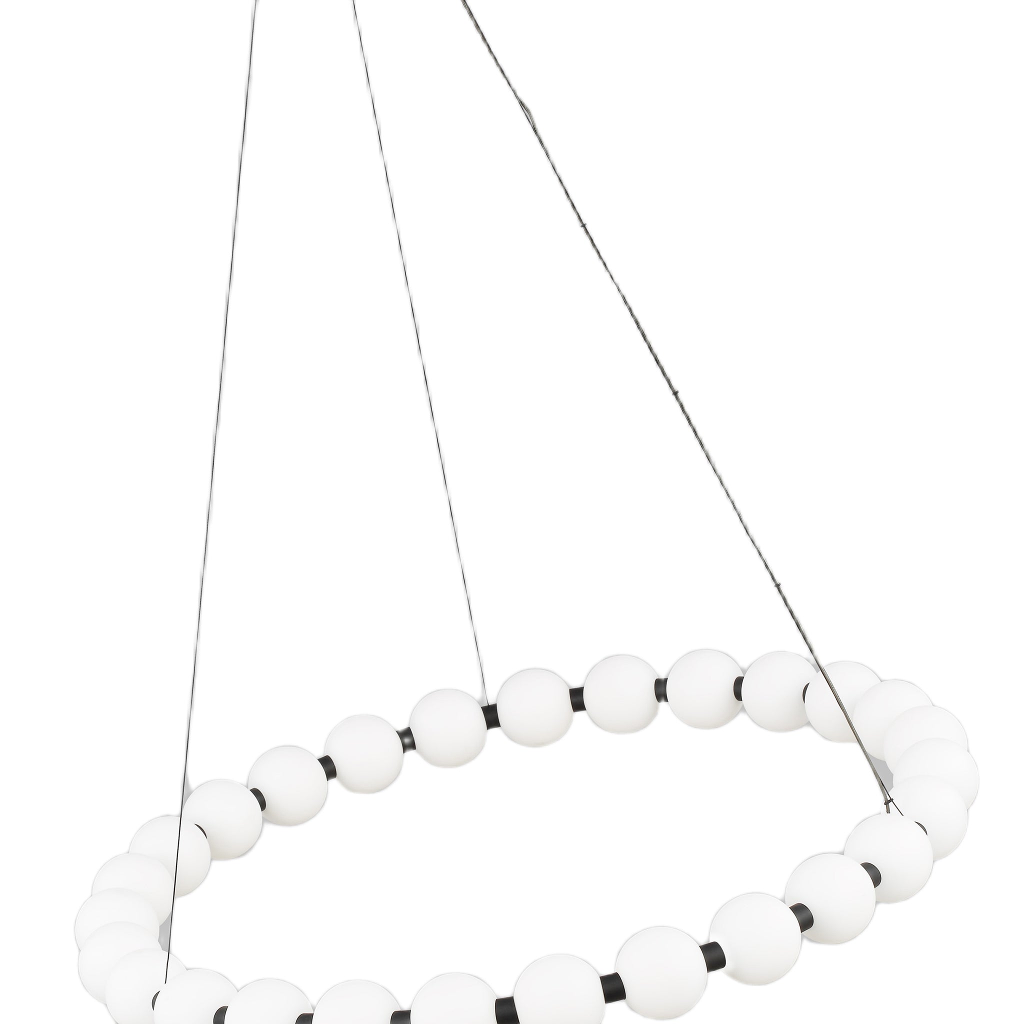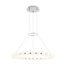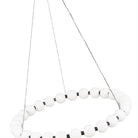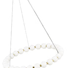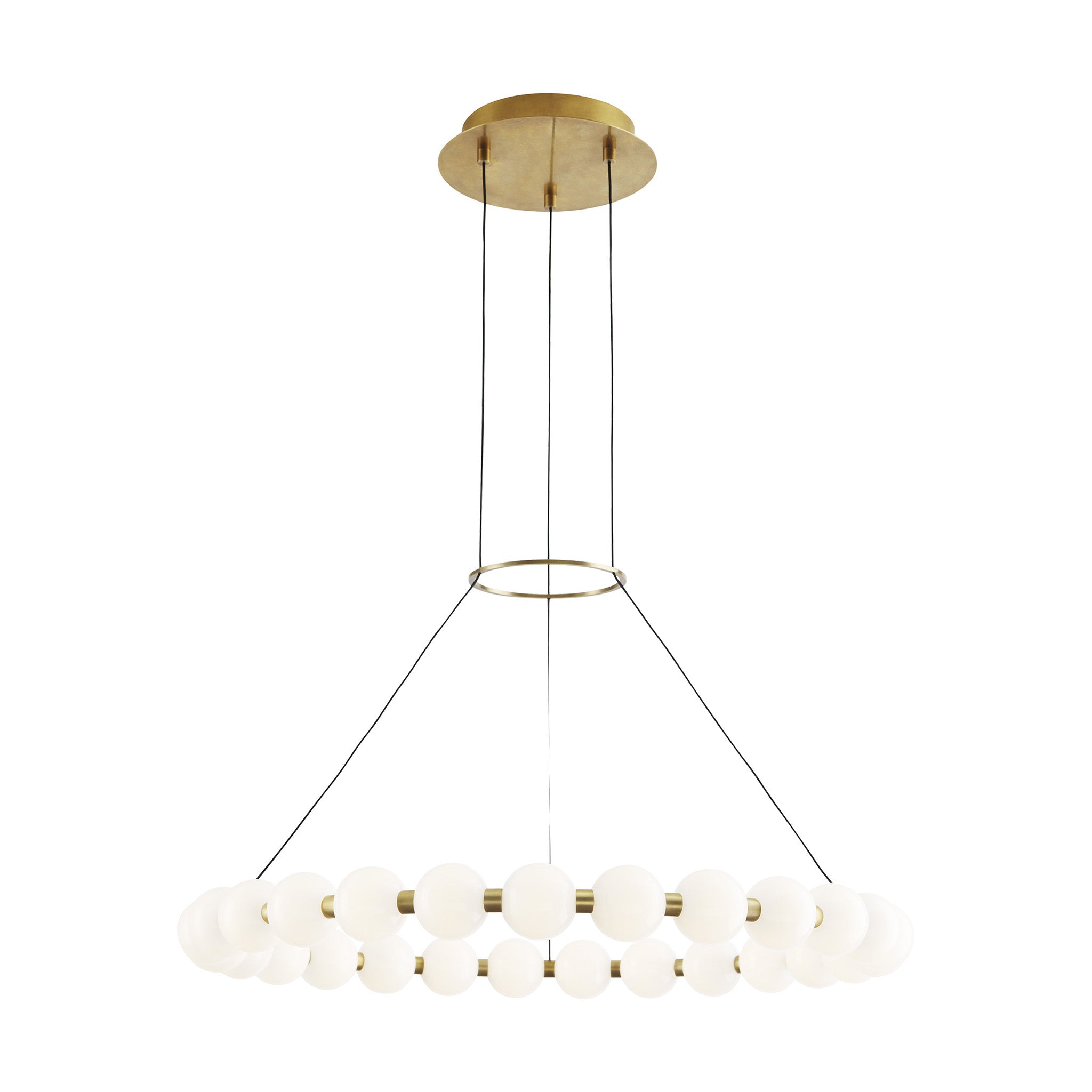 The Orbet 30 Chandelier by Sean Lavin is a modern upgrade to the classic ring design. Milk-glass orbs provide a soft diffused aesthetic for the integrated LEDs and are accented with metal spacers for a touch of contrast. This fixture is the perfect design for dining room, foyers, hospitality and more.