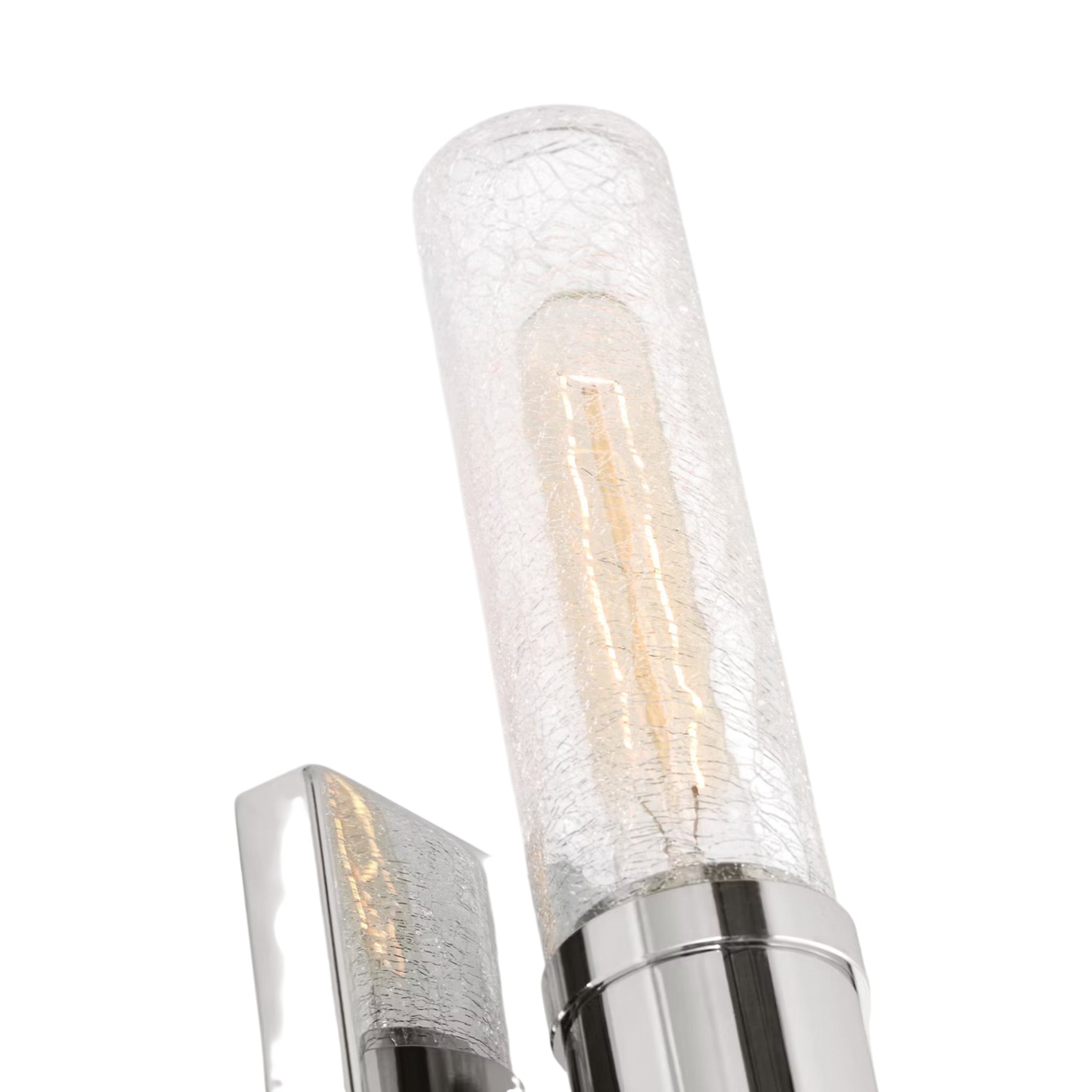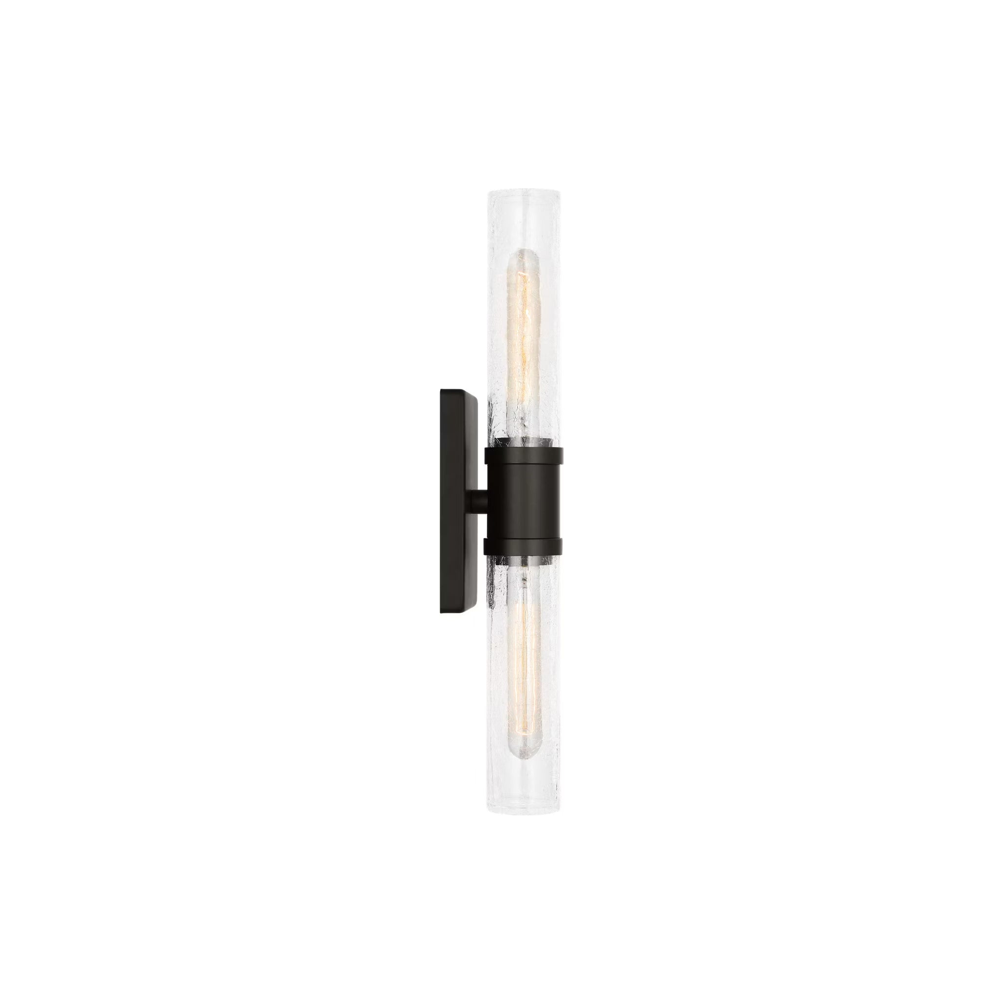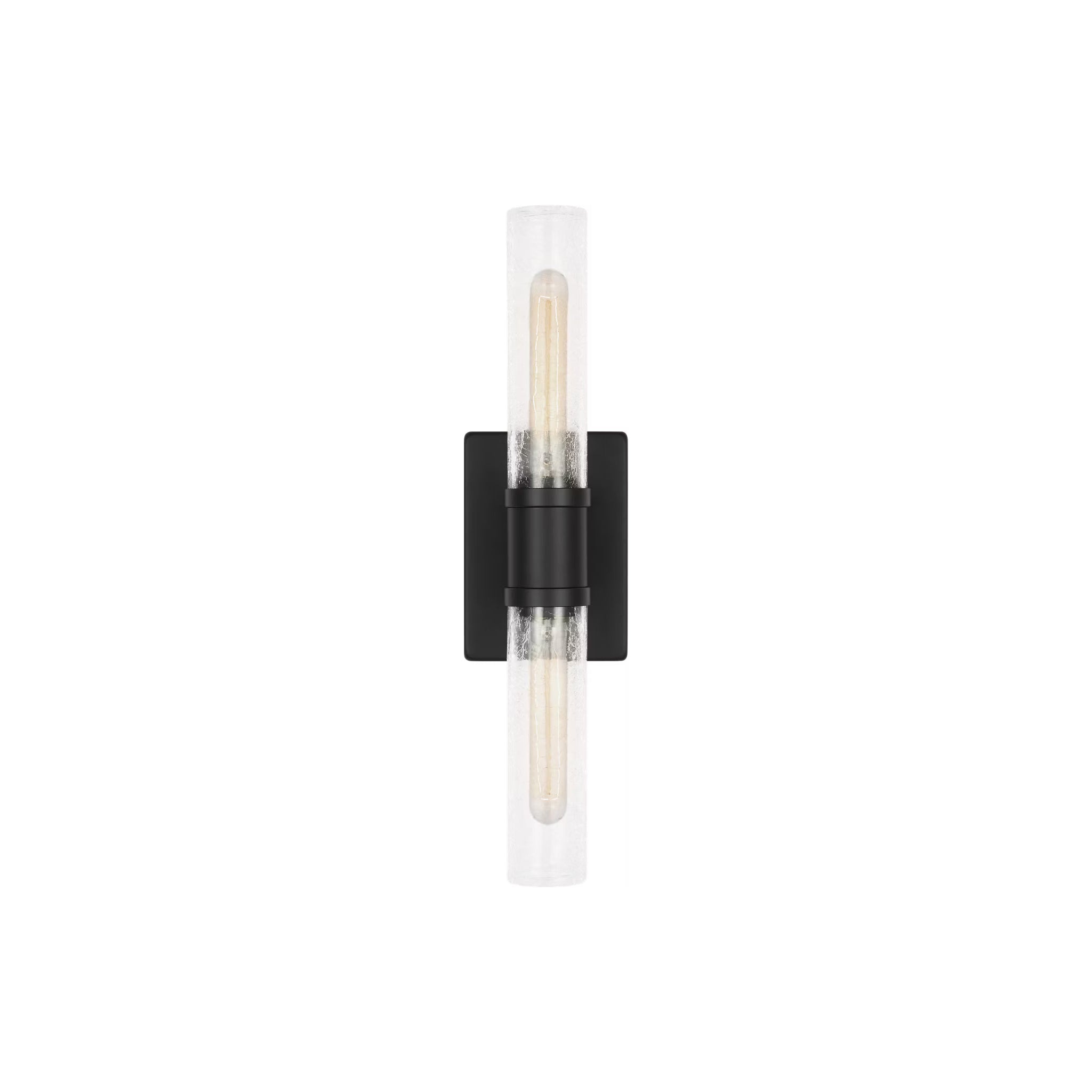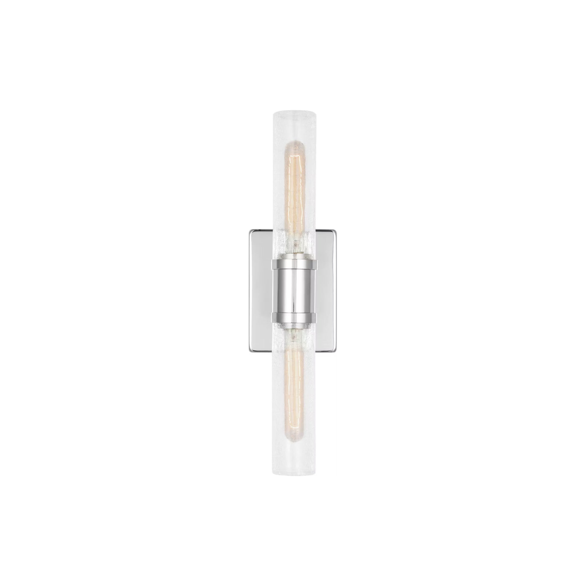 Sleek and modern, this 2-Light bath series pairs a square backplate with tubular clear crackle glass shade. The Keaton two light vanity fixture provides abundant light for your bath vanity, while adding a layer of today's style to your interior design.