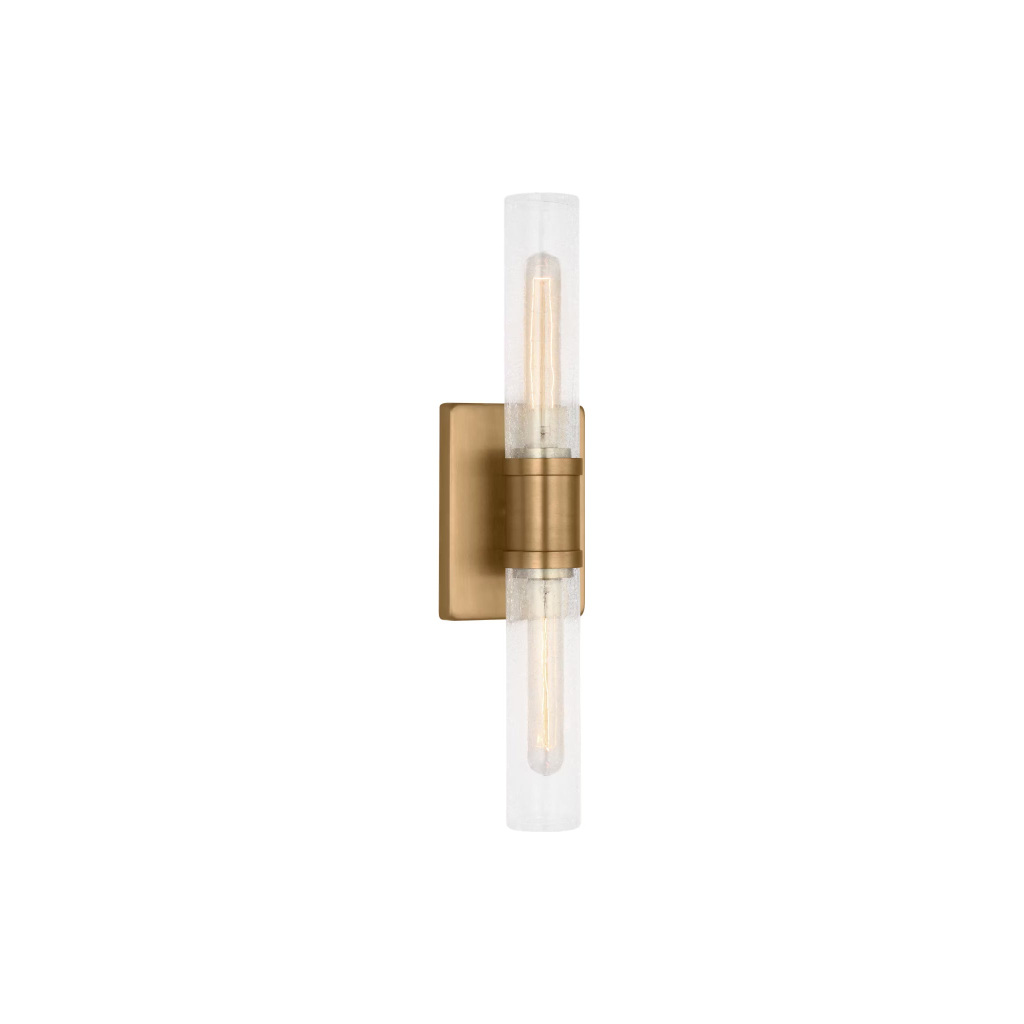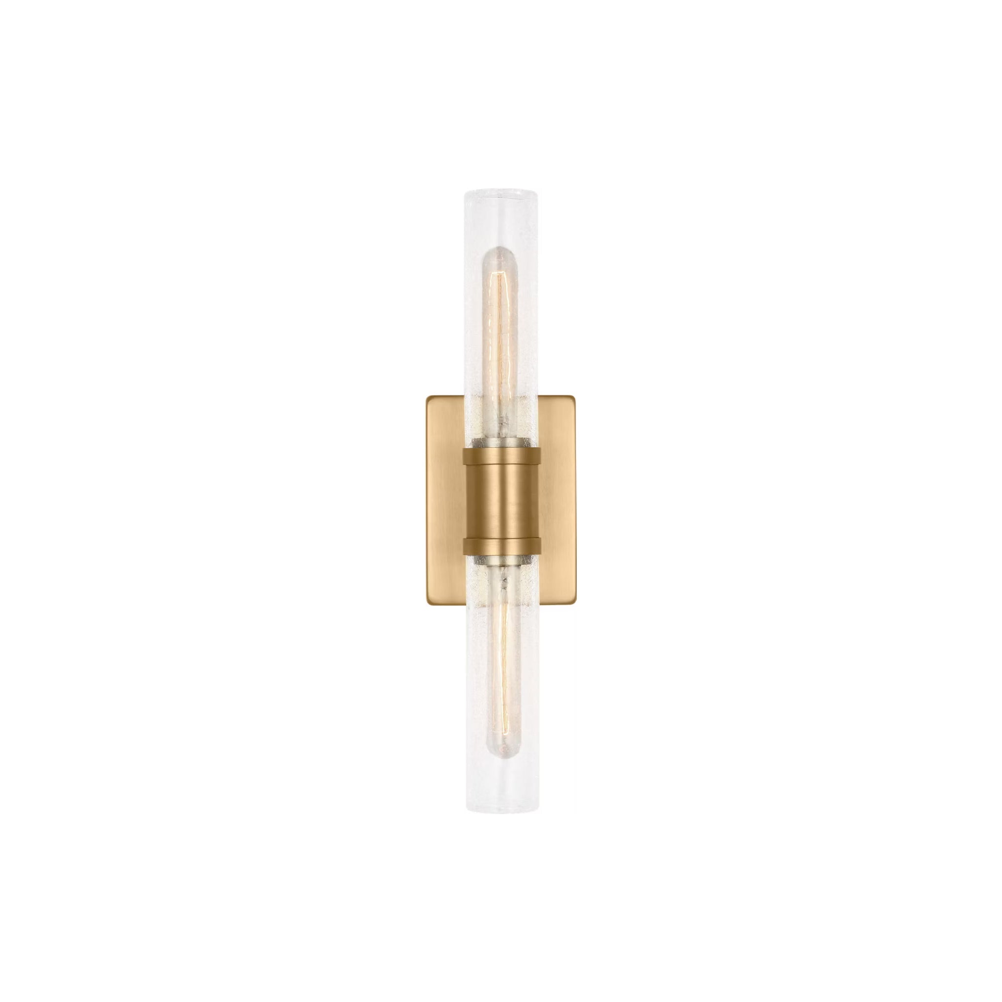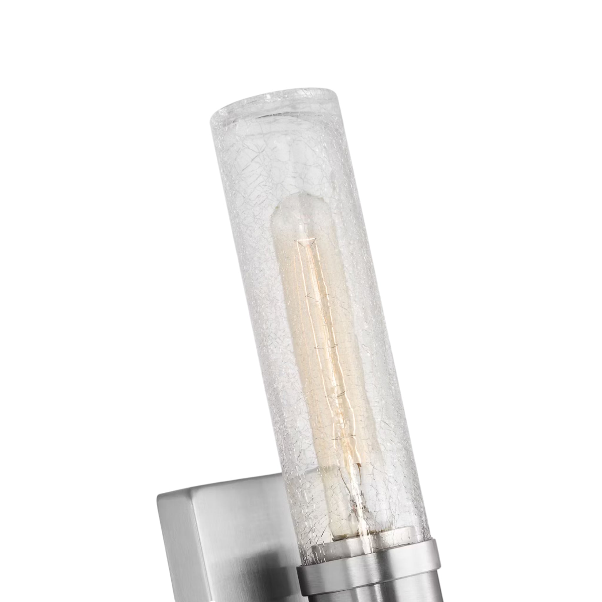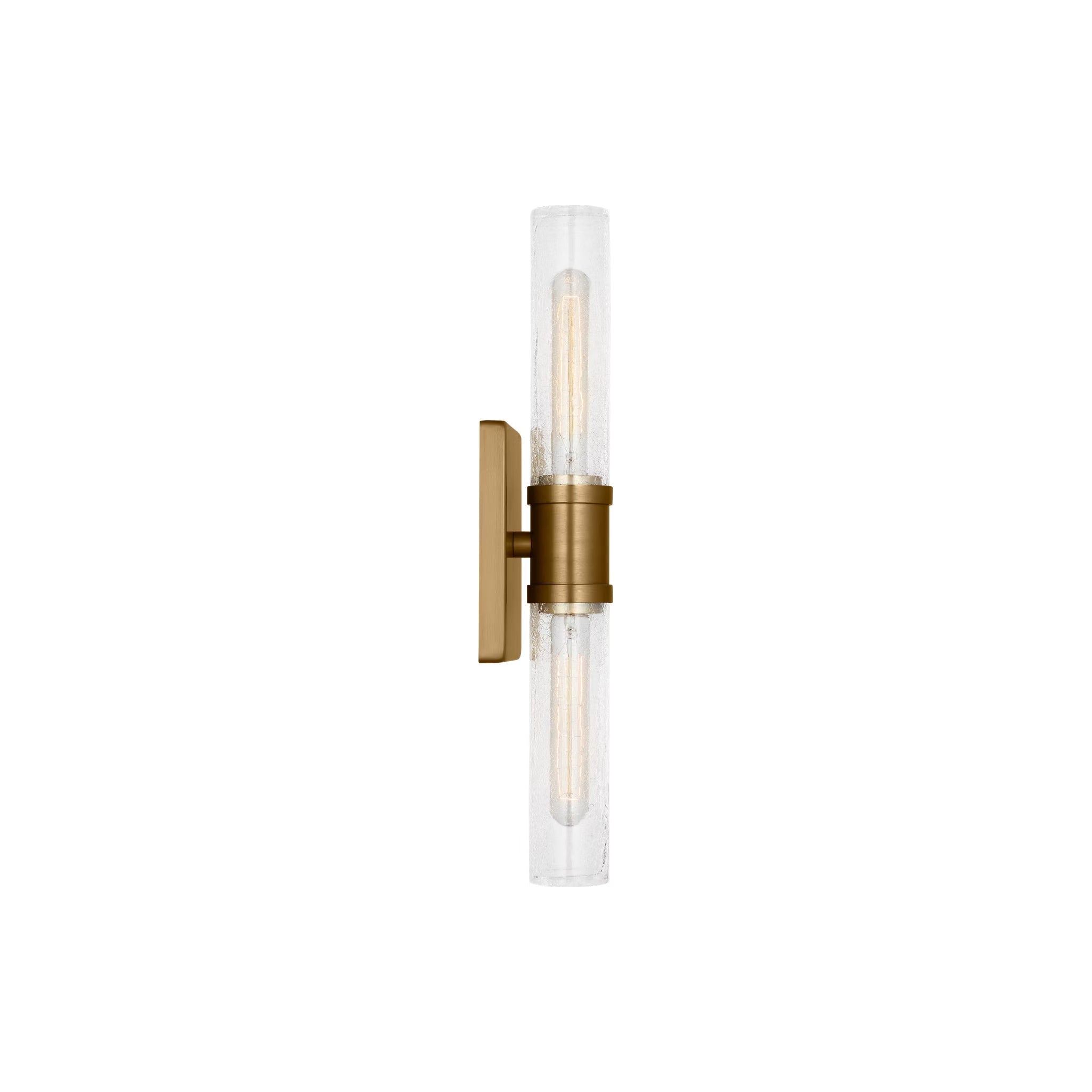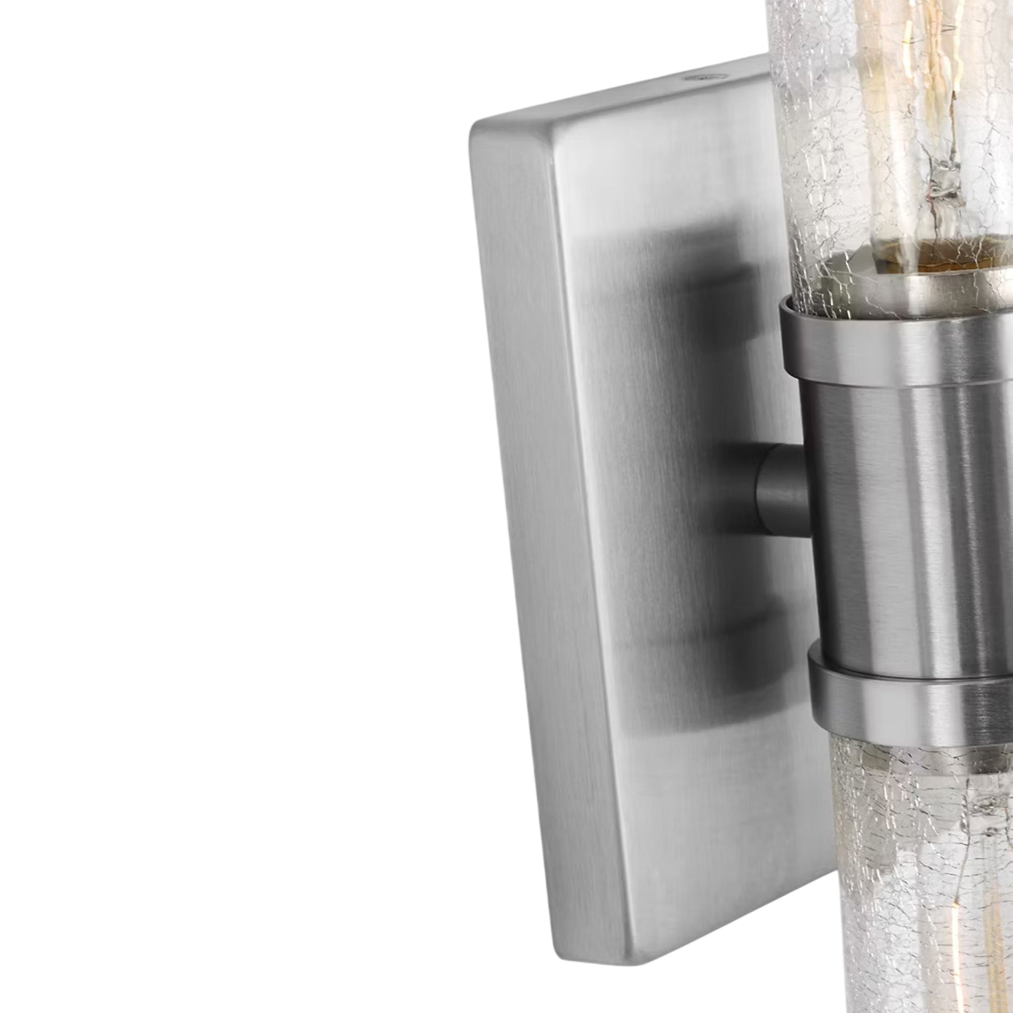 Sleek and modern, this 2-Light bath series pairs a square backplate with tubular clear crackle glass shade. The Keaton two light vanity fixture provides abundant light for your bath vanity, while adding a layer of today's style to your interior design.