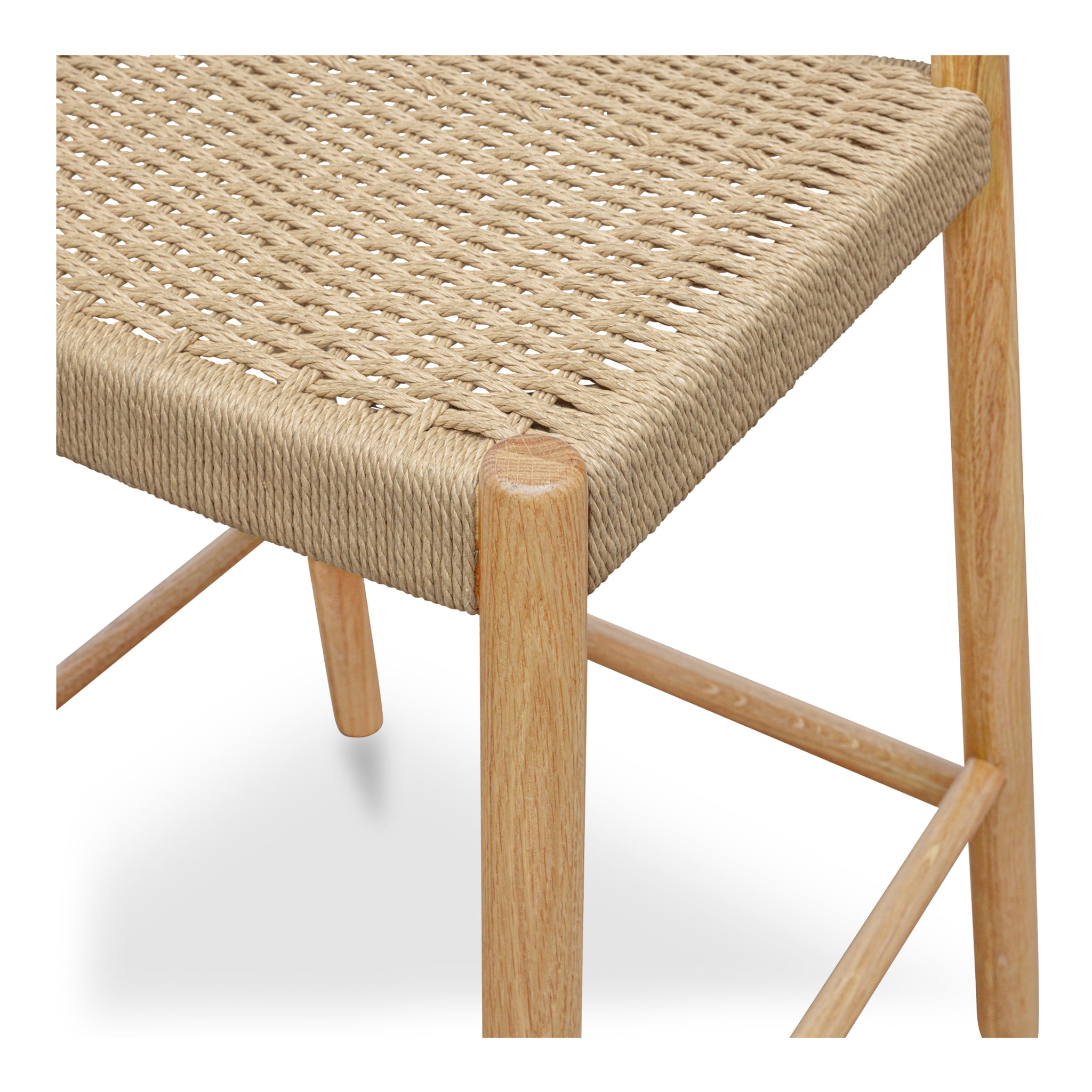 Le tabouret de bar Audrina rend hommage au passé avec son assise classique en corde de papier et ses détails raffinés enrobés de cannage, tandis que son dossier légèrement arqué et son repose-pieds apportent une touche de fraîcheur et de modernité. Sa construction en chêne massif complète son esthétique, apportant chaleur et sophistication.