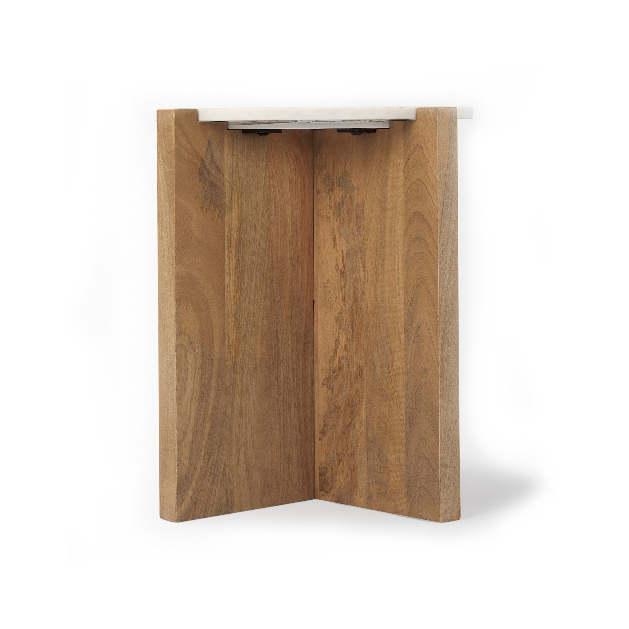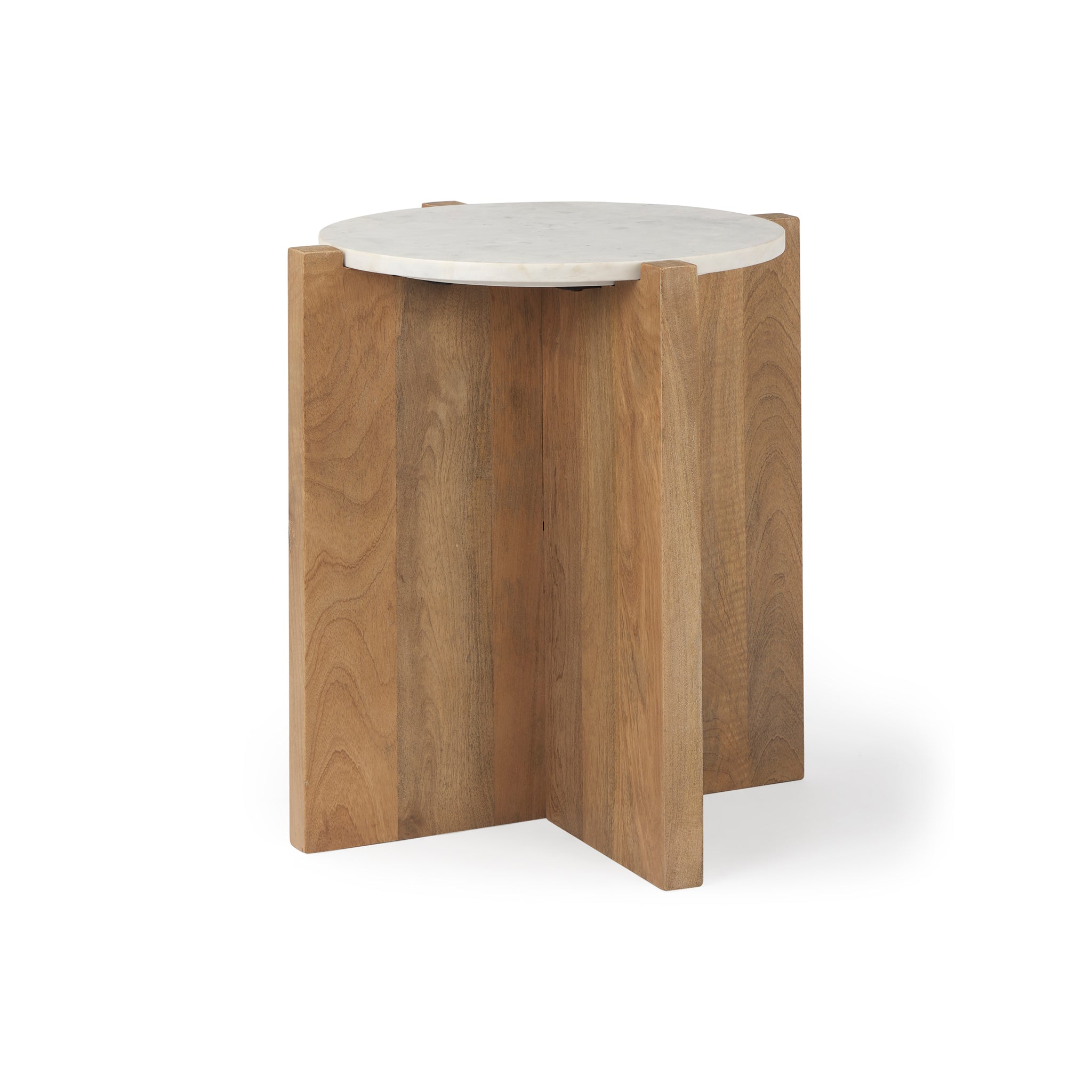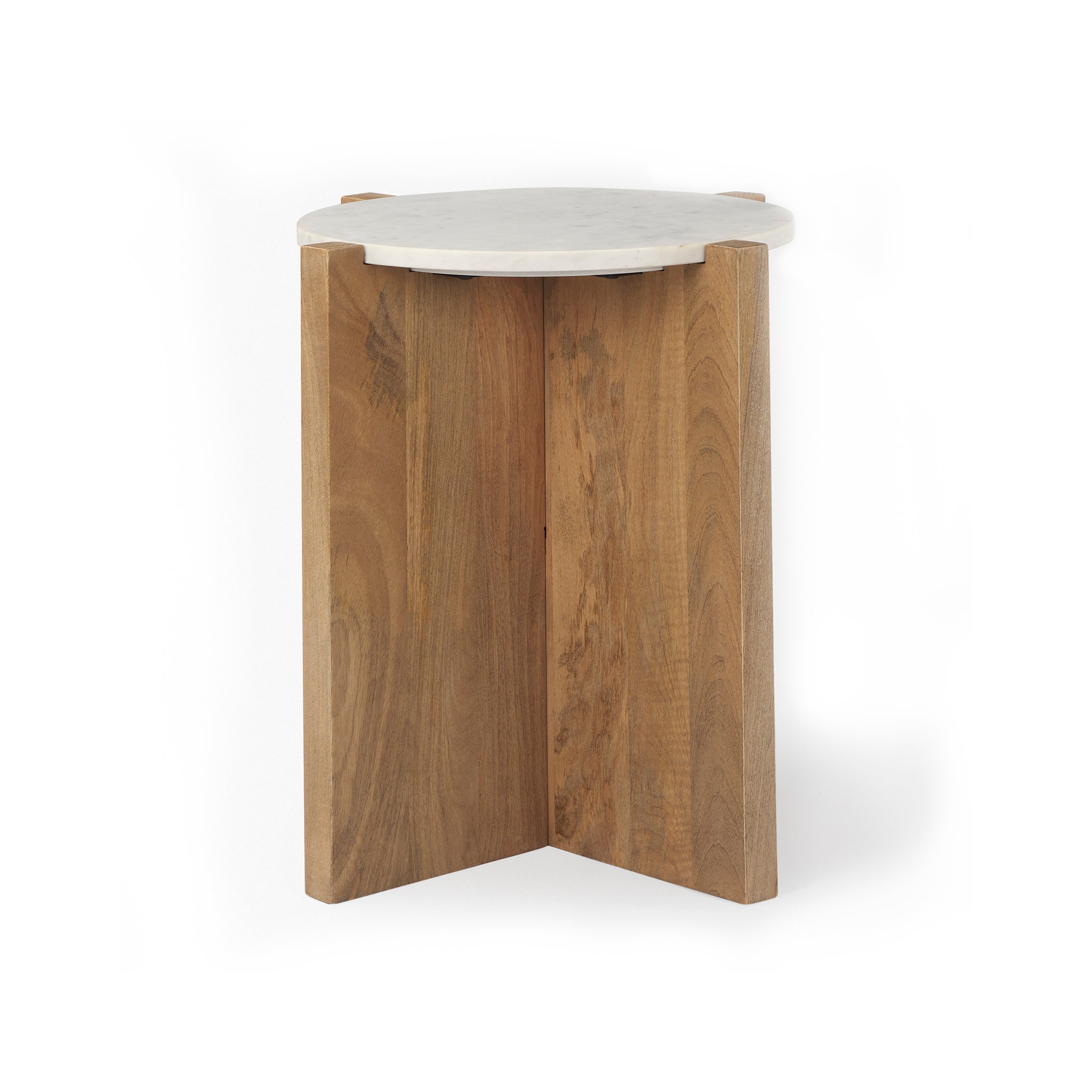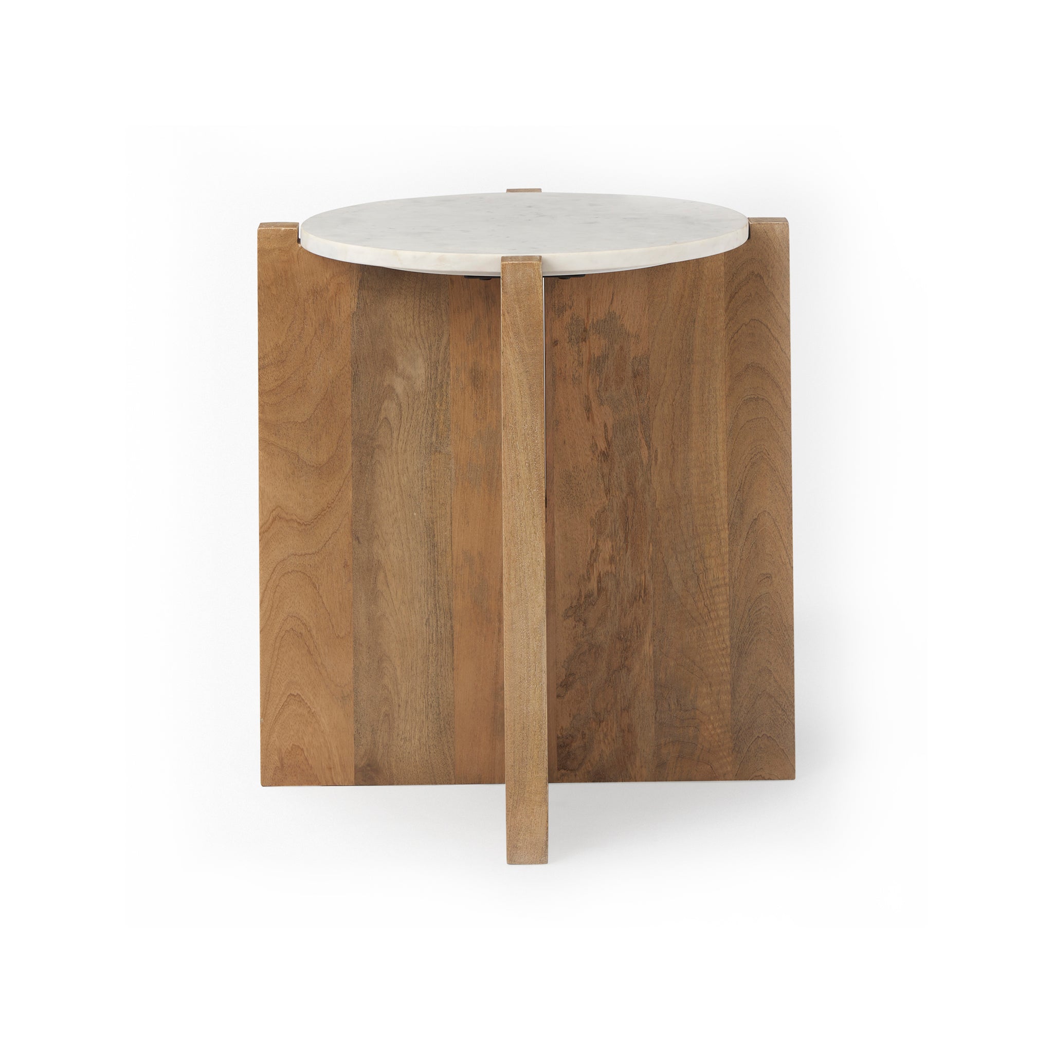 Chef-d'œuvre de design et œuvre d'art visuelle et texturée, la table d'appoint en bois et marbre de Bali est un meuble impressionnant. Sublime pièce de décoration contemporaine, cette superbe table d'appoint présente un piètement croisé unique en manguier massif, surmonté d'un disque rond en marbre fin. Le veinage naturel du bois, associé à la couleur mouchetée du marbre, crée un contraste saisissant, rendant cette table géométrique encore plus attrayante. Installez-la dans votre salon, entrée, bureau ou chambre moderne pour une beauté intemporelle.