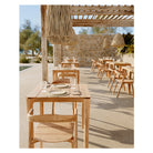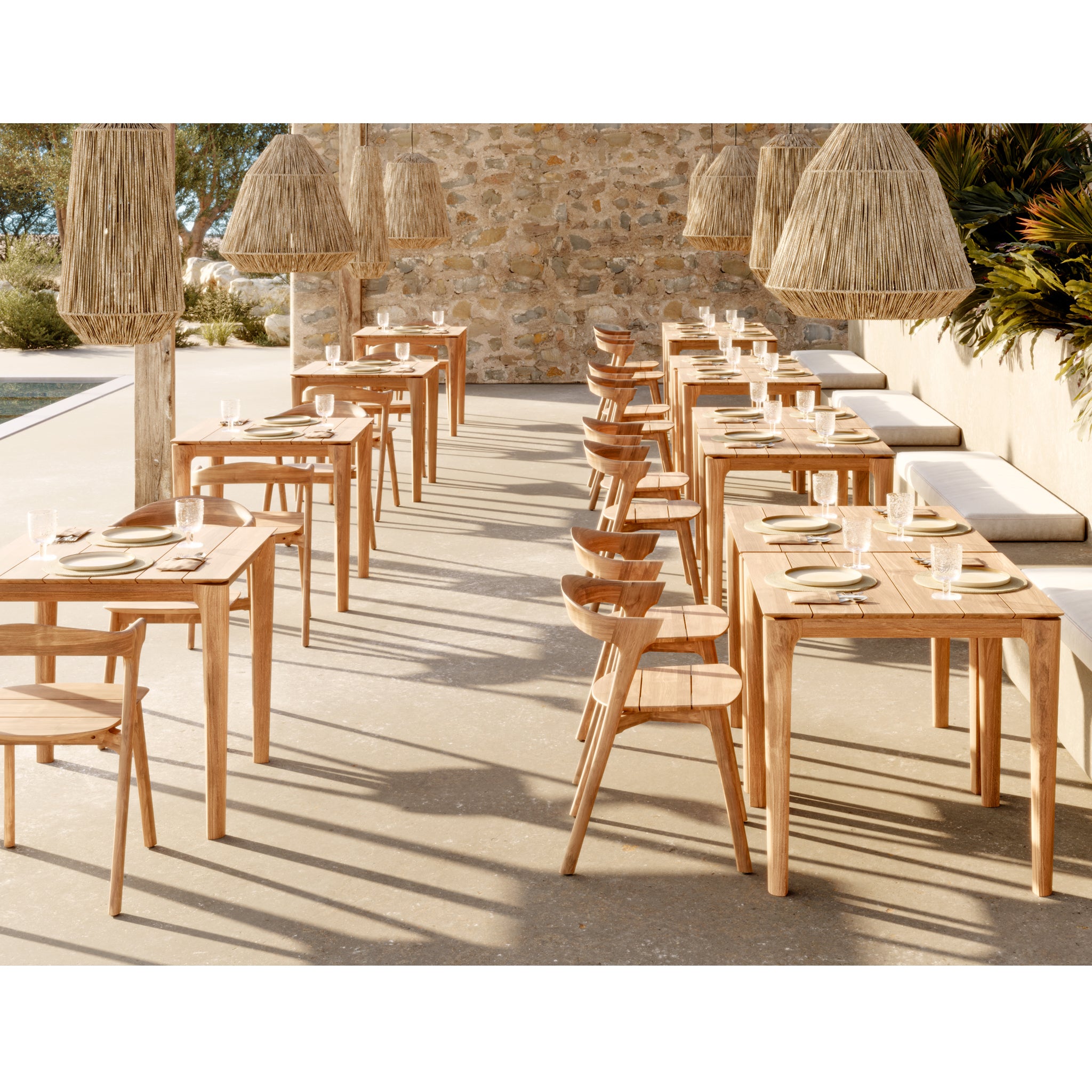 Rappelant les cornes courbées d'une chèvre, la collection Bok allie élégance sculpturale et savoir-faire contemporain pour créer une forme gracieuse et aérienne. Tout comme sa chaise assortie, la table à manger Bok est une autre création emblématique. Sa forme aérienne et sa construction robuste en font un meuble intemporel et remarquable dont vous pourrez profiter pendant des années. Son plateau rainuré en teck massif simplifie la vie en extérieur.
