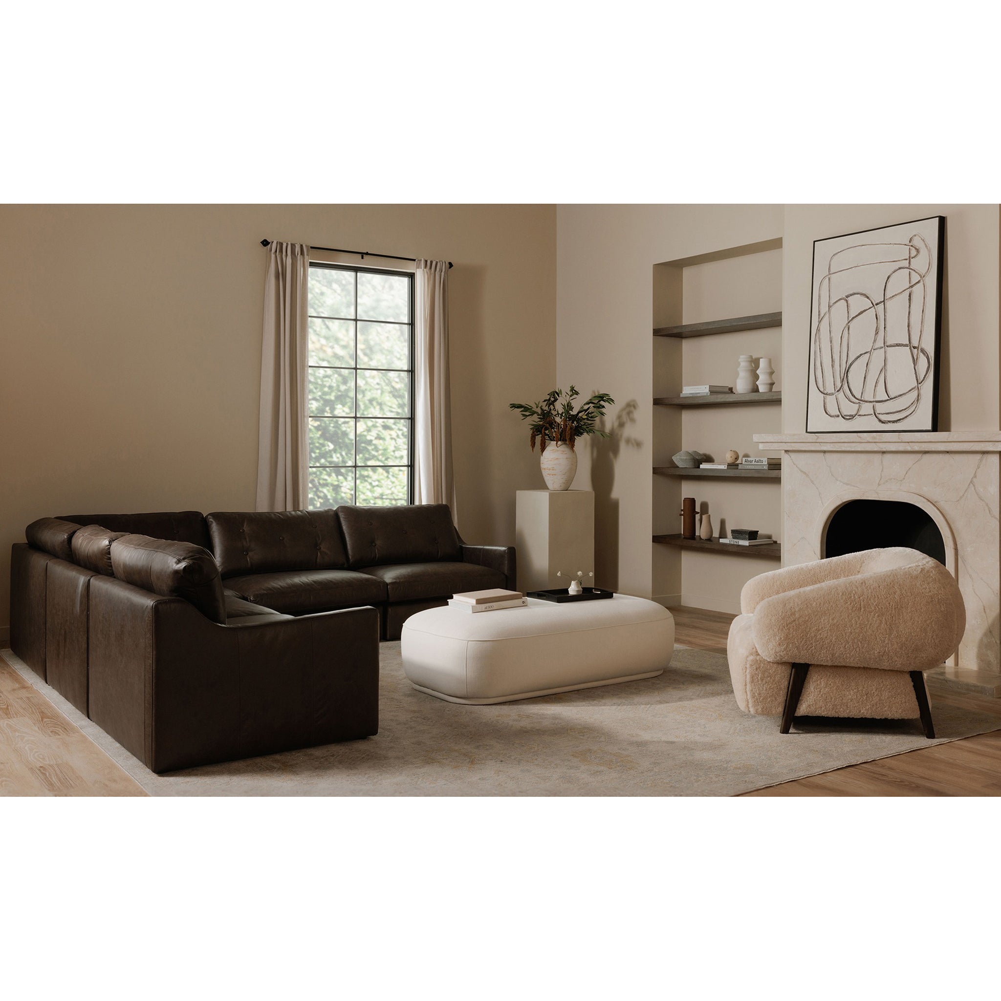 Le fauteuil Casey redéfinit le confort avec son assise surdimensionnée et son design moelleux, reposant sur des pieds en frêne massif pour un style moderne et épuré. Sa silhouette unique, profonde et accueillante, allie une base carrée à des formes courbes et un revêtement blanc cassé.
