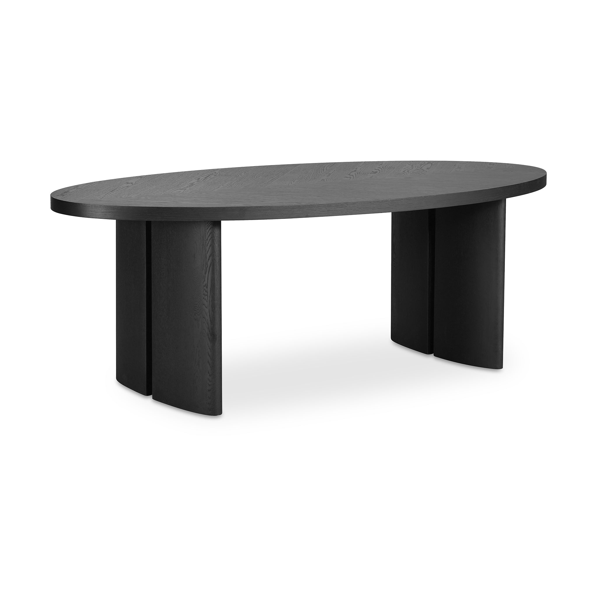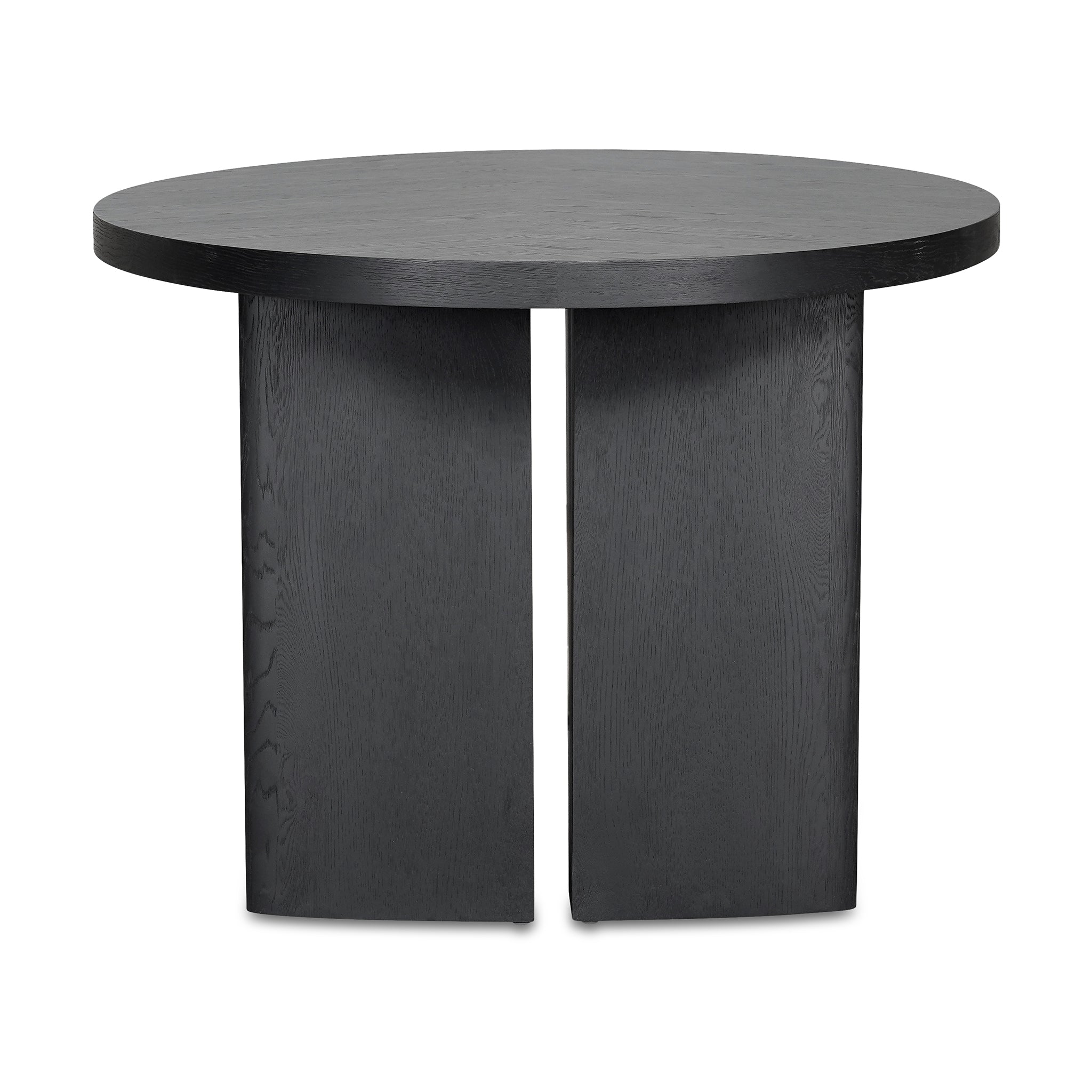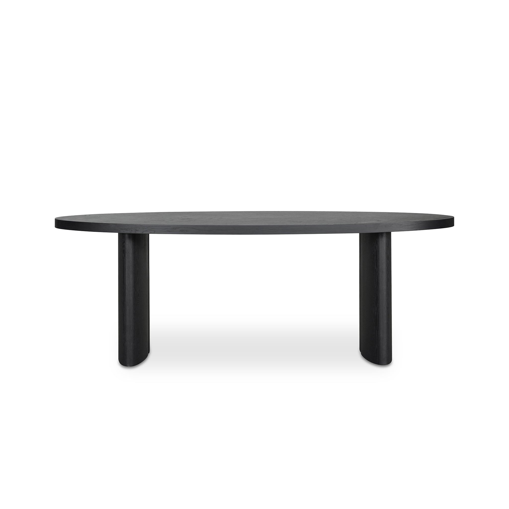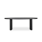 La table à manger Jeremiah présente une silhouette contemporaine avec un piètement aux bords arrondis et un plateau au motif chevrons magnifiquement détaillé. La finition teintée noire apporte une touche de maturité, mettant en valeur le motif parqueté captivant des surfaces extérieures. Un plateau épais rehausse l'esthétique générale et souligne le motif rustique.