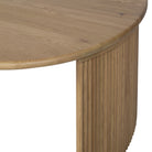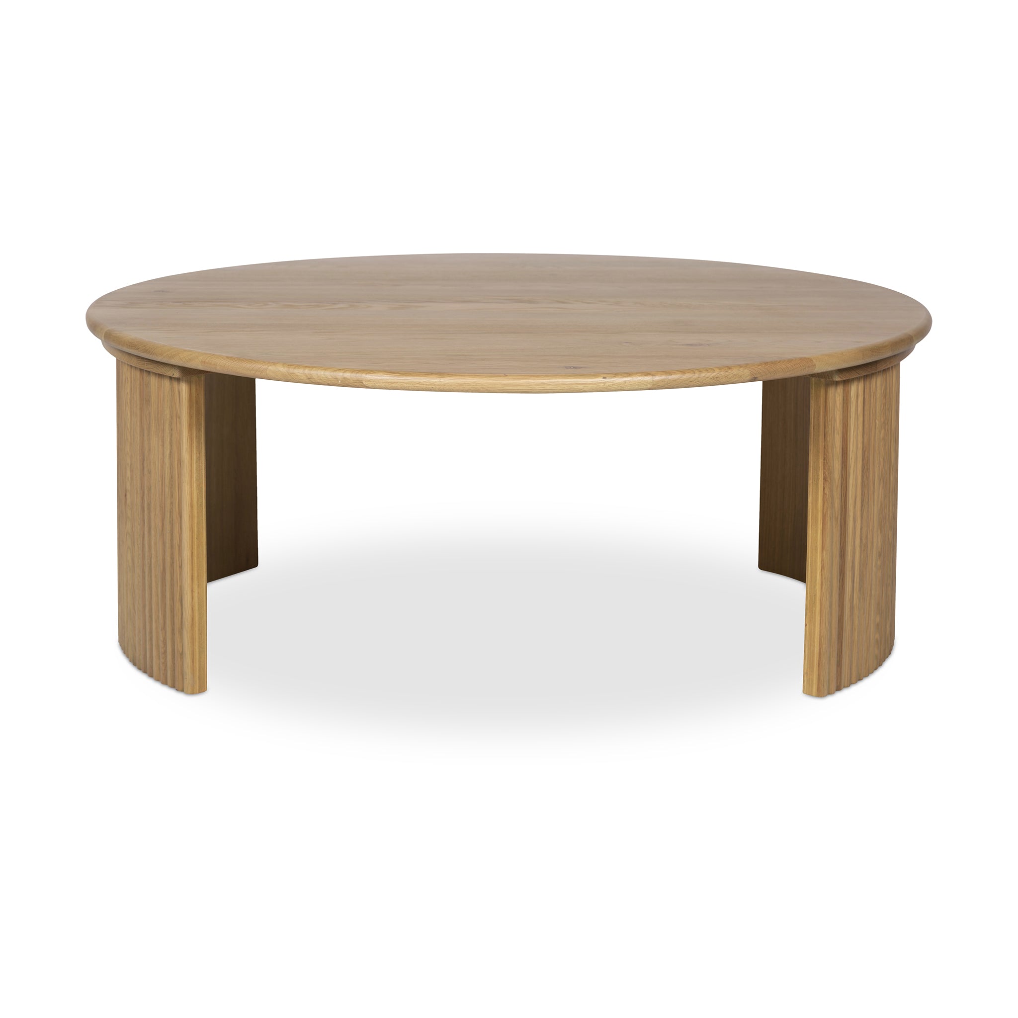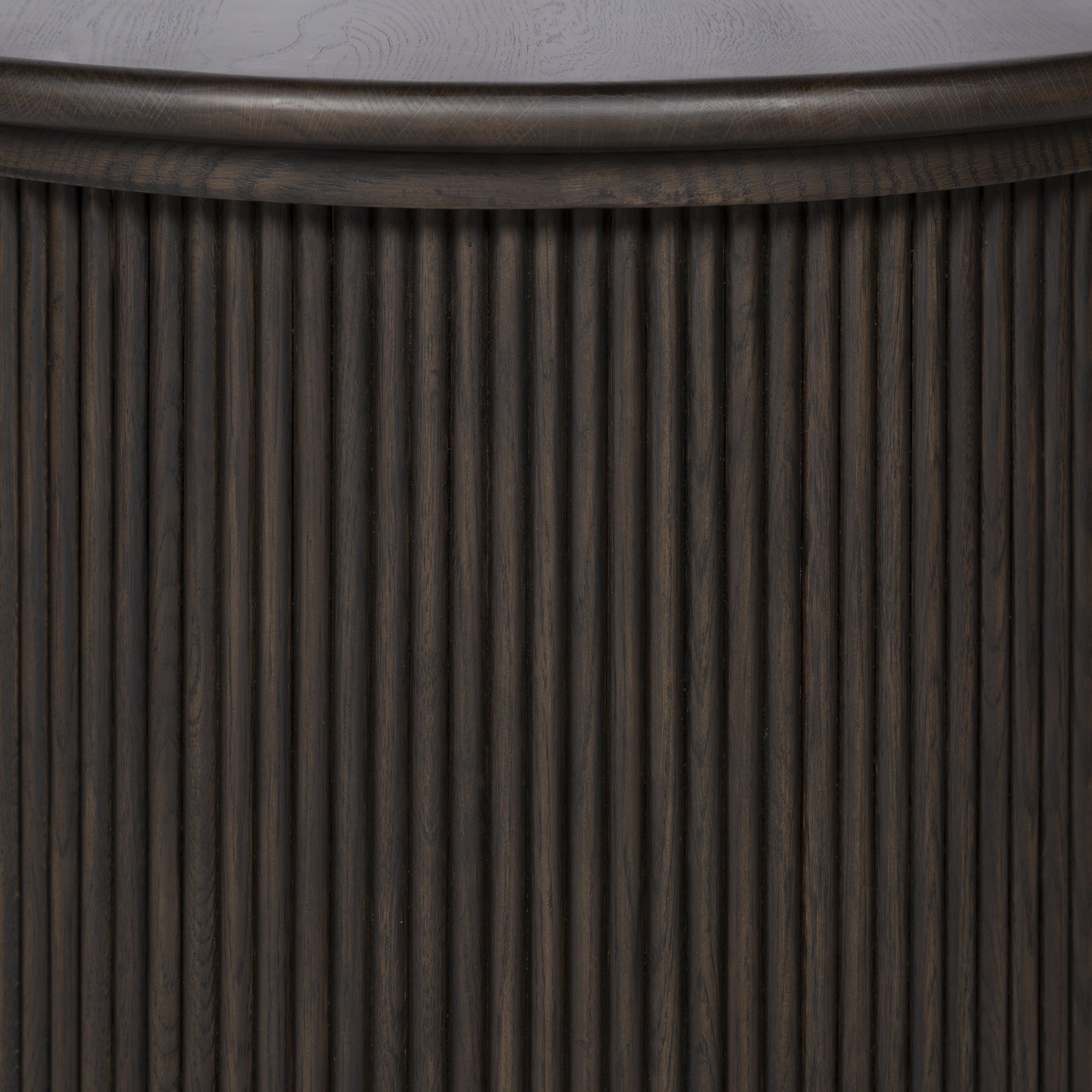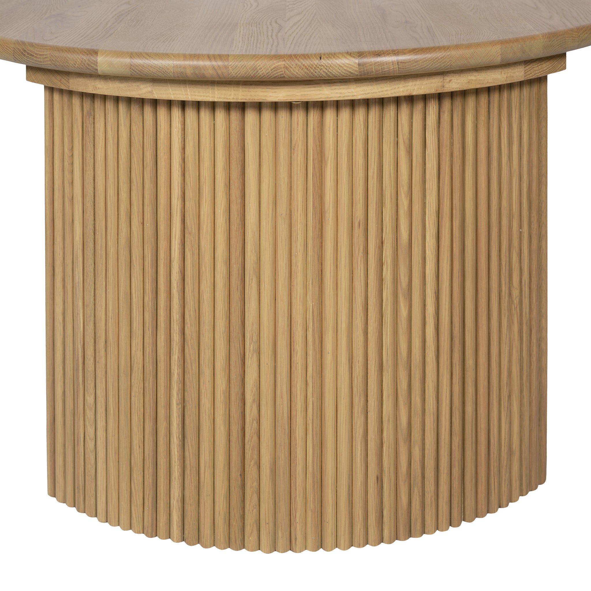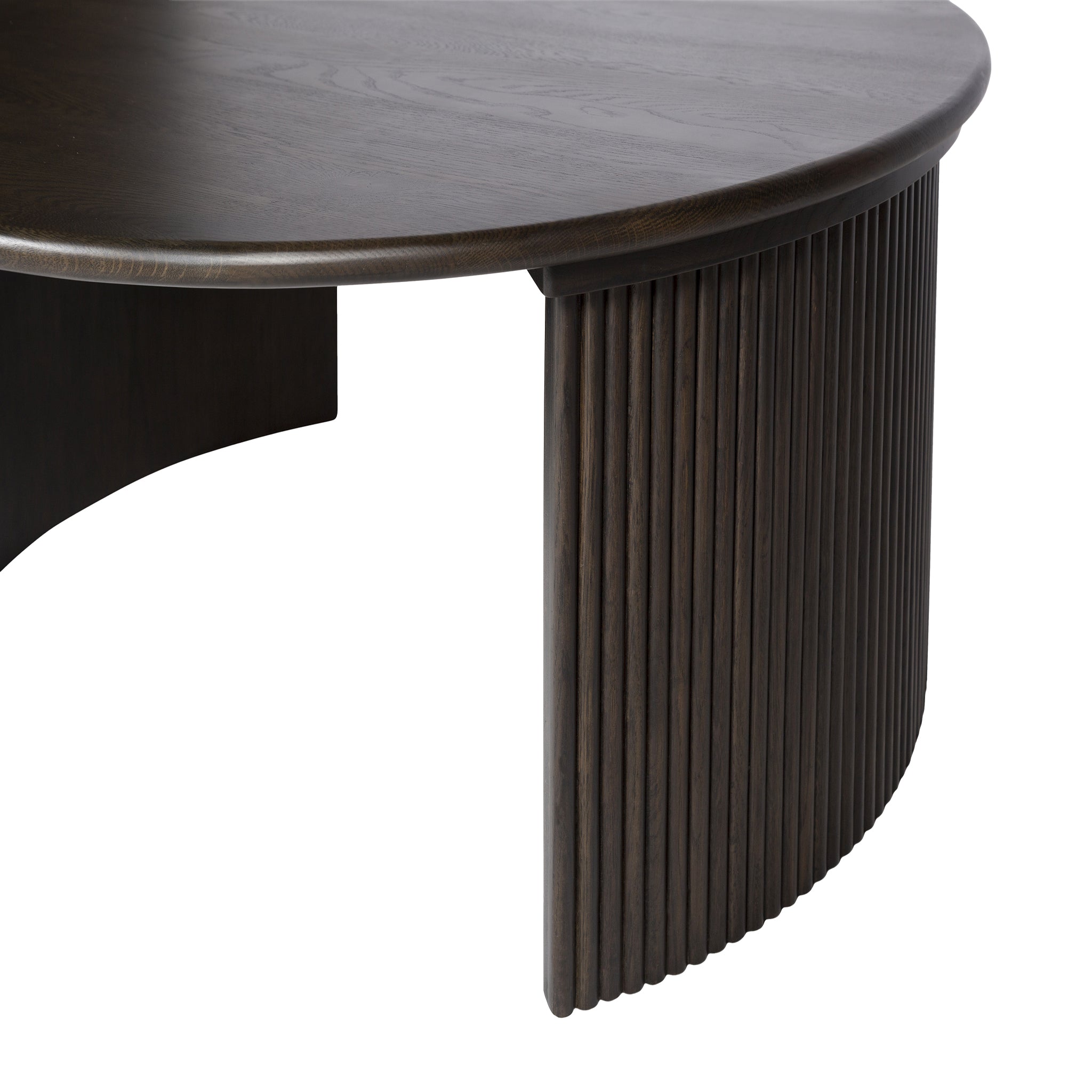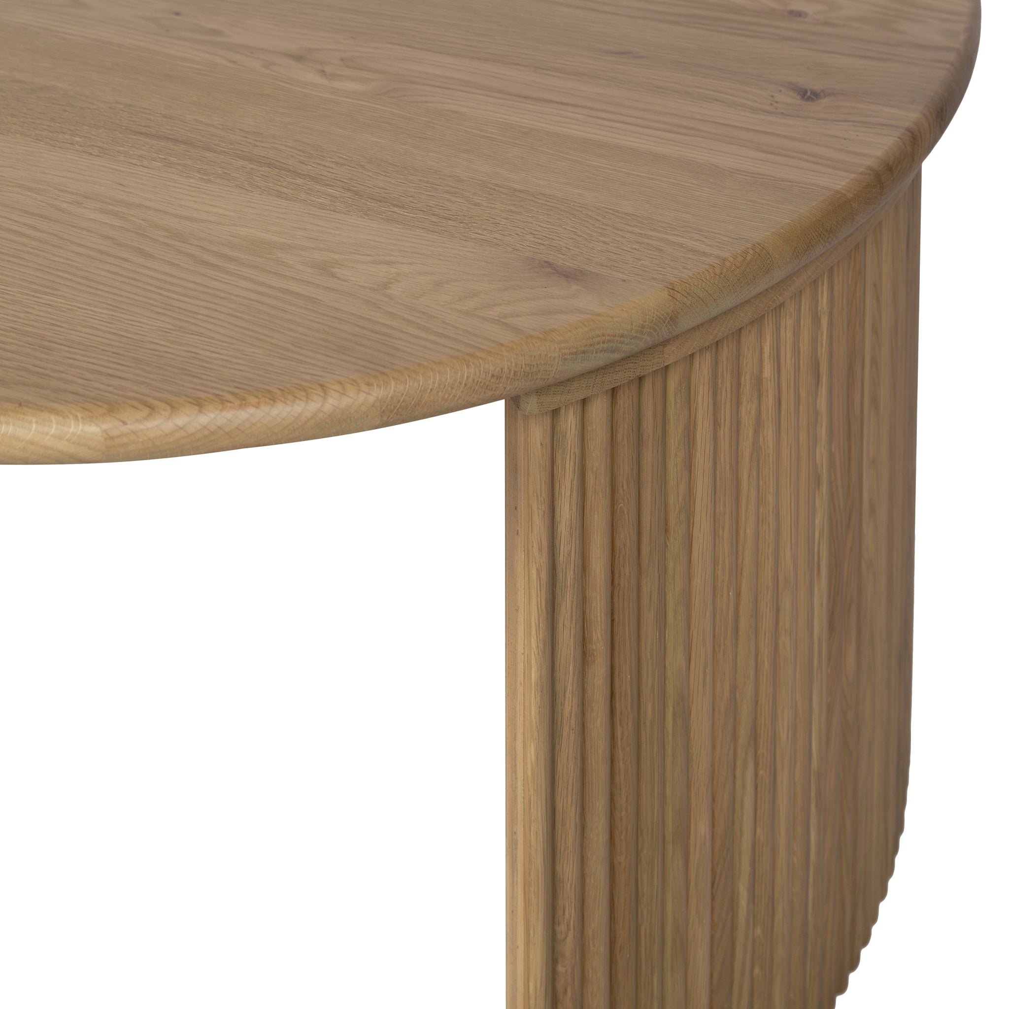 Le design gigogne de la table basse Jonathan met en valeur un plateau circulaire au bord arrondi raffiné, posé sur deux bases incurvées ornées de détails cannelés ludiques. Ces tables en chêne massif insufflent une touche visuelle dynamique, la petite table étant conçue pour s'emboîter parfaitement sous la grande, un mélange harmonieux de charme rustique et d'élégance contemporaine.