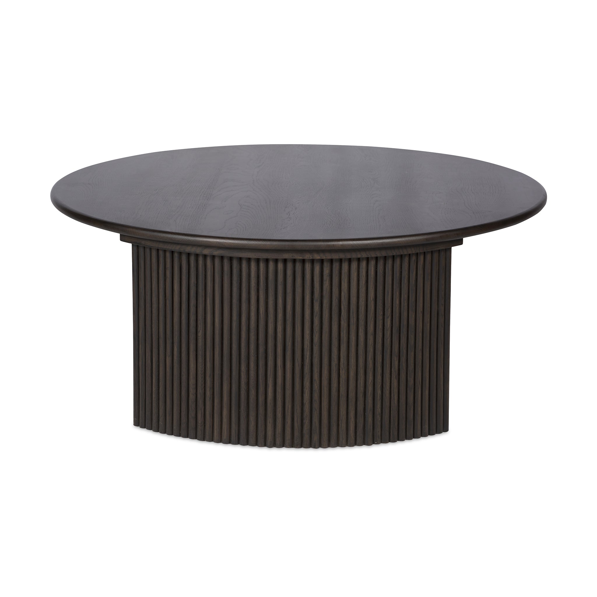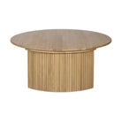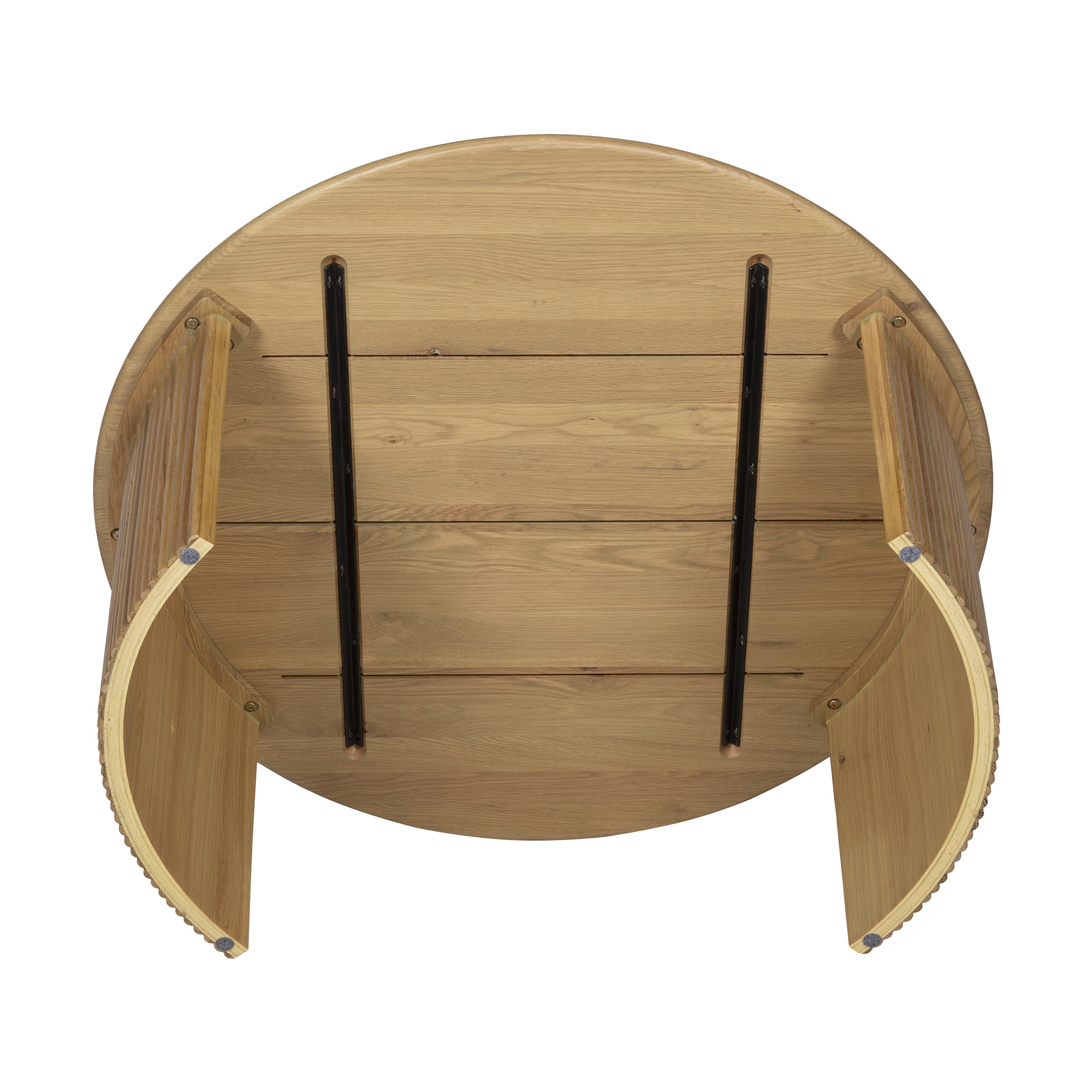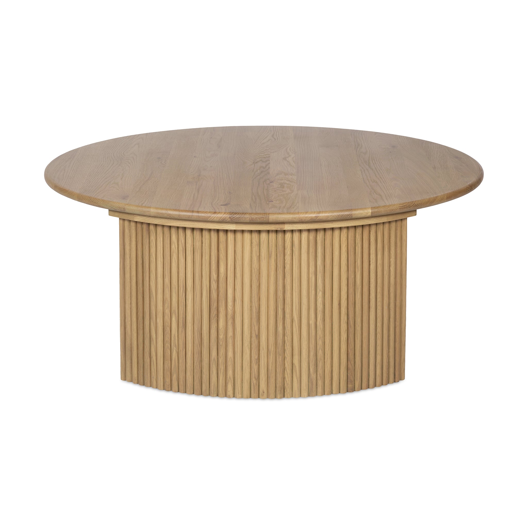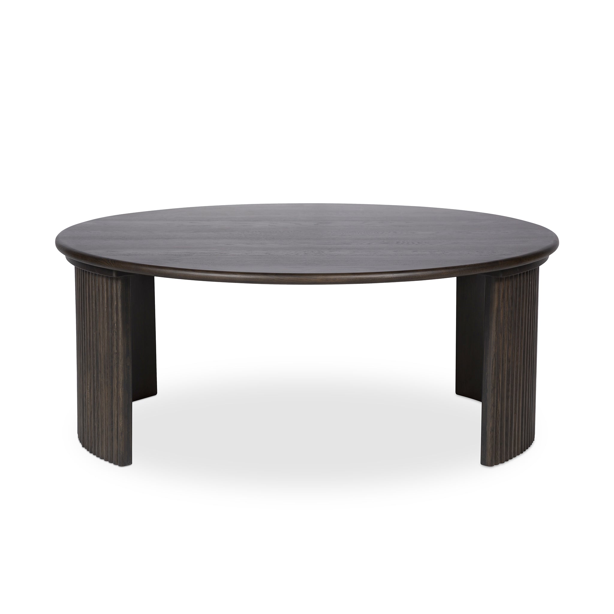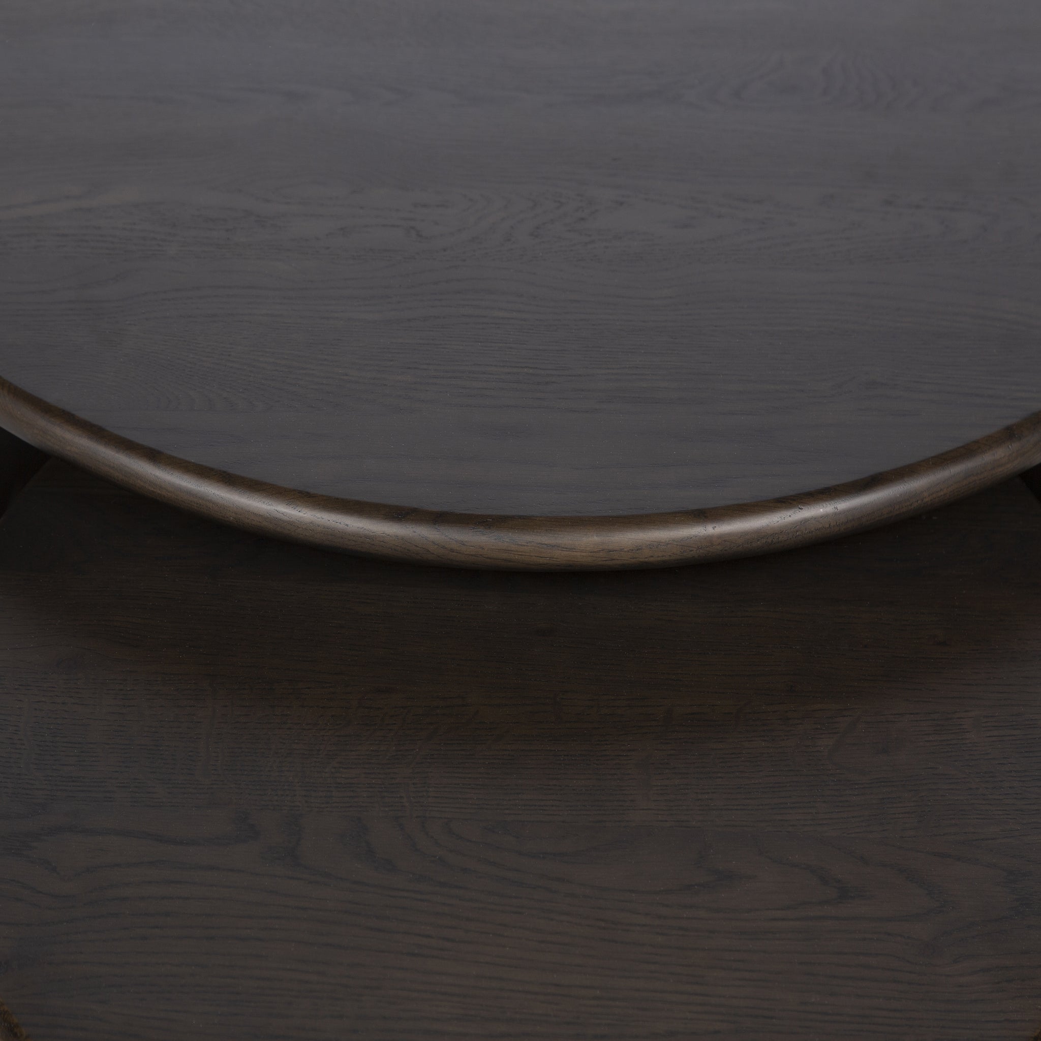 Le design gigogne de la table basse Jonathan met en valeur un plateau circulaire au bord arrondi raffiné, posé sur deux bases incurvées ornées de détails cannelés ludiques. Ces tables en chêne massif insufflent une touche visuelle dynamique, la petite table étant conçue pour s'emboîter parfaitement sous la grande, un mélange harmonieux de charme rustique et d'élégance contemporaine.