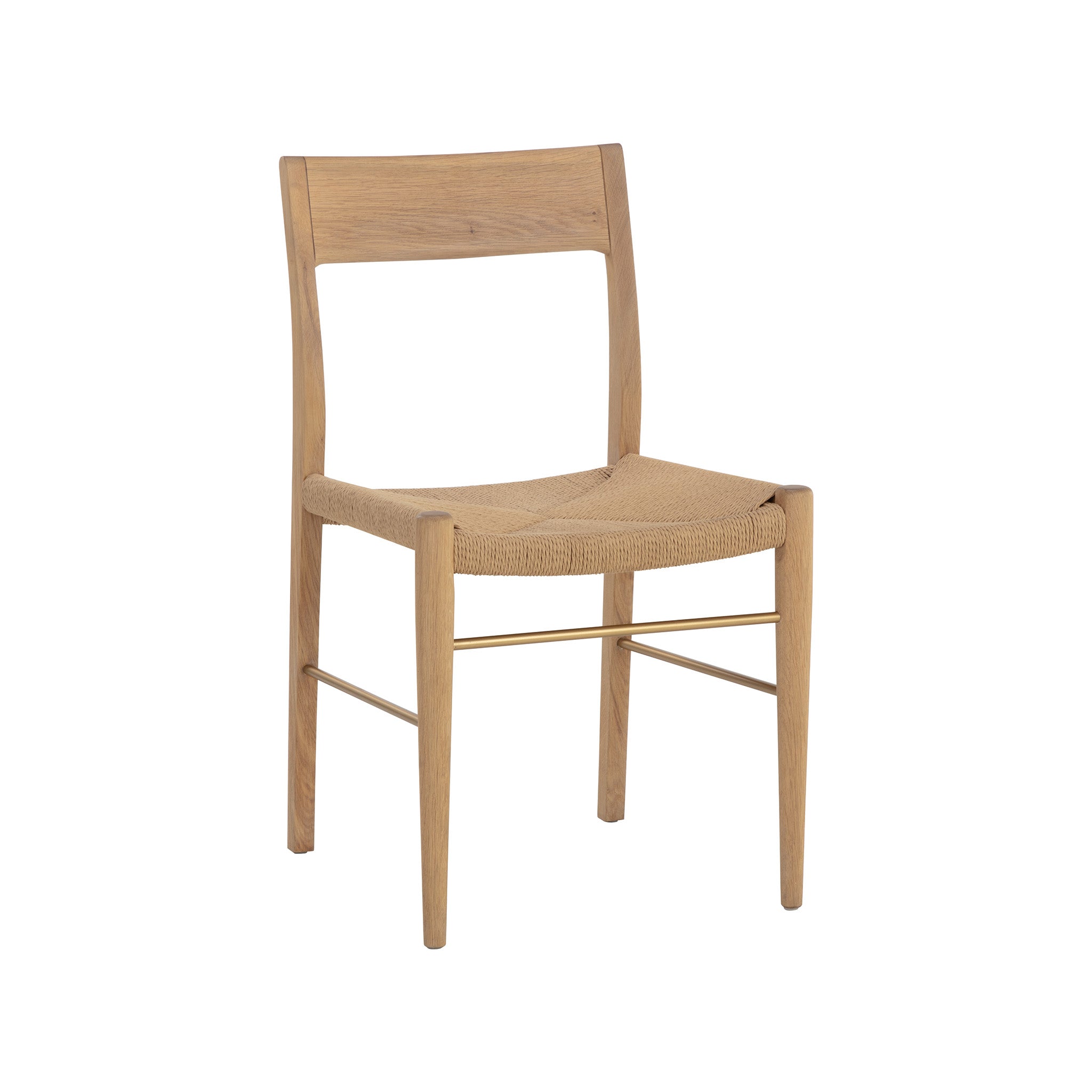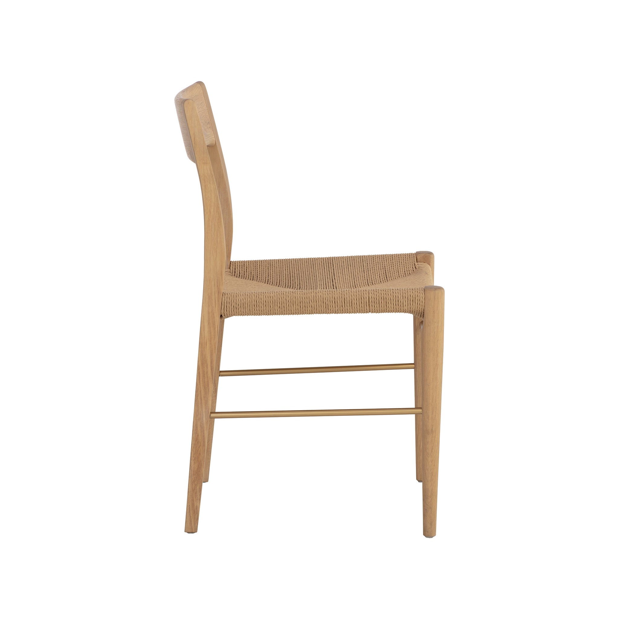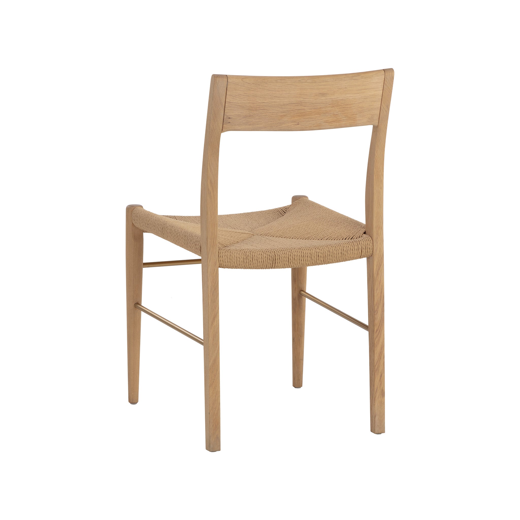 Cette interprétation moderne d'une chaise de salle à manger classique apporte une touche d'élégance intemporelle à tous les espaces. Sa structure est rehaussée d'une assise en corde naturelle. Compte tenu de la composition naturelle de la corde en papier, il est conseillé de limiter le contact avec des tissus fortement teints afin d'éviter toute décoloration ou transfert de couleur. Le bois étant un matériau organique et poreux, ces pièces présentent des variations naturelles de texture et peuvent également révéler de fines indentations et fissures. Chaque pièce de bois présente également des différences de couleur et de veinage, ainsi que des nœuds et des loupes visibles qui contribuent à son caractère unique.