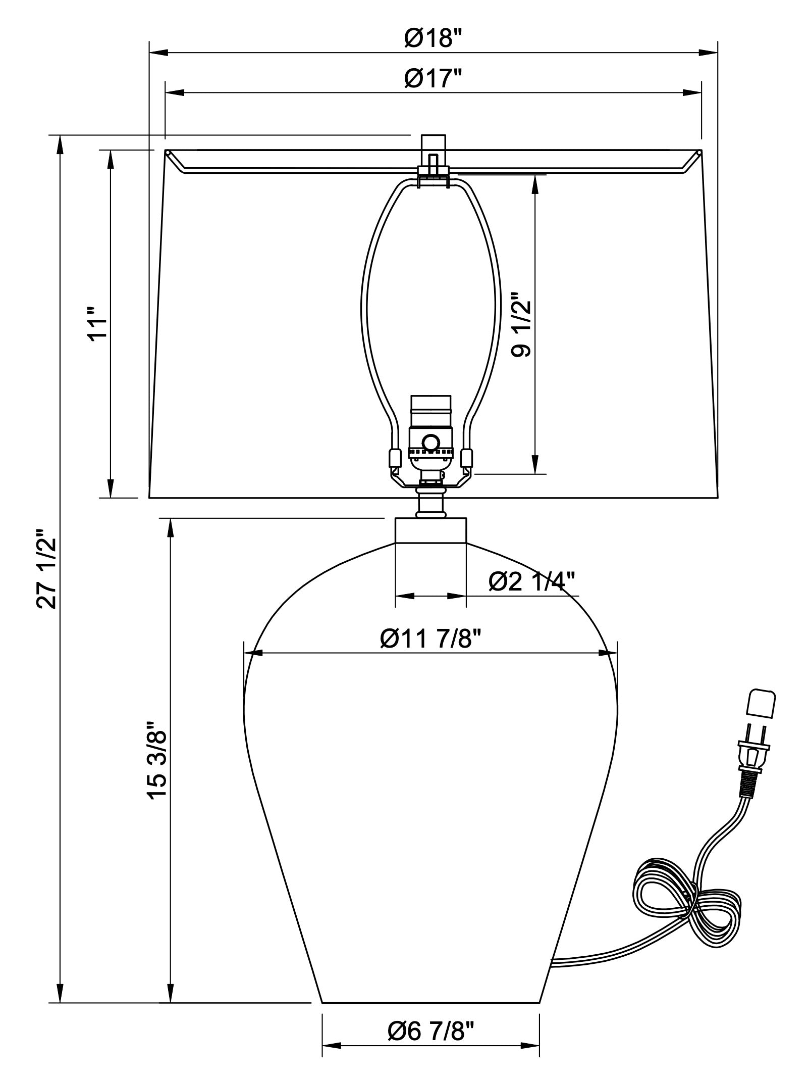 Dimensions hors tout : 27,5" H x 18" L x 18" P