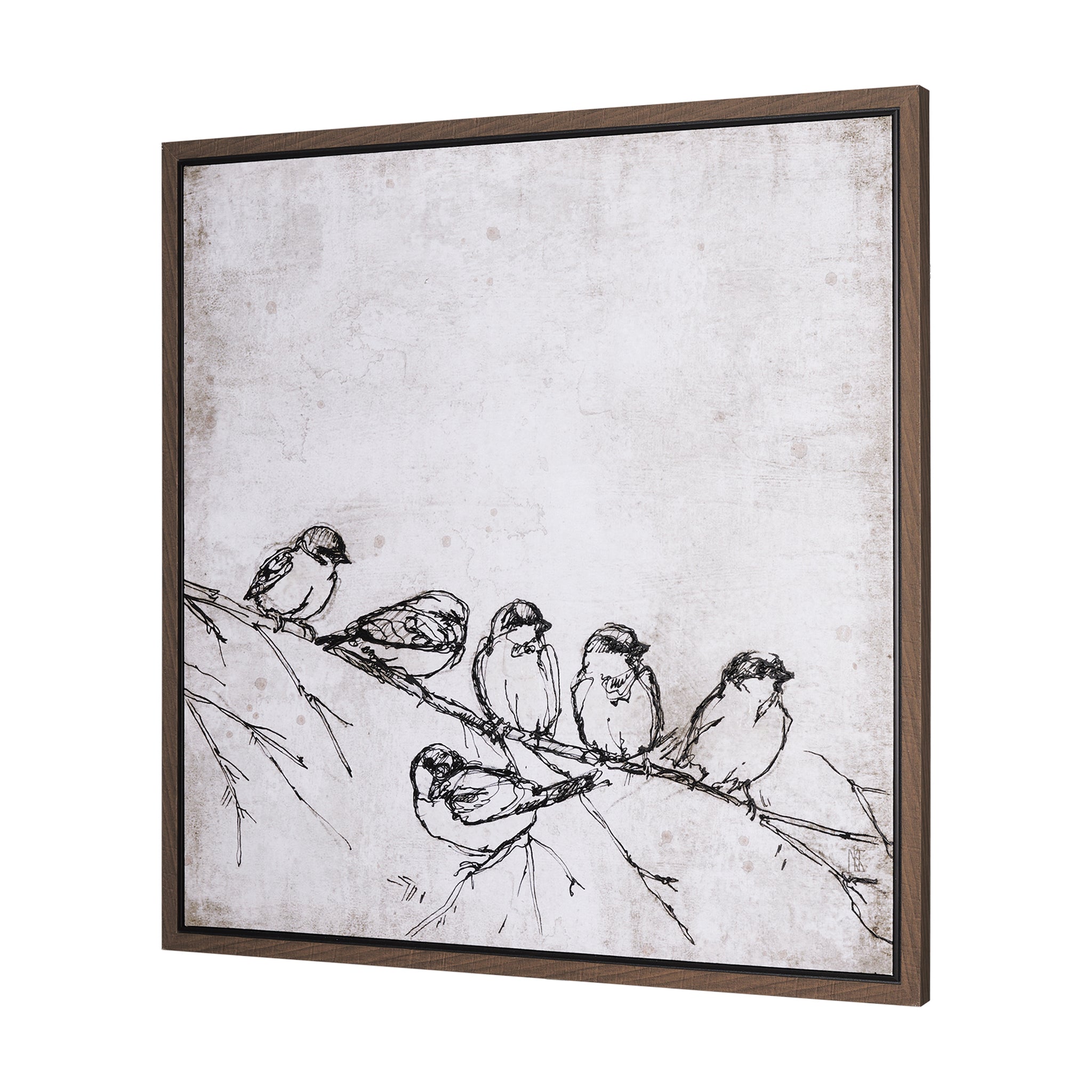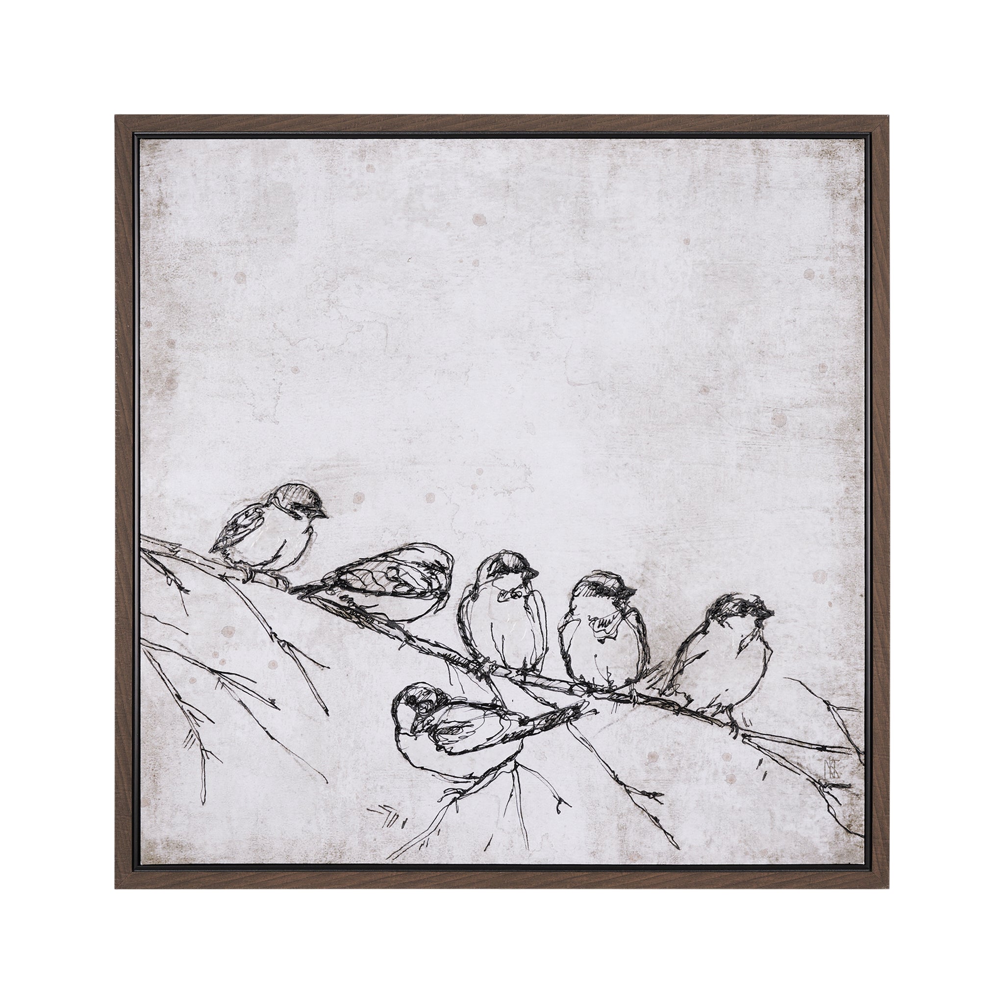 Apportez une touche de charme et de simplicité à votre intérieur avec cette œuvre encadrée unique. Représentant un croquis délicat de plusieurs oiseaux perchés sur une branche, cette pièce capture un instant de sérénité au cœur de la nature. Le style dessiné à la main sur un fond subtilement texturé et aux tons doux offre une esthétique à la fois contemporaine et intemporelle, idéale pour insuffler une douce note artistique à n'importe quelle pièce.