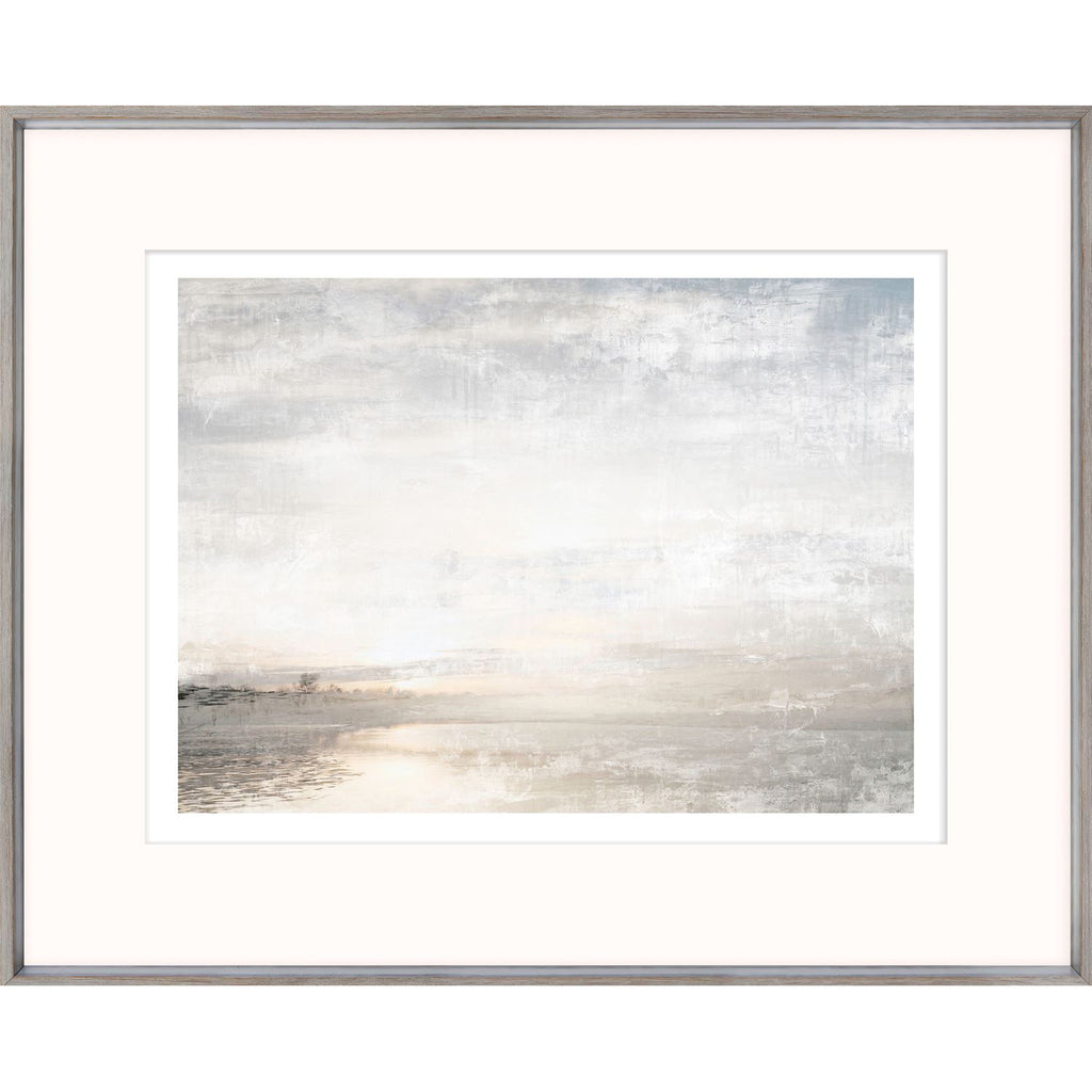 Une palette neutre et des coups de pinceau texturés et luminescents font de cette scène côtière contemporaine une pièce remarquable pour n'importe quel espace.