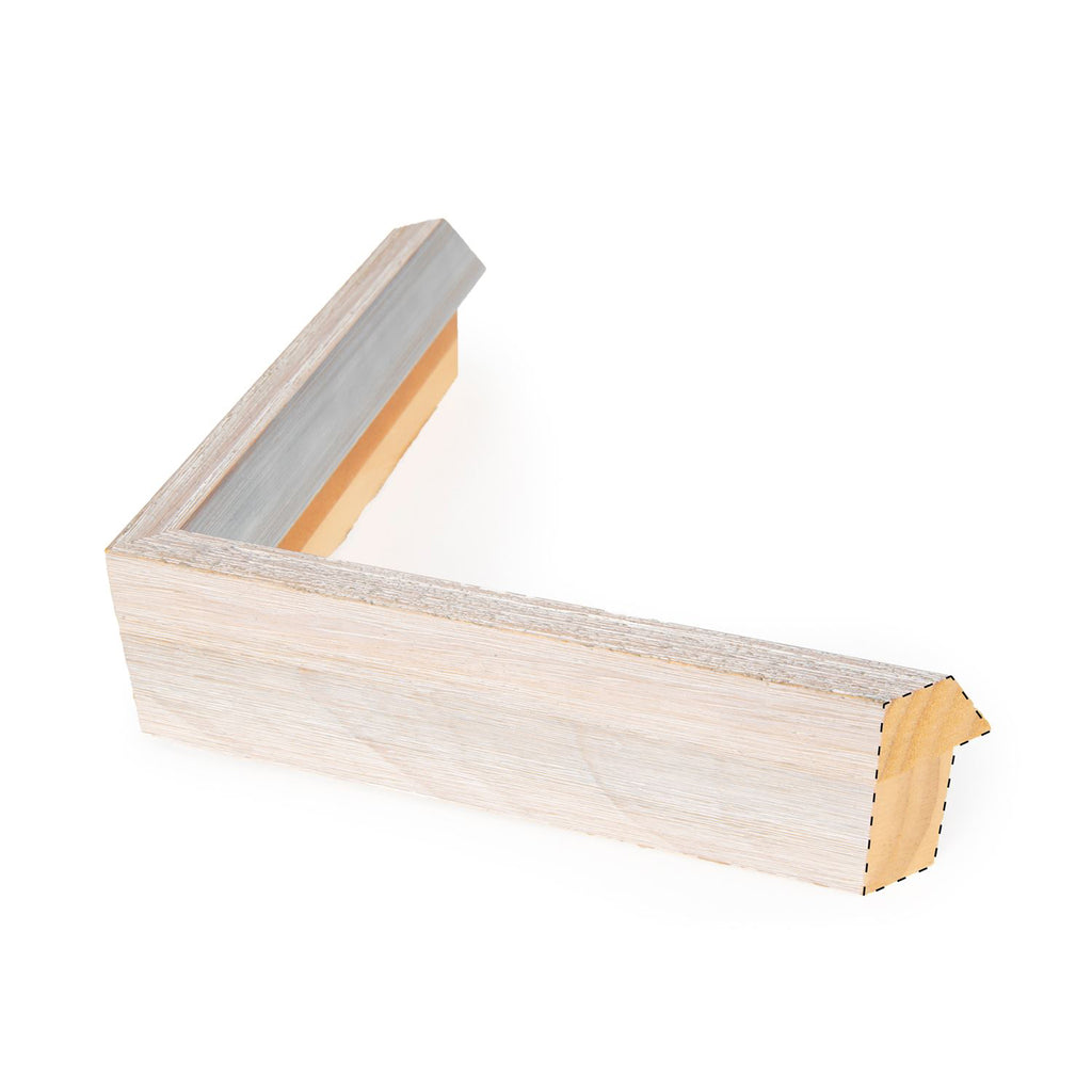 Finition du cadre : Blanchi à la chaux et brossé argent