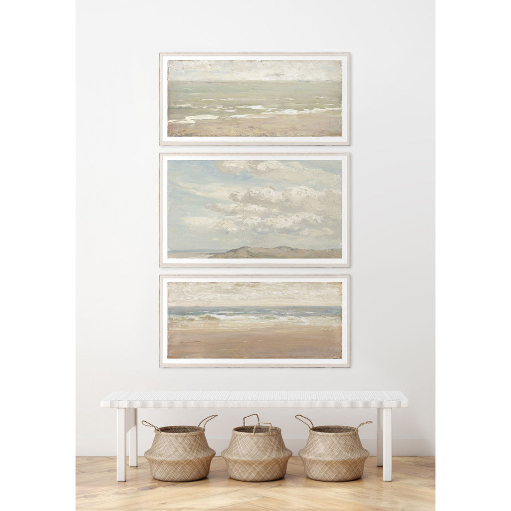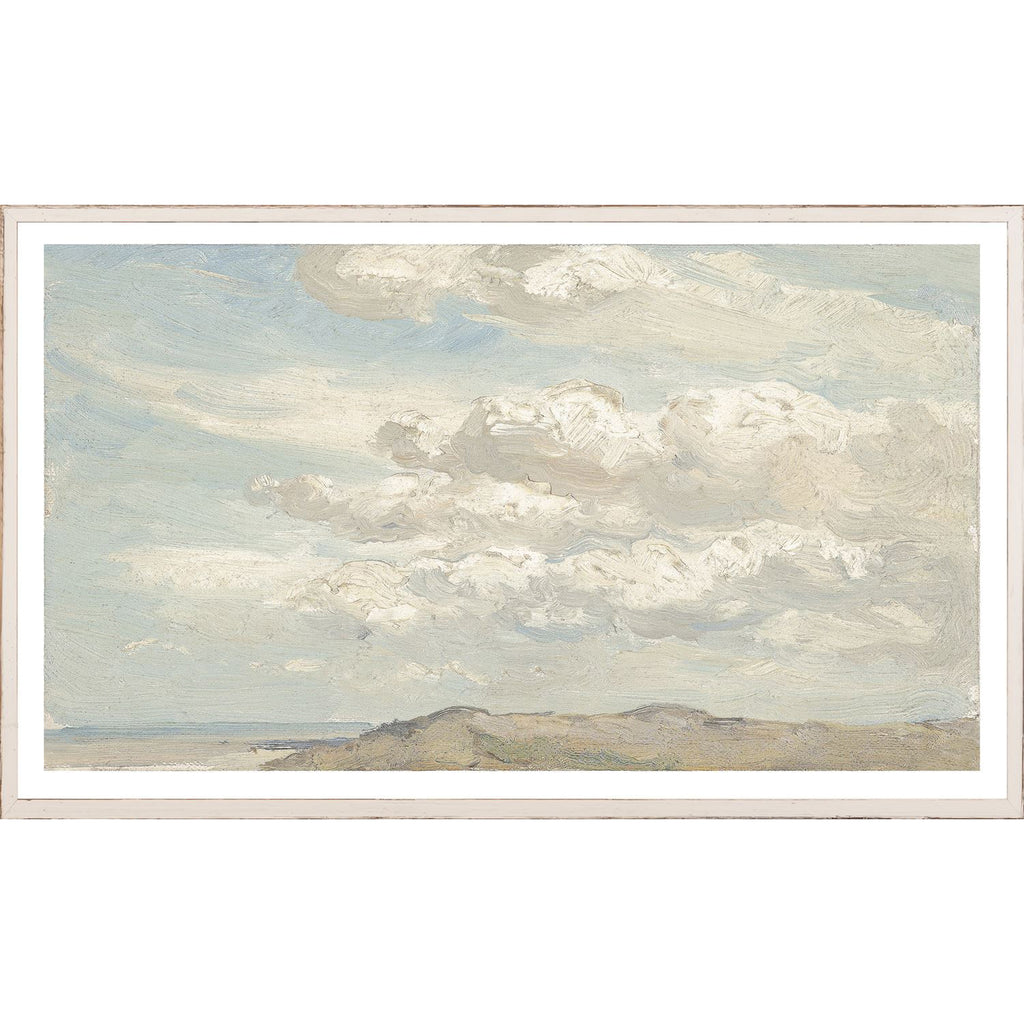 Des nuages ondulants et un jeu d'ombre et de lumière contrastent avec une colonne de dunes dans ce tableau historique de Jan Willem van Borselen. Cette œuvre peut être utilisée seule ou associée à d'autres œuvres pour décorer un mur de galerie.