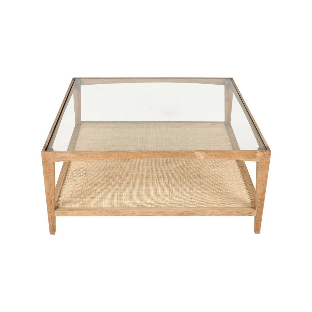 La pièce idéale pour s'intégrer harmonieusement à votre espace. Le plateau inférieur de la table Harris est en rotin naturel tressé, tandis que son plateau en verre trempé met en valeur son design aérien, le tout soutenu par un cadre en chêne massif magnifiquement sculpté. Harris est disponible en table basse ou table d'appoint ; associez-les pour un look 100 % naturel.